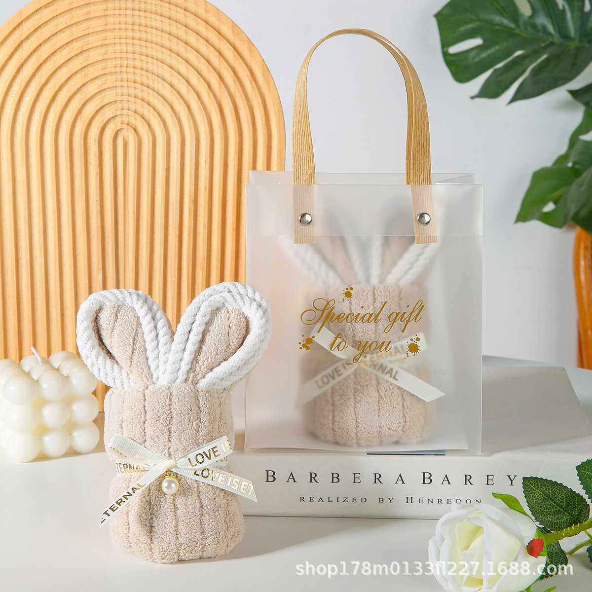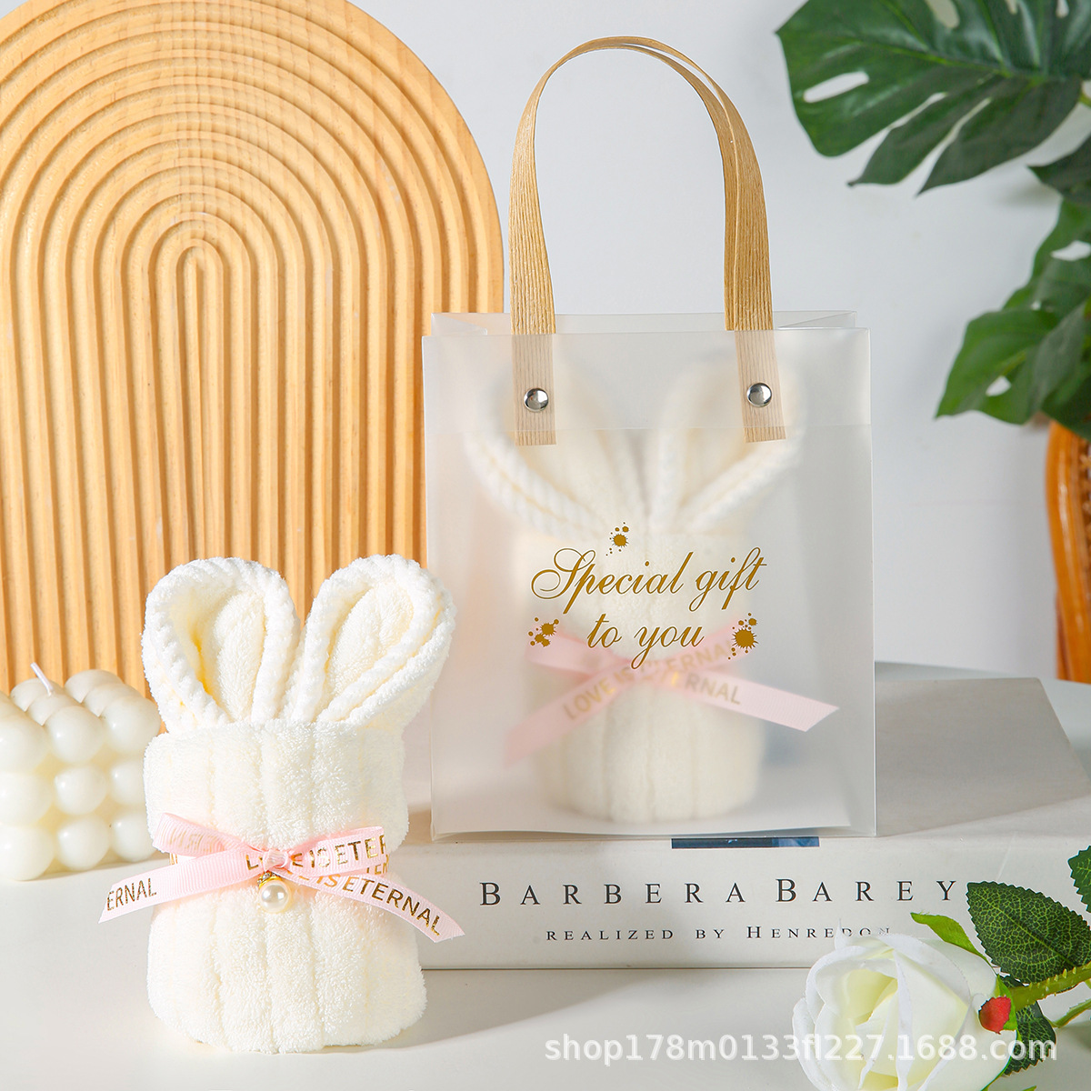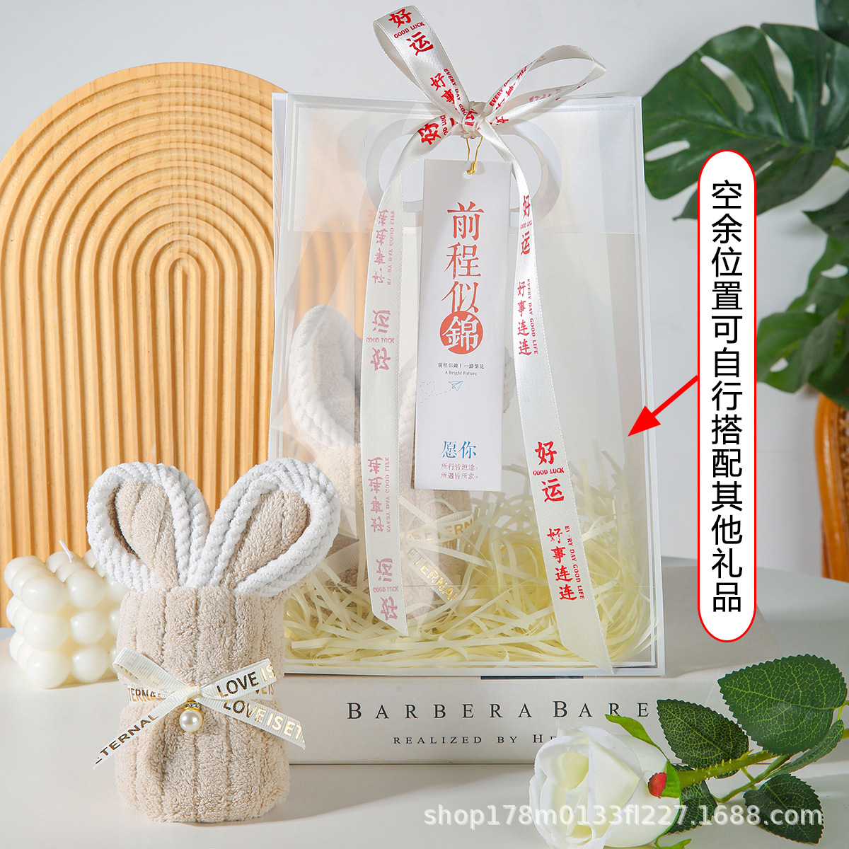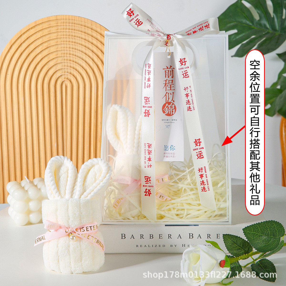 • 흰토끼 수건 + PVC 가방 + 엘리베이터 + 리본 + 라피아