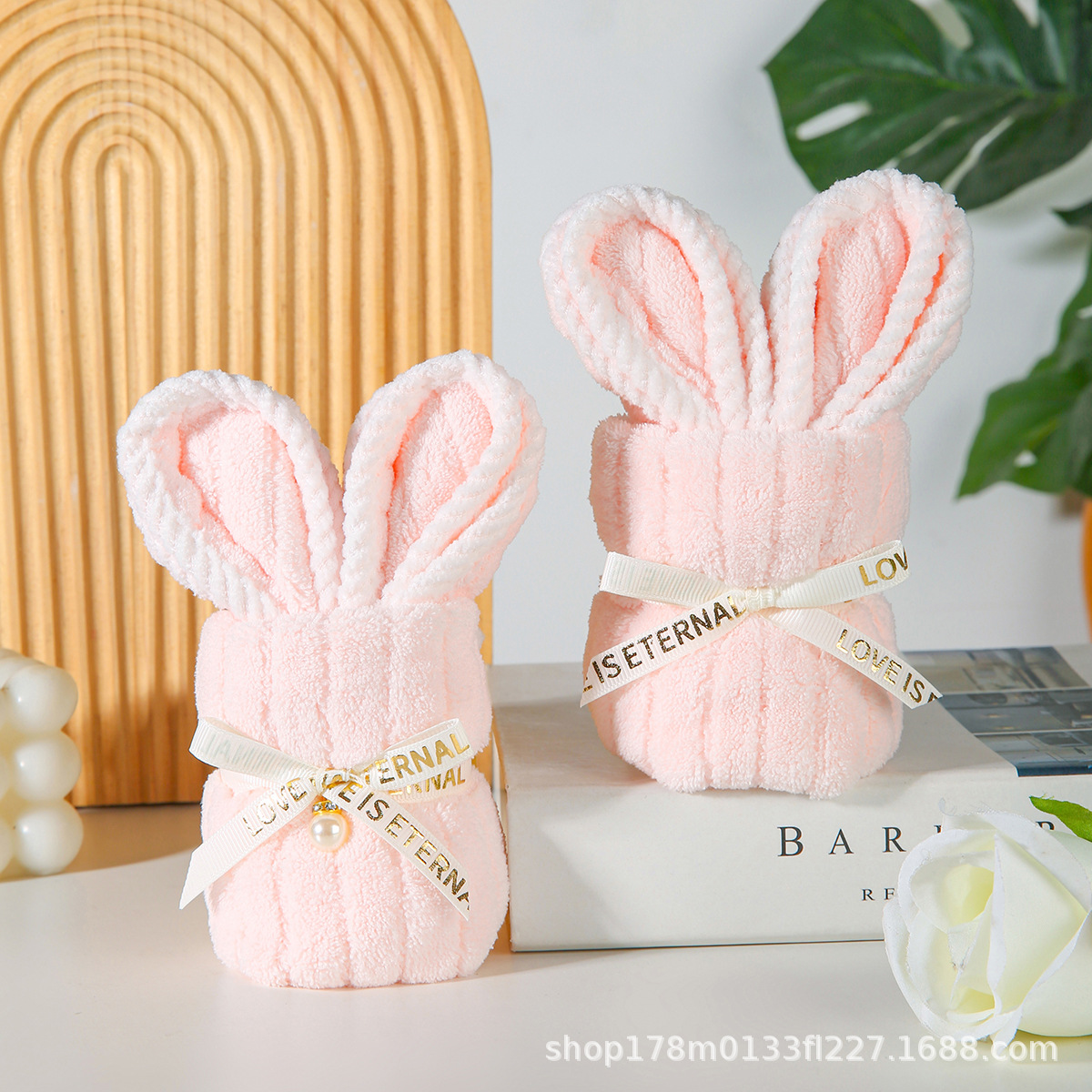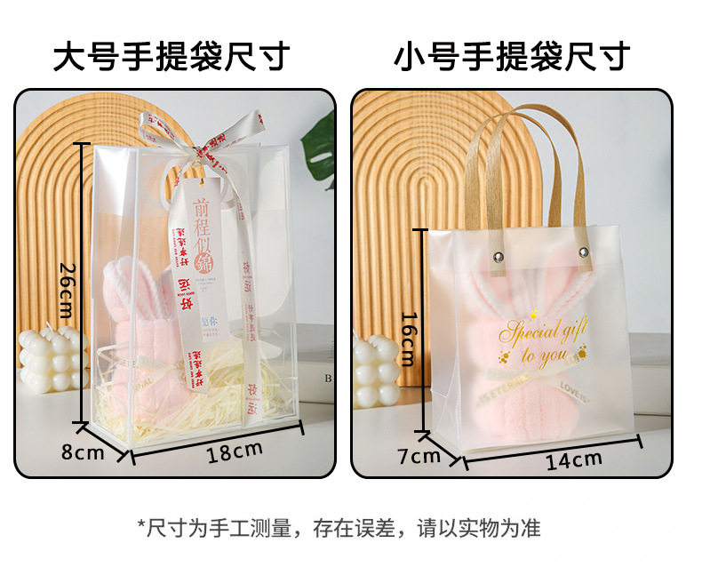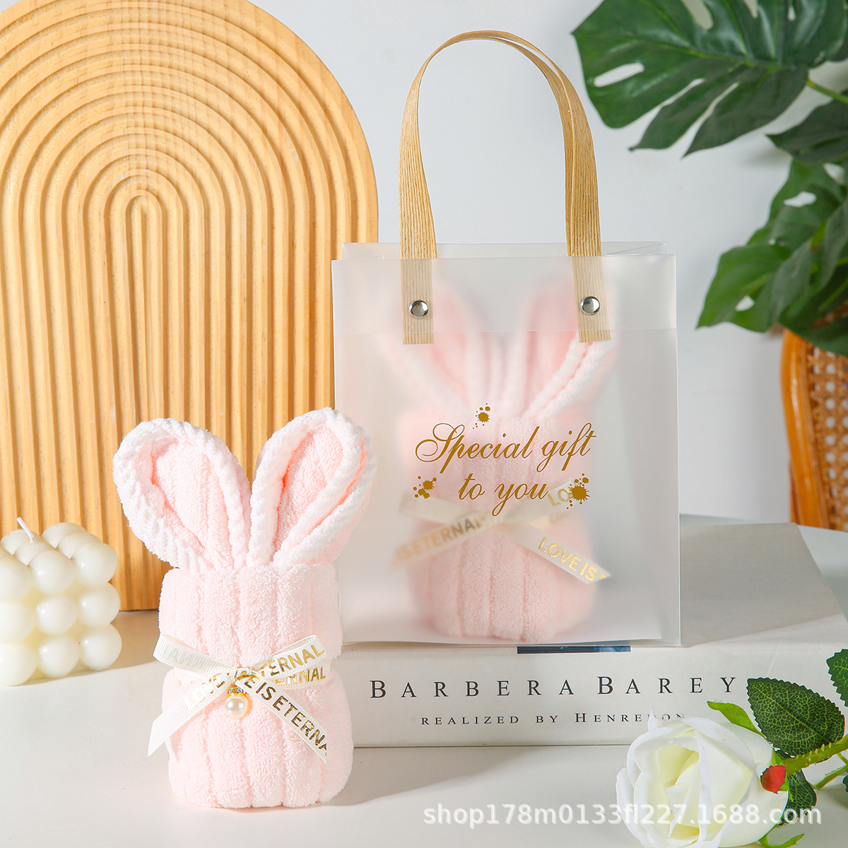 • 핑크 토끼 수건 + PVC 가방 + 엘리베이터 + 리본 + 라피아