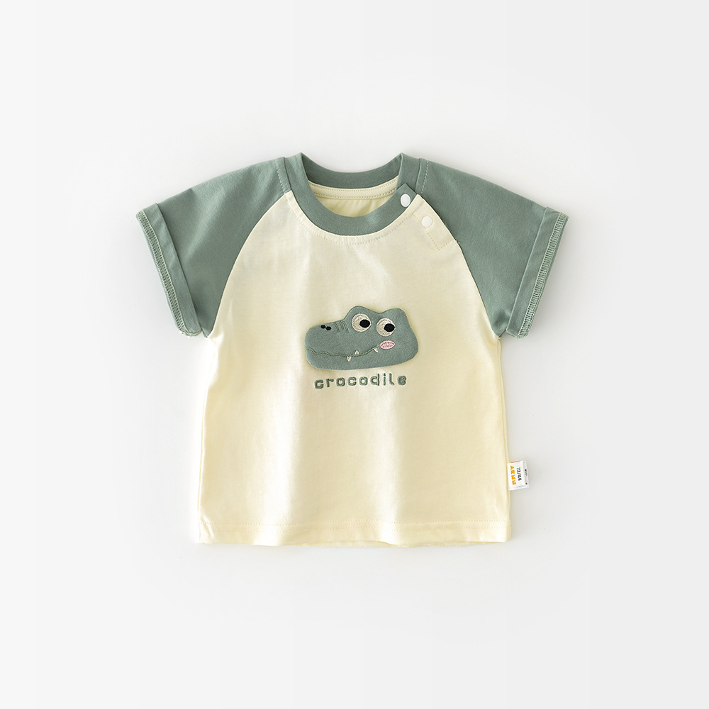 2025 새로운 여름 어린이 라글란 슬리브 셔츠 유아 및 어린이 만화 악어 반팔 티셔츠 52817