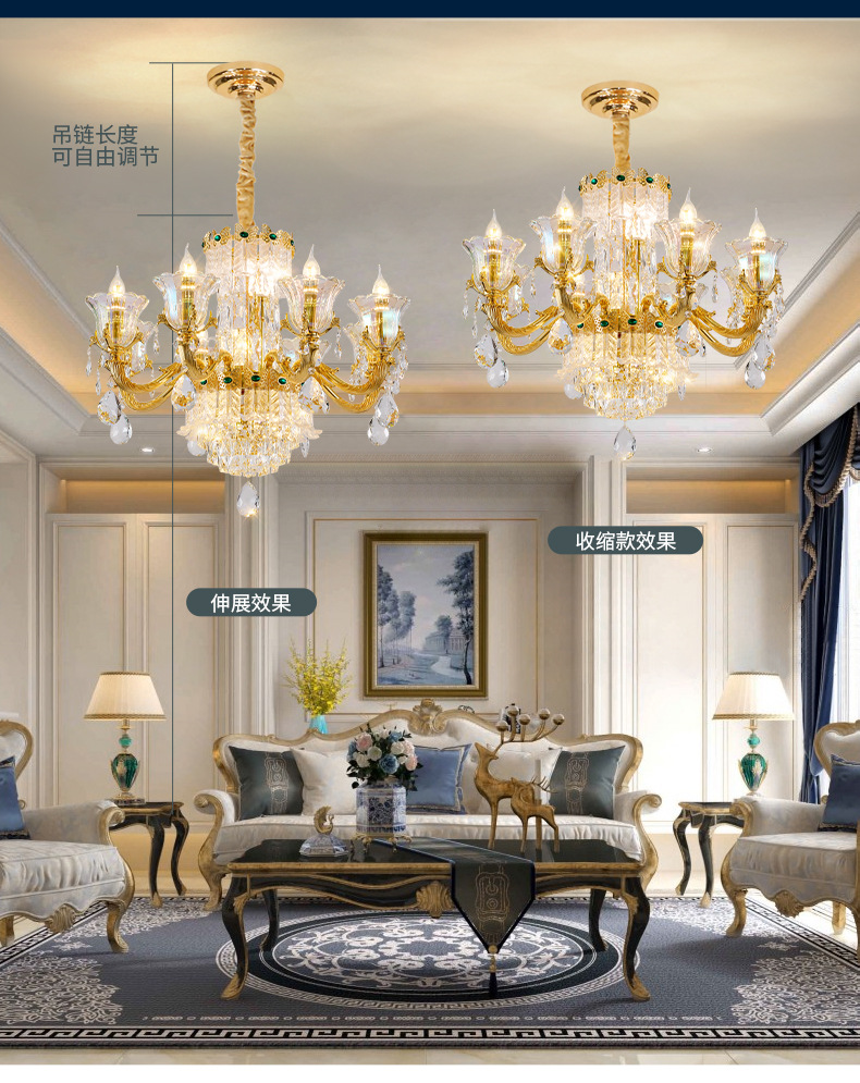유럽 스타일의 가벼운 고급 크리스탈 샹들리에 거실 램프 레스토랑 프랑스 고급 고급 가정용 빌라 듀플렉스 홀 램프스토어 가기