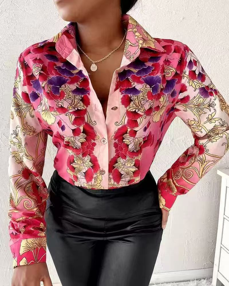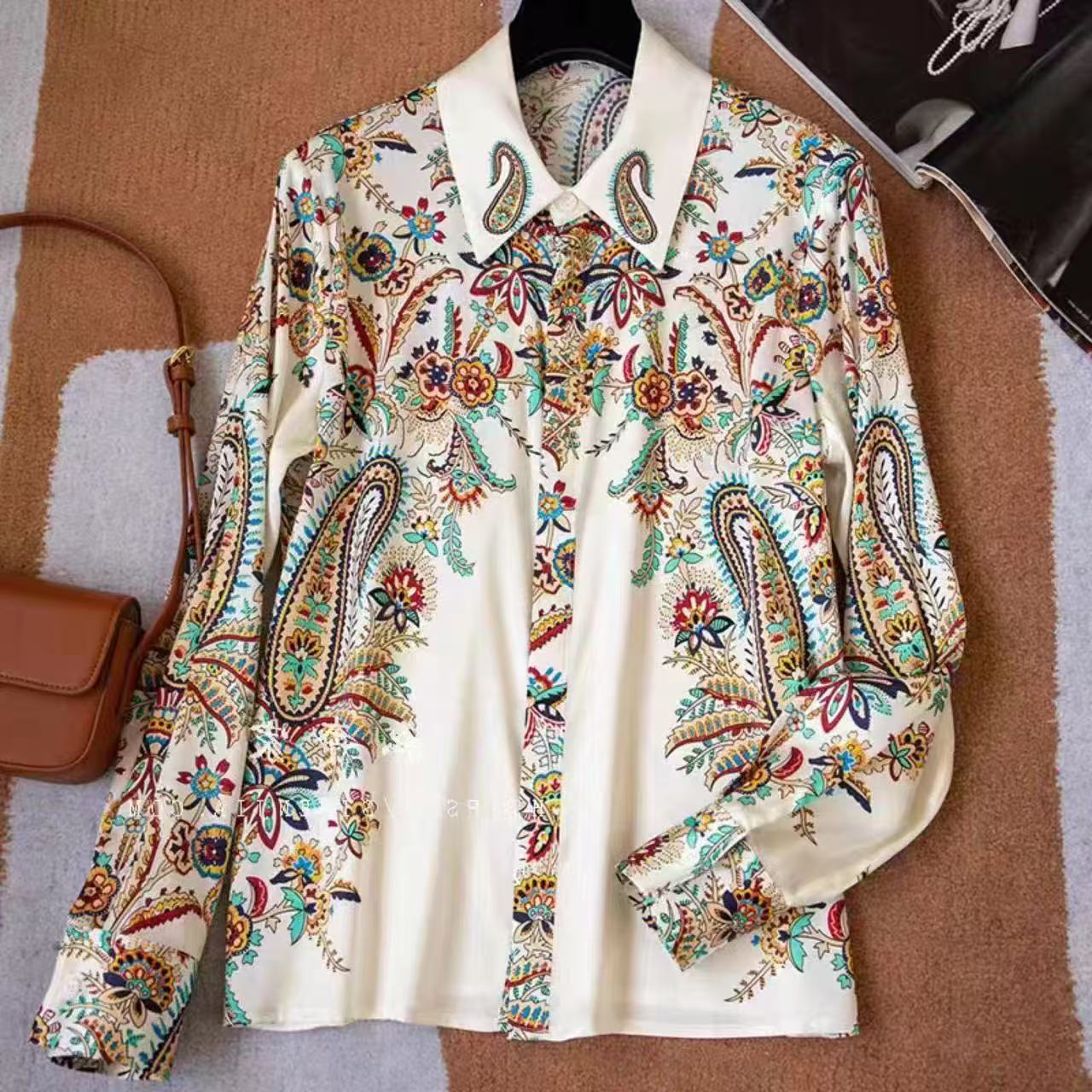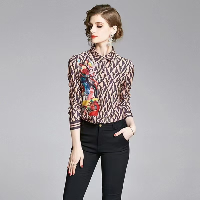 국경 간 대외 무역 유럽과 미국 셔츠 여성의 봄과 가을 새로운 인쇄 느슨한 중간 길이의 긴 소매 셔츠 카디건 탑스토어 가기
