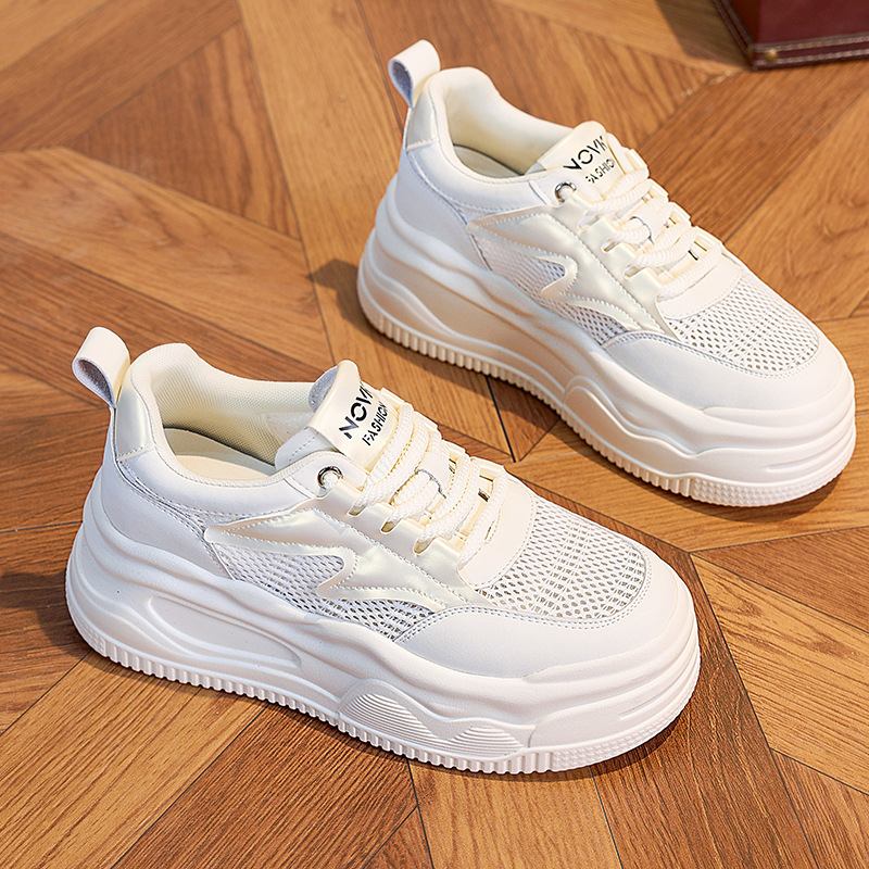 화이트 신발 여성 2025 년 여름 새로운 정품 가죽 두꺼운 높이 증가 모든 경기 캐주얼 신발 메쉬 통기성 편안한 여성 신발스토어 가기
