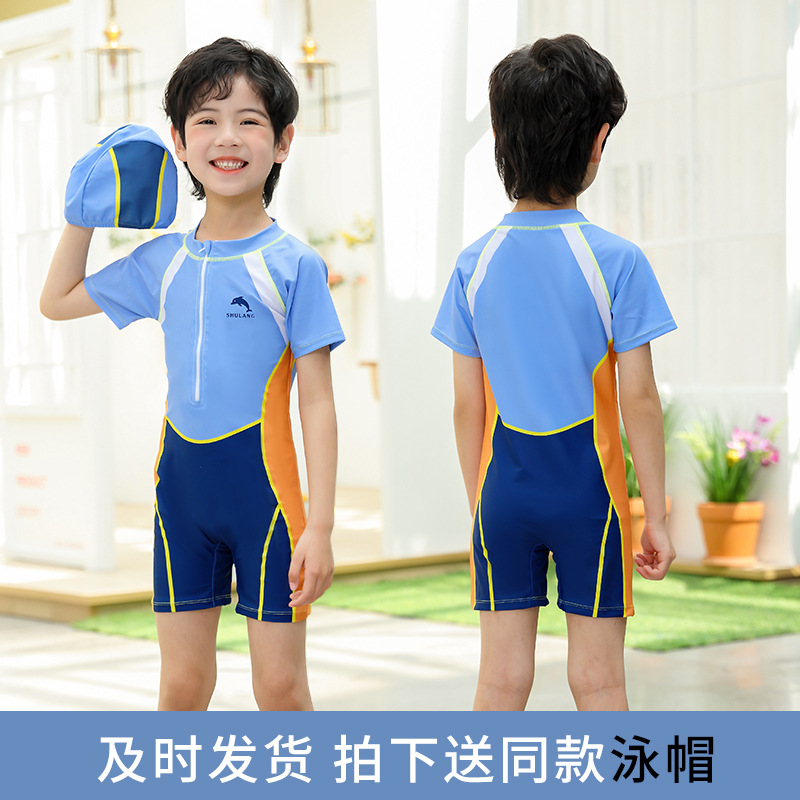 소년 원피스 수영복 2025 새로운 스타일 어린이 반팔 자외선 차단 수영복 어린 소년 수영복 국경 간 맞춤형스토어 가기