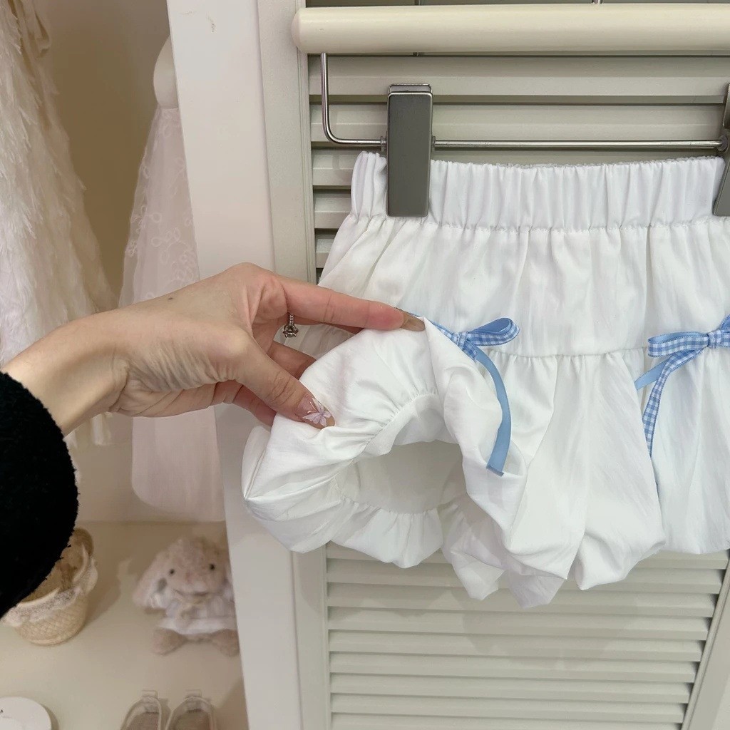 [어린이 스타서클] 여자 여름 블루 플레이드탑 활 꽃 버터 바지 귀여운 서양식 한국 투피스 세트