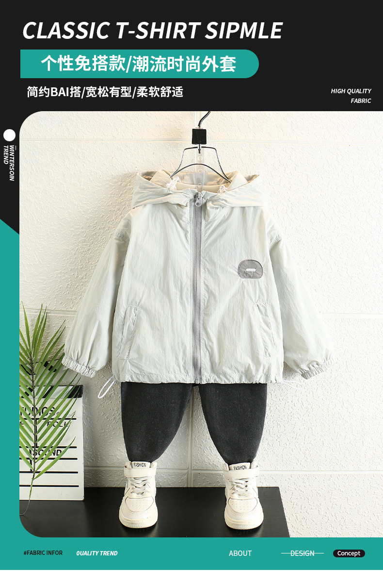 어린이 간단한 자외선 차단 의류 후드 소년 여름 가볍고 통기성 재킷 2025 큰 어린이를위한 새로운 아동 의류 카디건