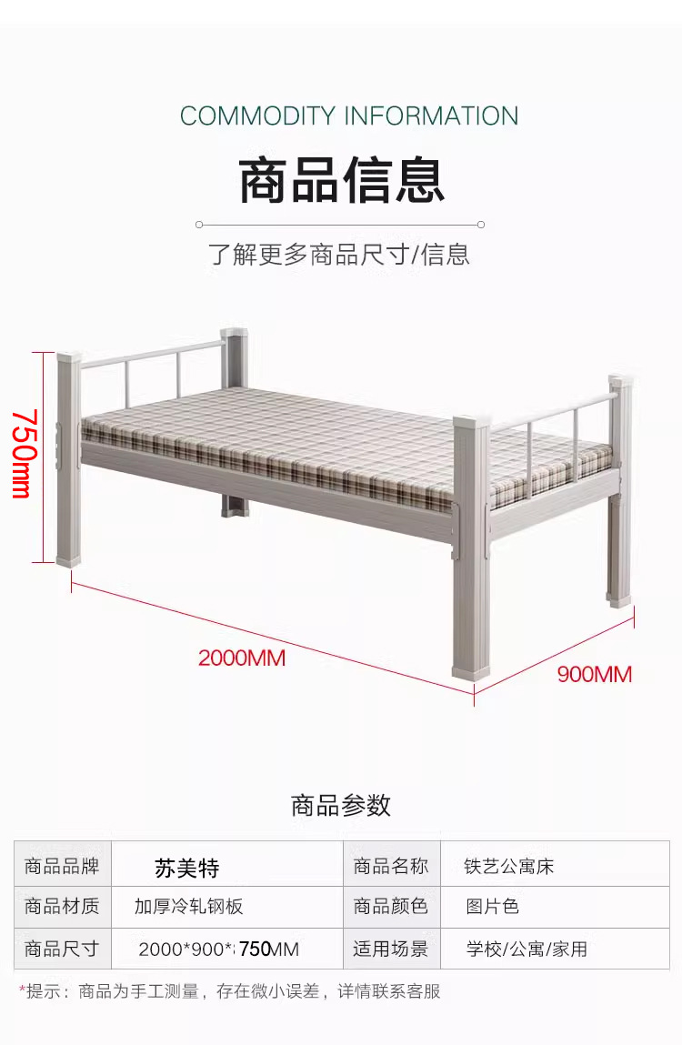 J 단층 철침대 싱글 침대 학생 직원 기숙사 철제 프레임 침대 더블 침대 1.2 미터 1.5 미터 아이언 침대 위아래 침대