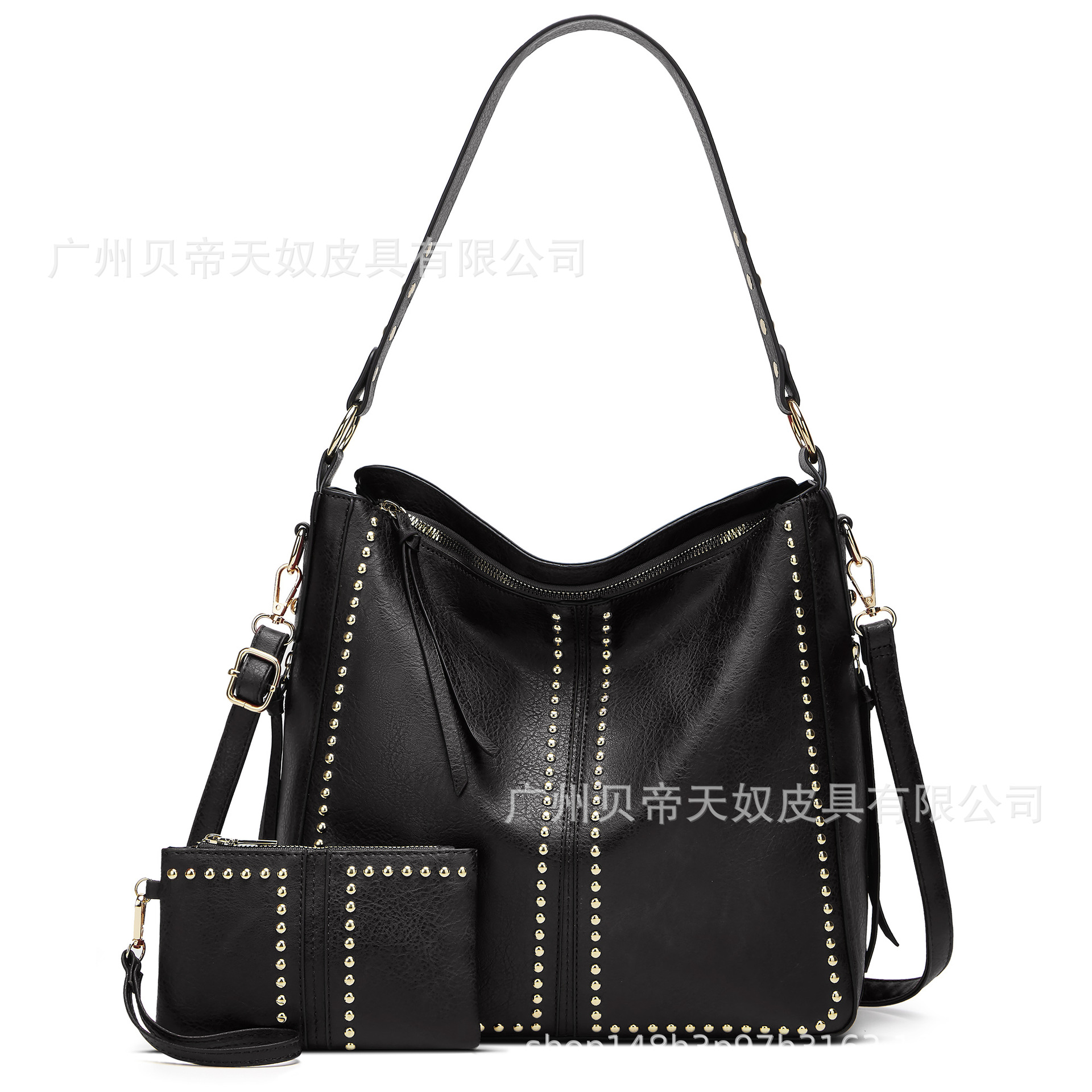 크로스보더 버튼 토트백 2025 봄 여름 신상 대용량 TOTE BAG 복고풍 유럽과 미국 스타일의 엄마와 딸 가방 재고 있음
