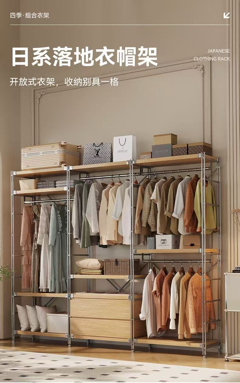 오픈 옷장 옷걸이 일본식 침실 바닥 코트 랙 워크 인 클로크룸 랙 스토리지 랙