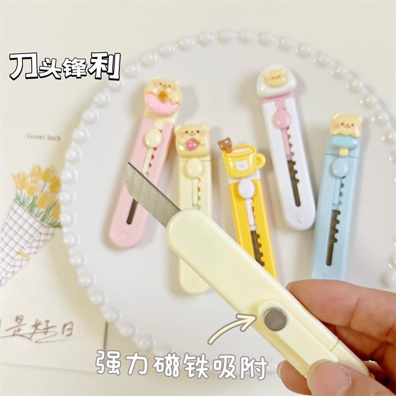 그리스 [환경 보호 재료] 귀여운 버터 곰 자기 예술 칼 냉장고 스티커 자기 흡입 익스프레스 칼 구멍