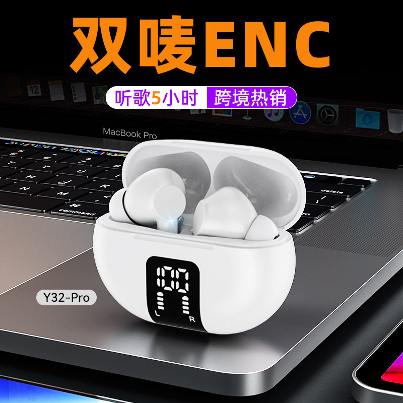 무선 블루투스 헤드셋 듀얼 마이크 ENC 통화 소음 감소 Y32Pro 긴 배터리 수명 스포츠 블루투스 헤드셋 공장 도매스토어 가기