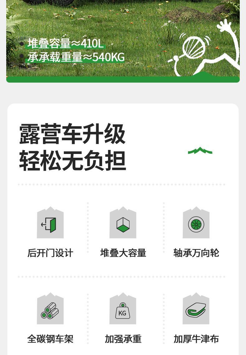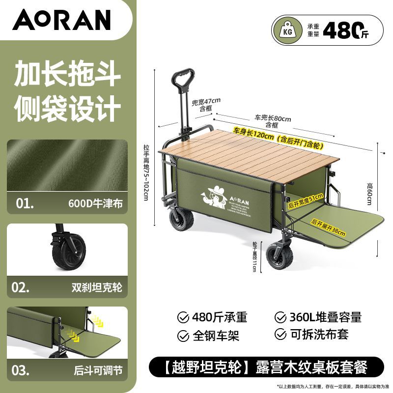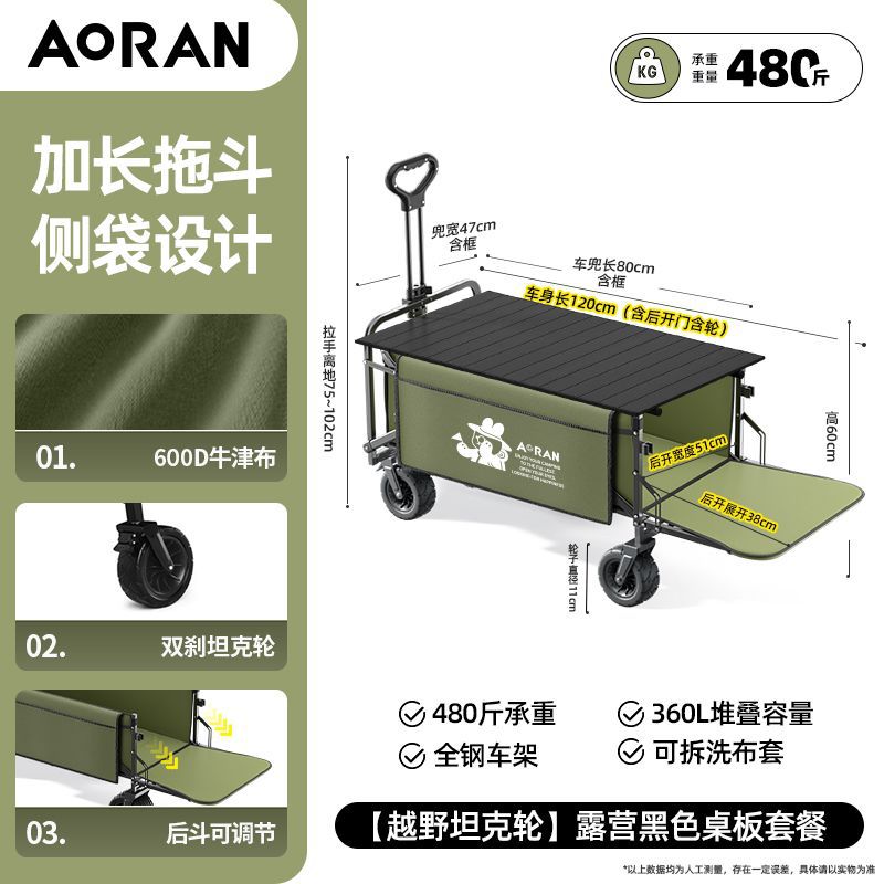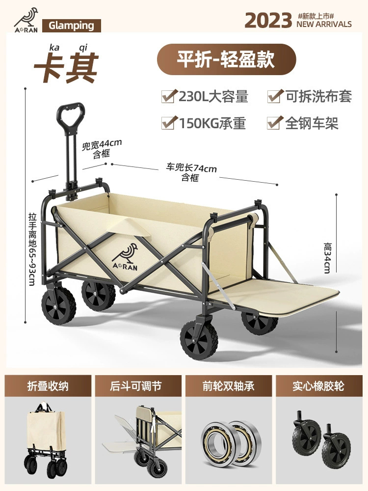 캠핑 트롤리, 야외 휴대용 캠핑 트롤리 장비, 접이식 후면 개방형 소형 트레일러, 어린이가 누울 수 있는 캠핑 트롤리