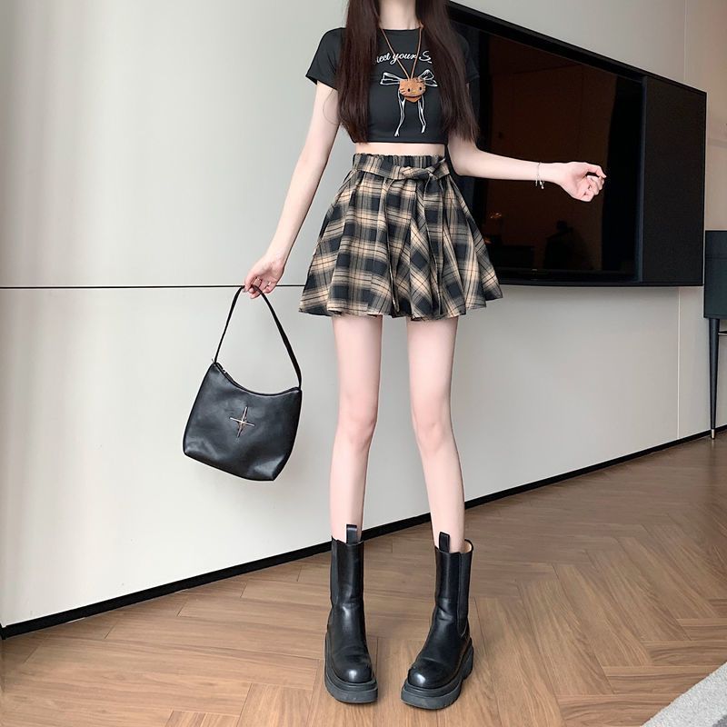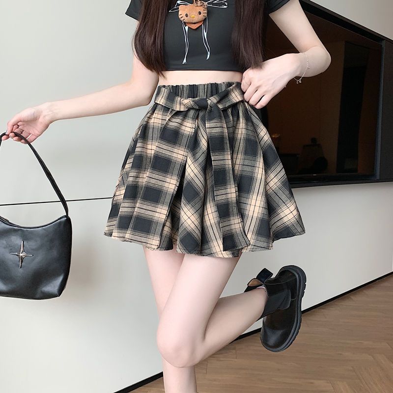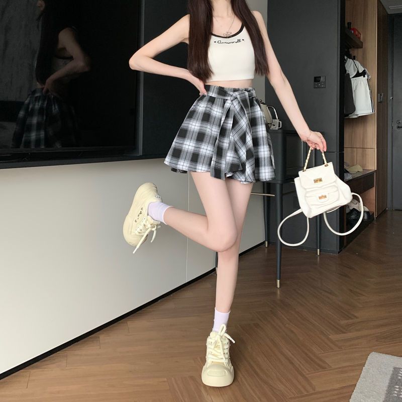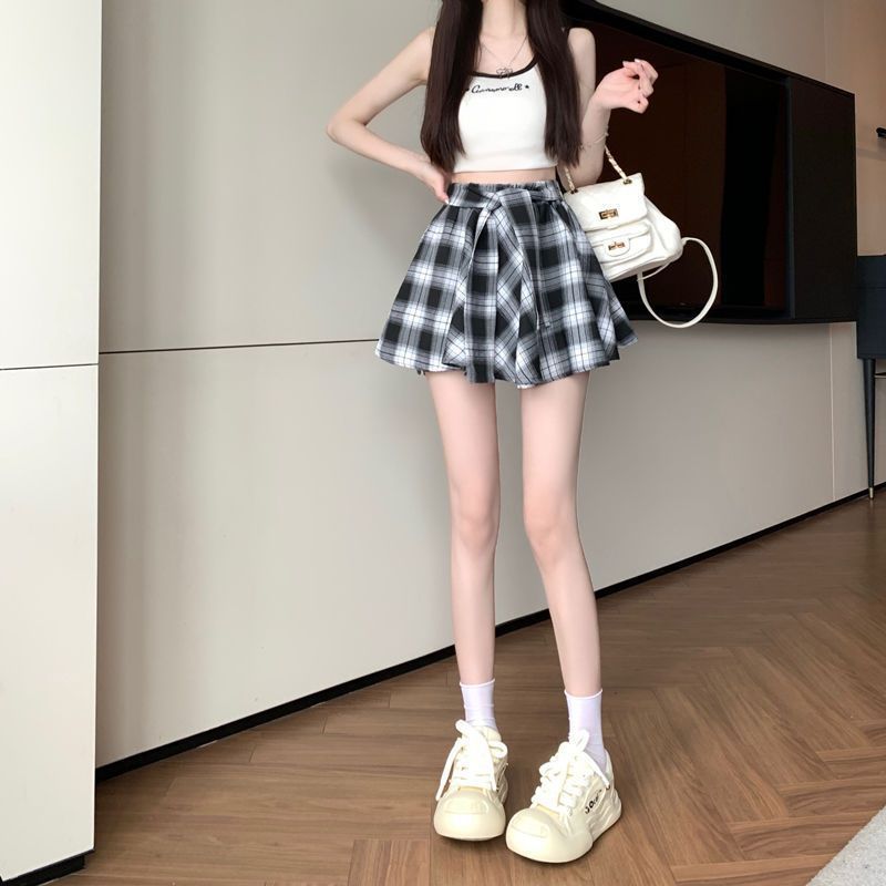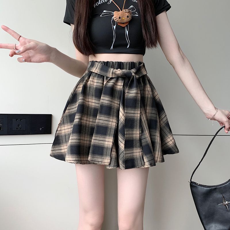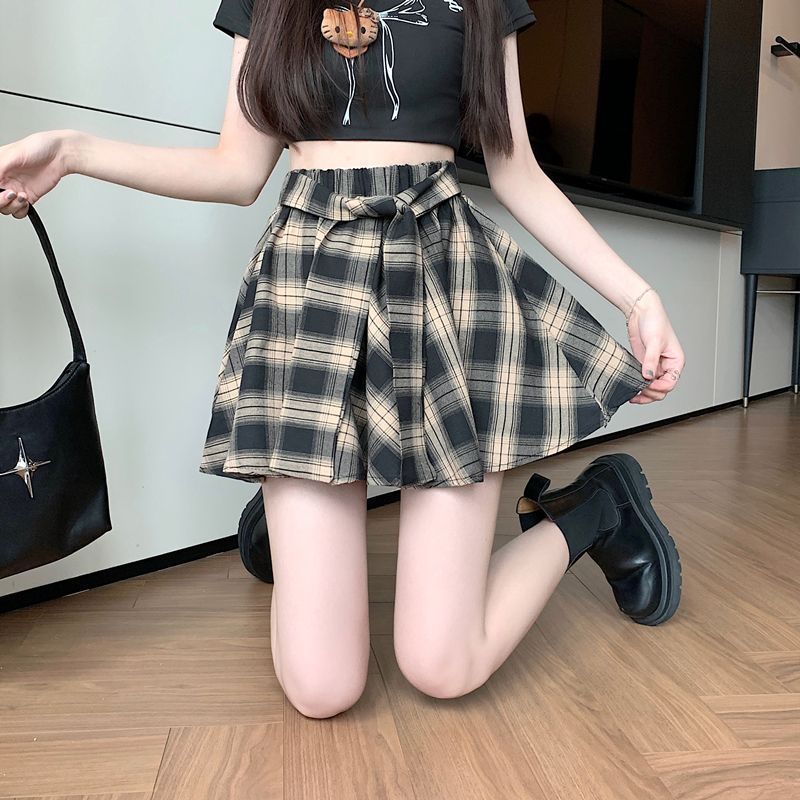 빈티지 하이 엔드 격자 무늬 스커트 여성 핫 걸 스타일 하이 웨이스트 스트랩 A 라인 스커트 작은 올 매치 슬림 핏 스커트스토어 가기