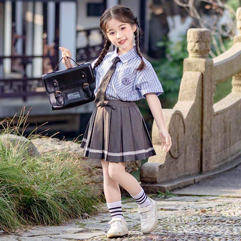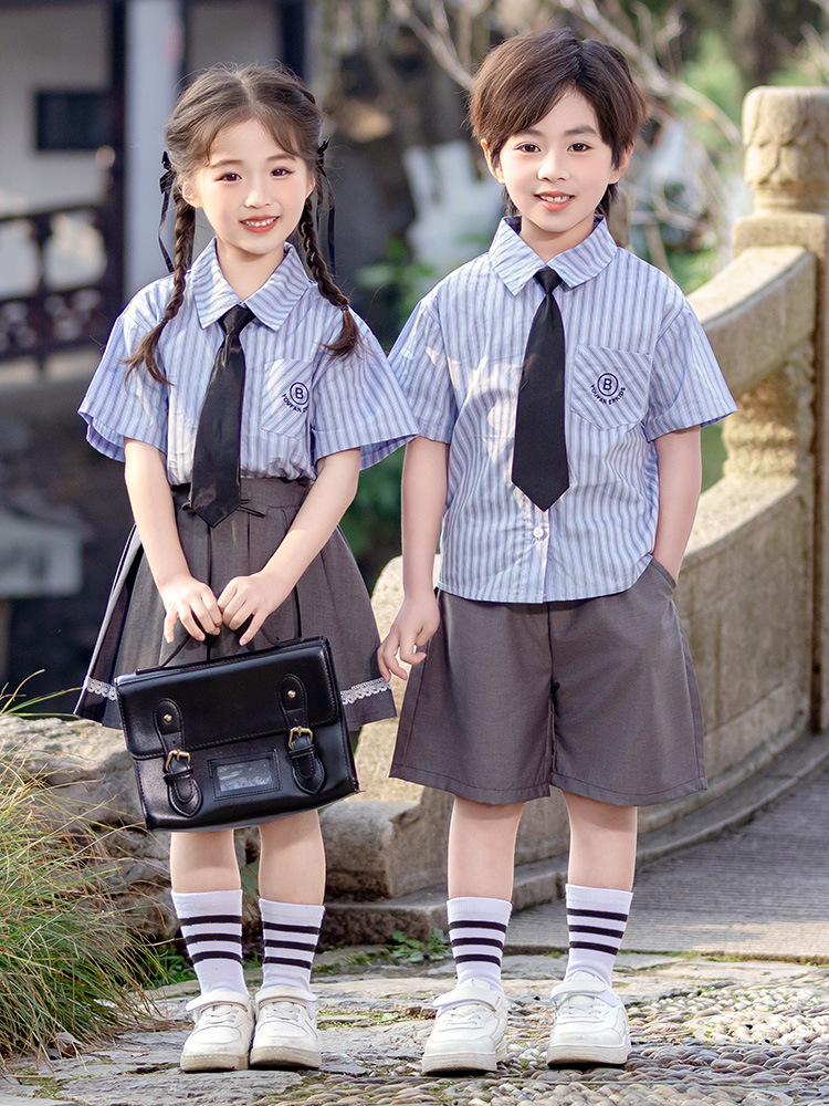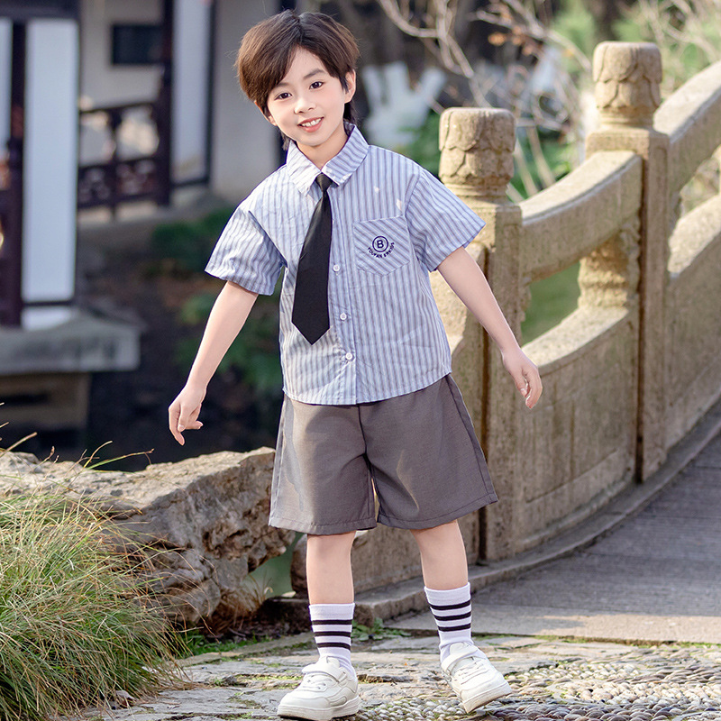 어린이 학교 유니폼 소년 세트 2025 새 유치원 아기 소녀 반팔 셔츠 공연 세트 남매 봄 · 여름 세트