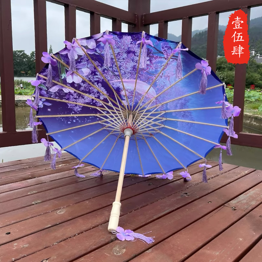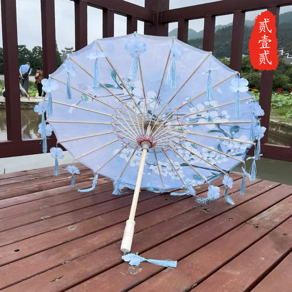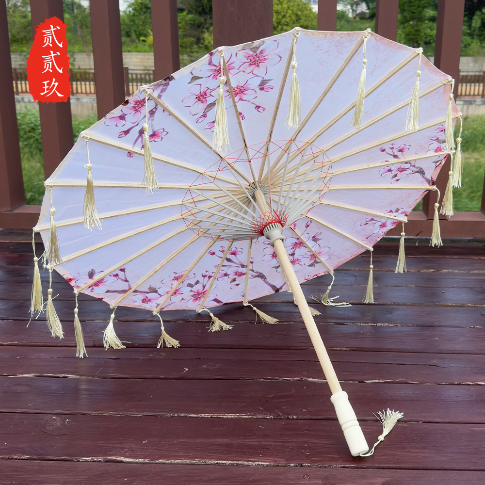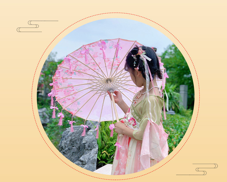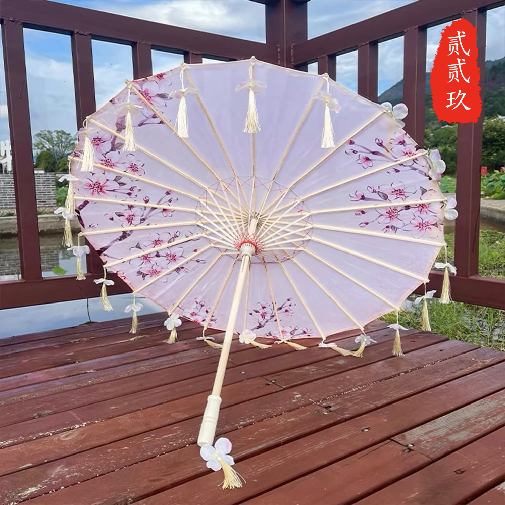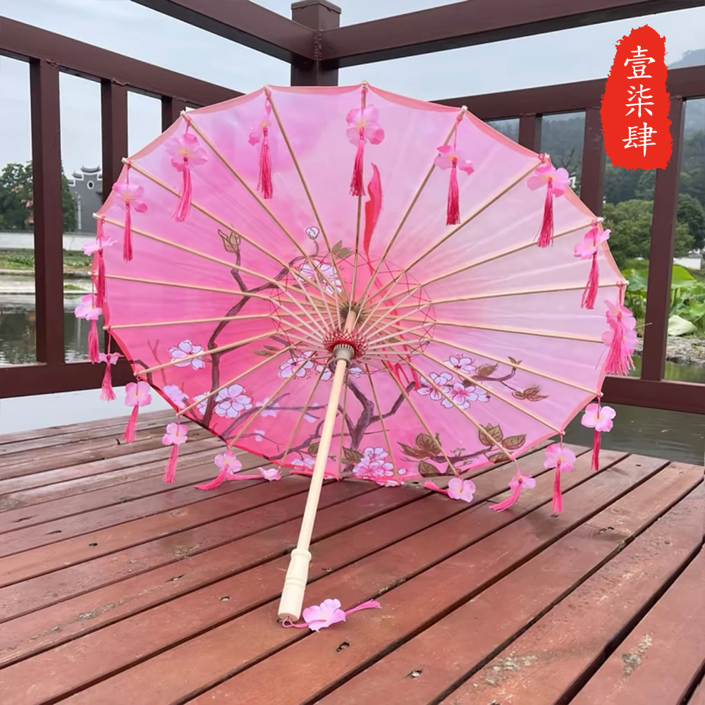 작은 어린이 꽃잎 술 우산 소품 장식 사진 우산 여성 댄스 공연 Hanfu Cheongsam 기름 종이 우산