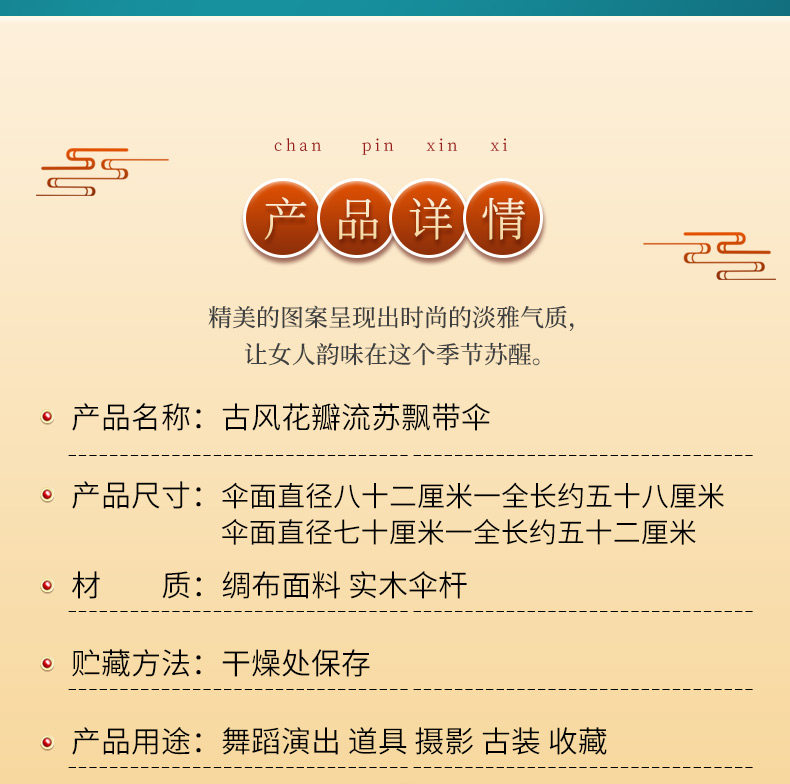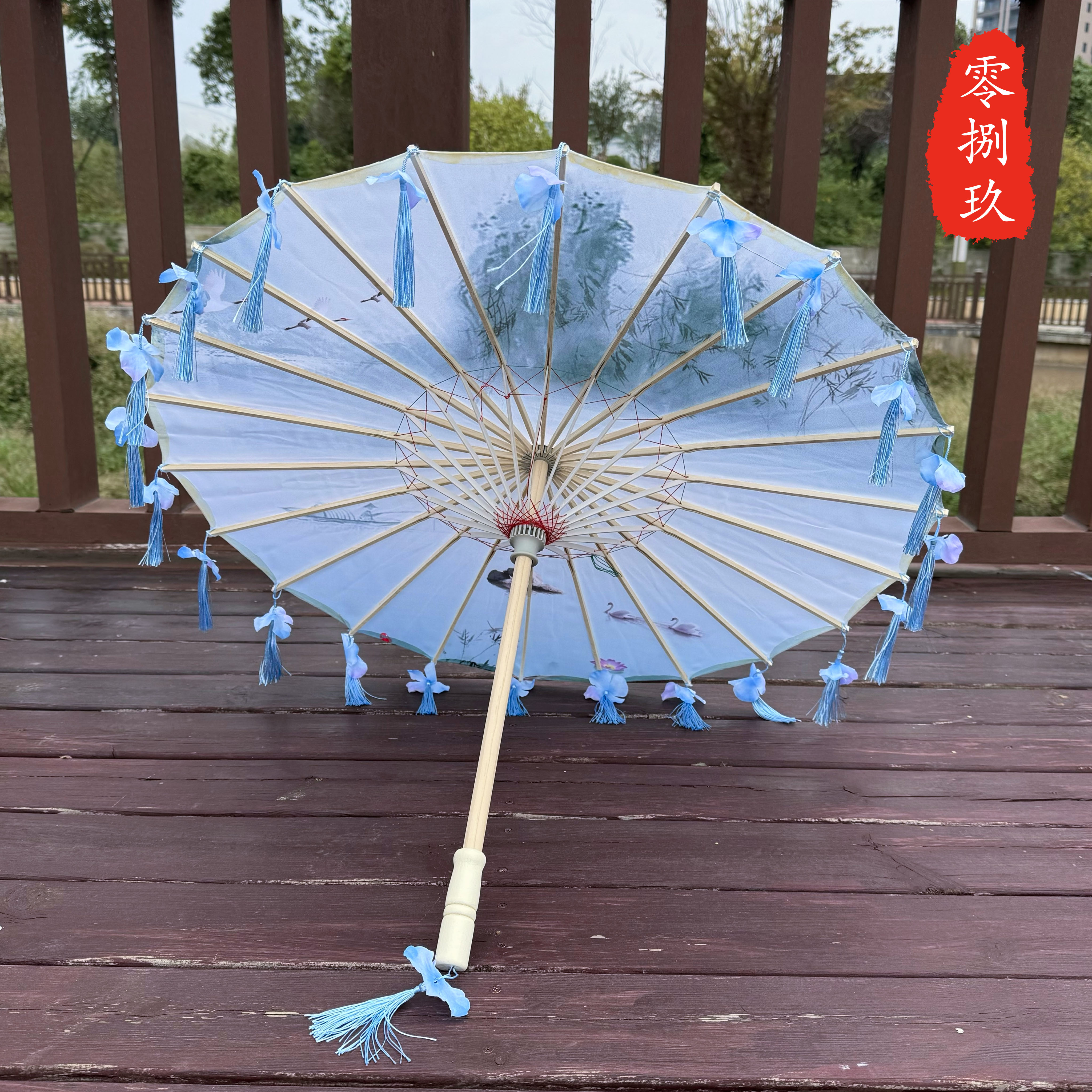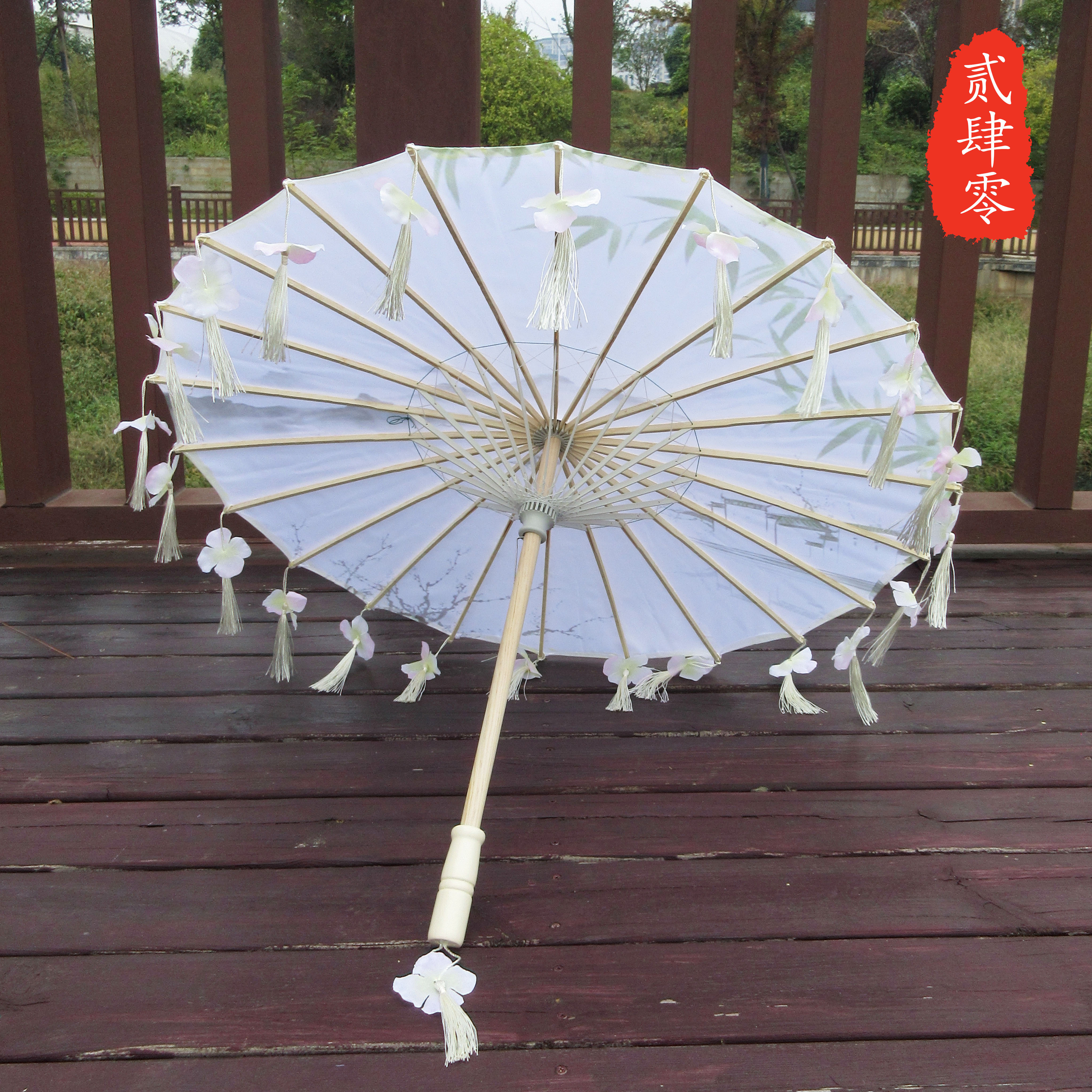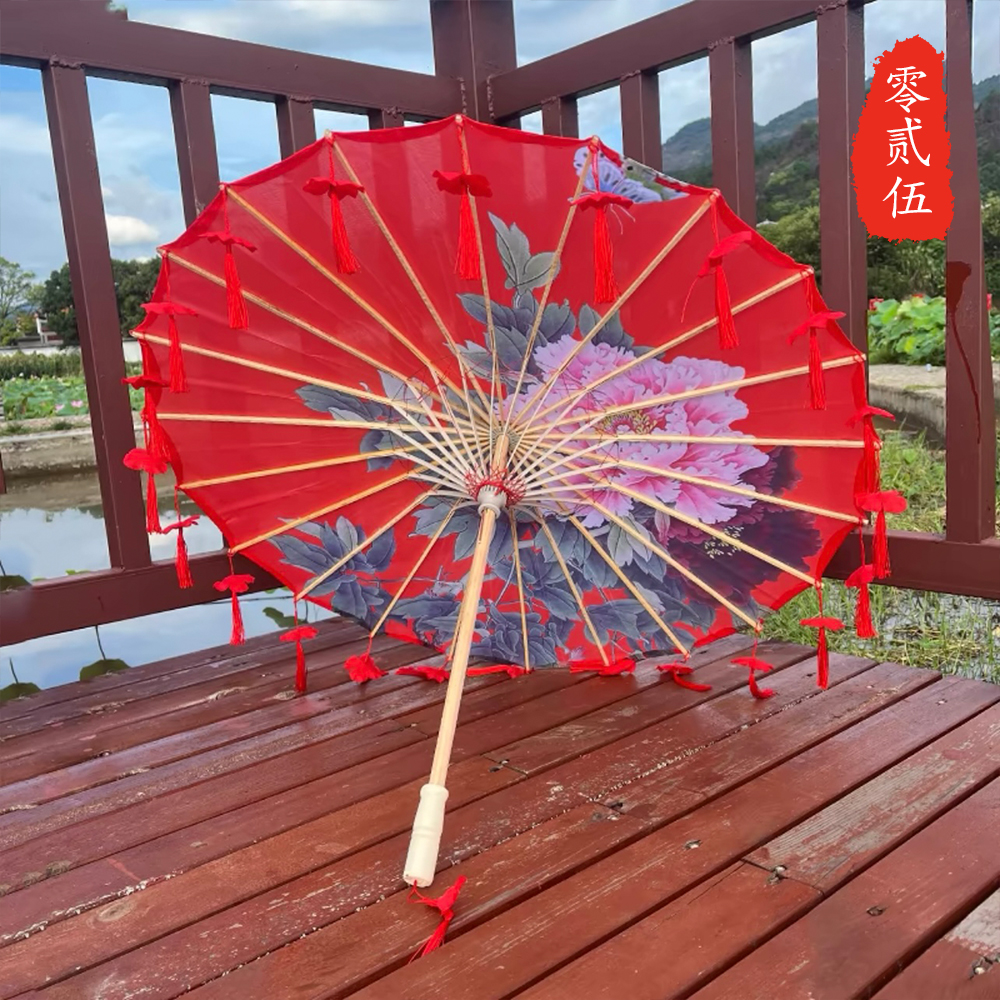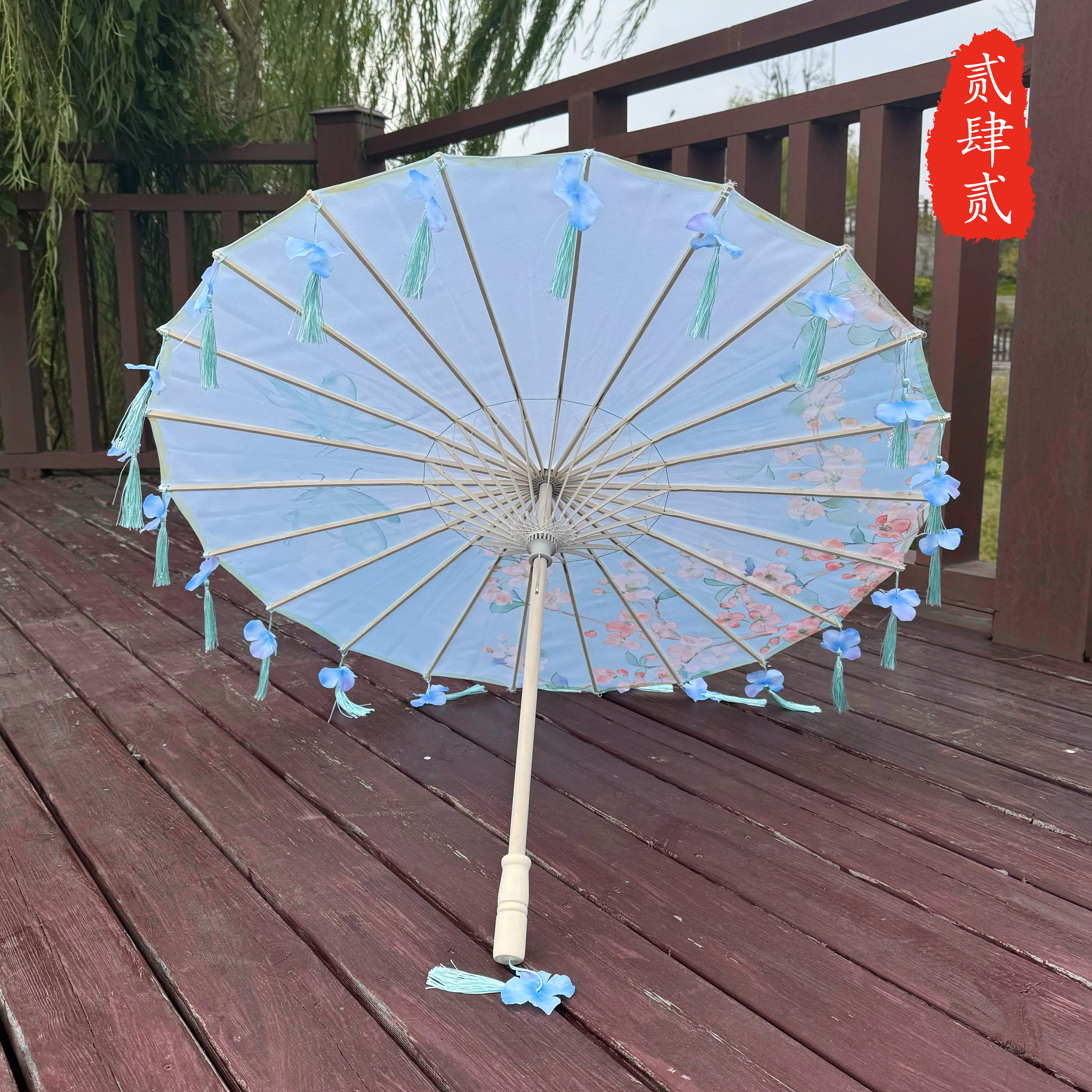 작은 어린이 꽃잎 술 우산 소품 장식 사진 우산 여성 댄스 공연 Hanfu Cheongsam 기름 종이 우산