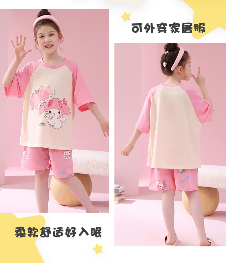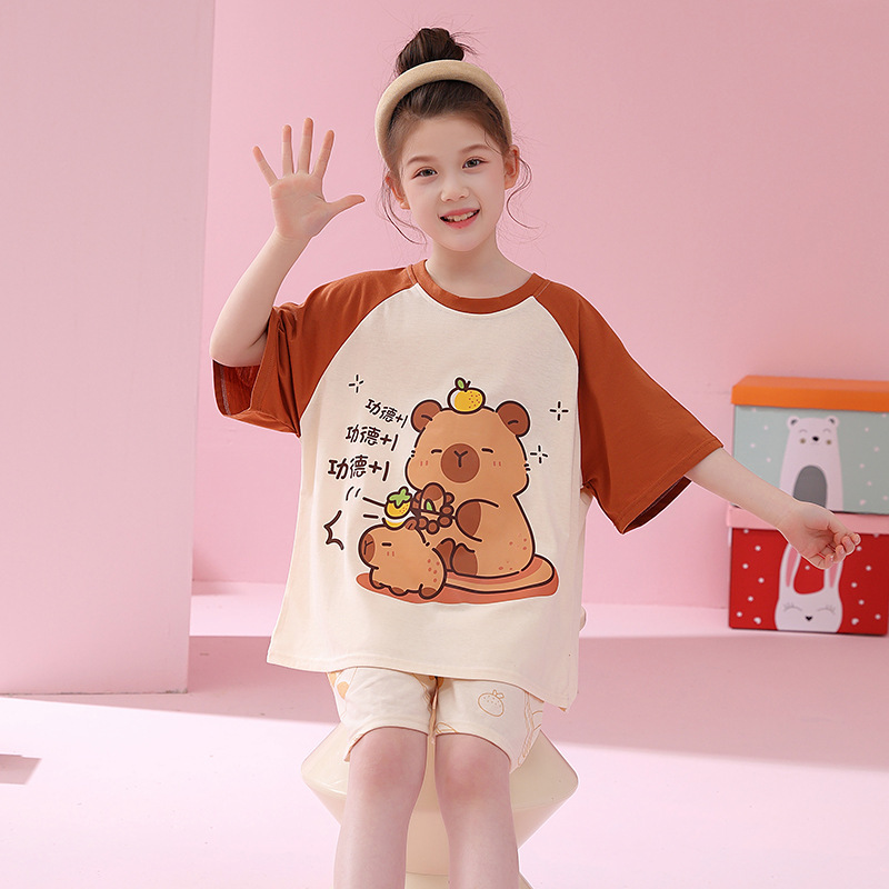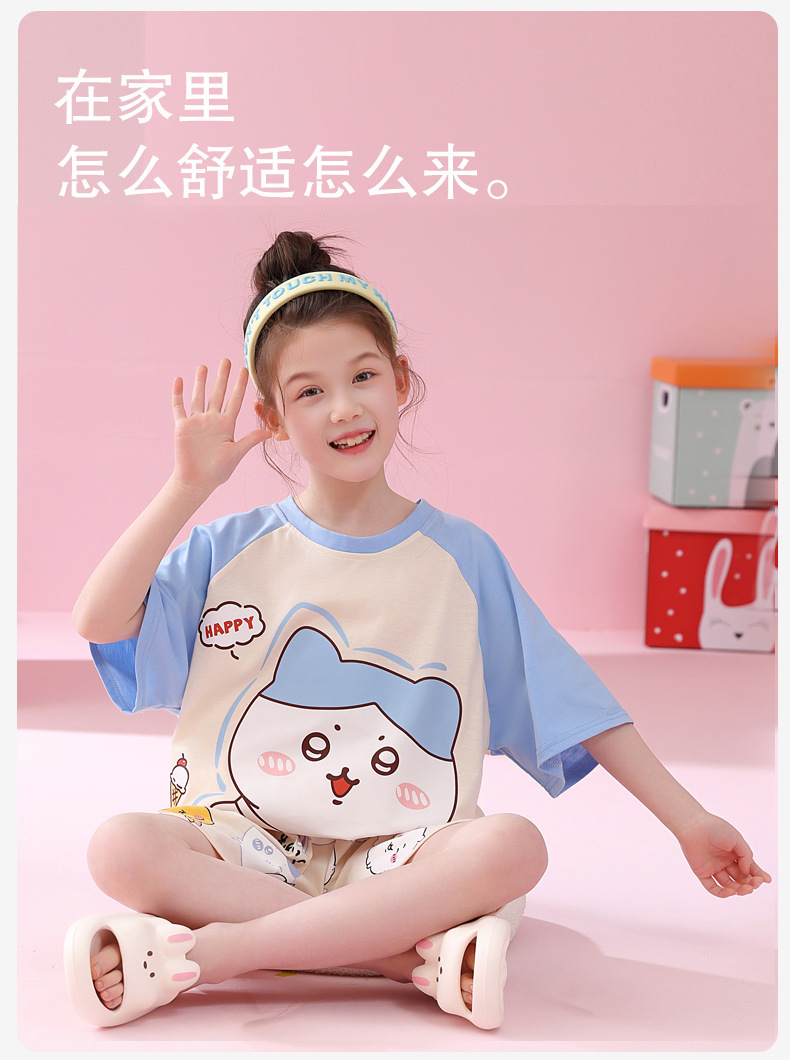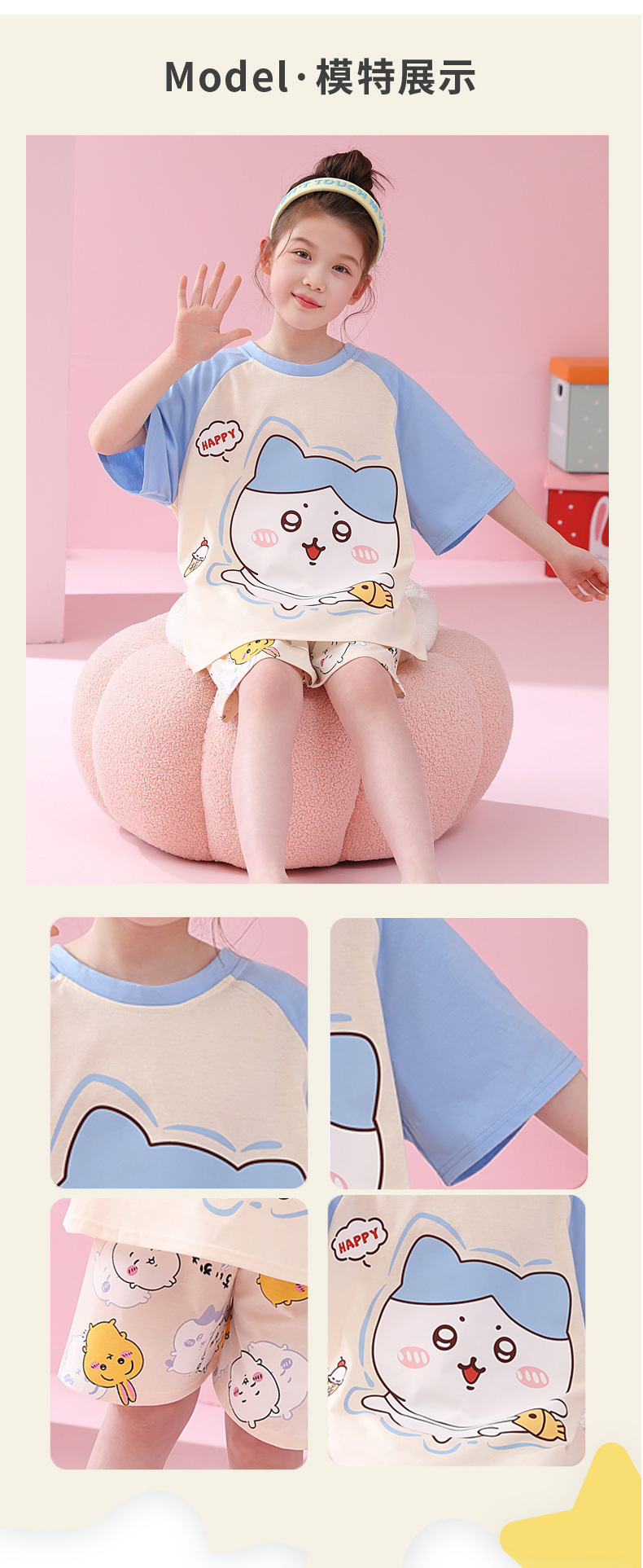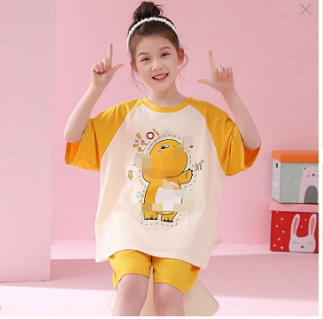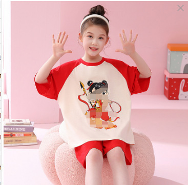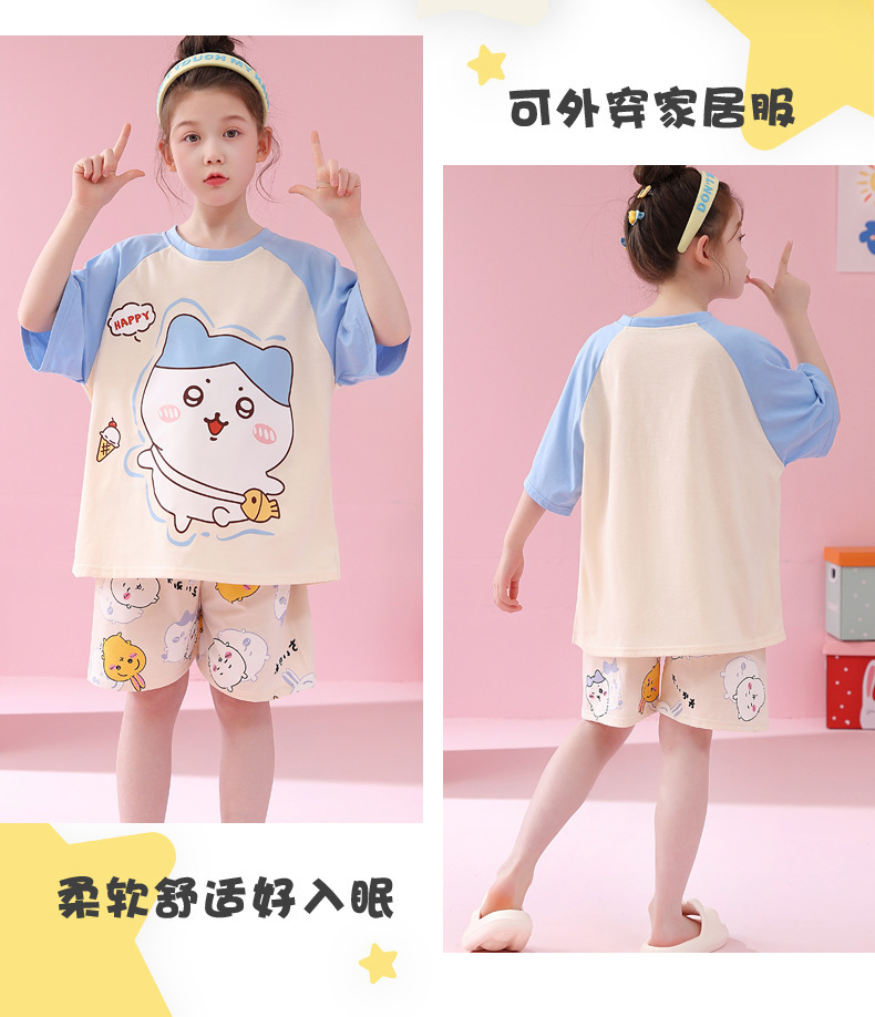 아동용 반바지, 여아용 잠옷, 가정복 세트, 빗질면 반팔, 야외에서 착용 가능, 만화 아기 여름 풀오버 세트