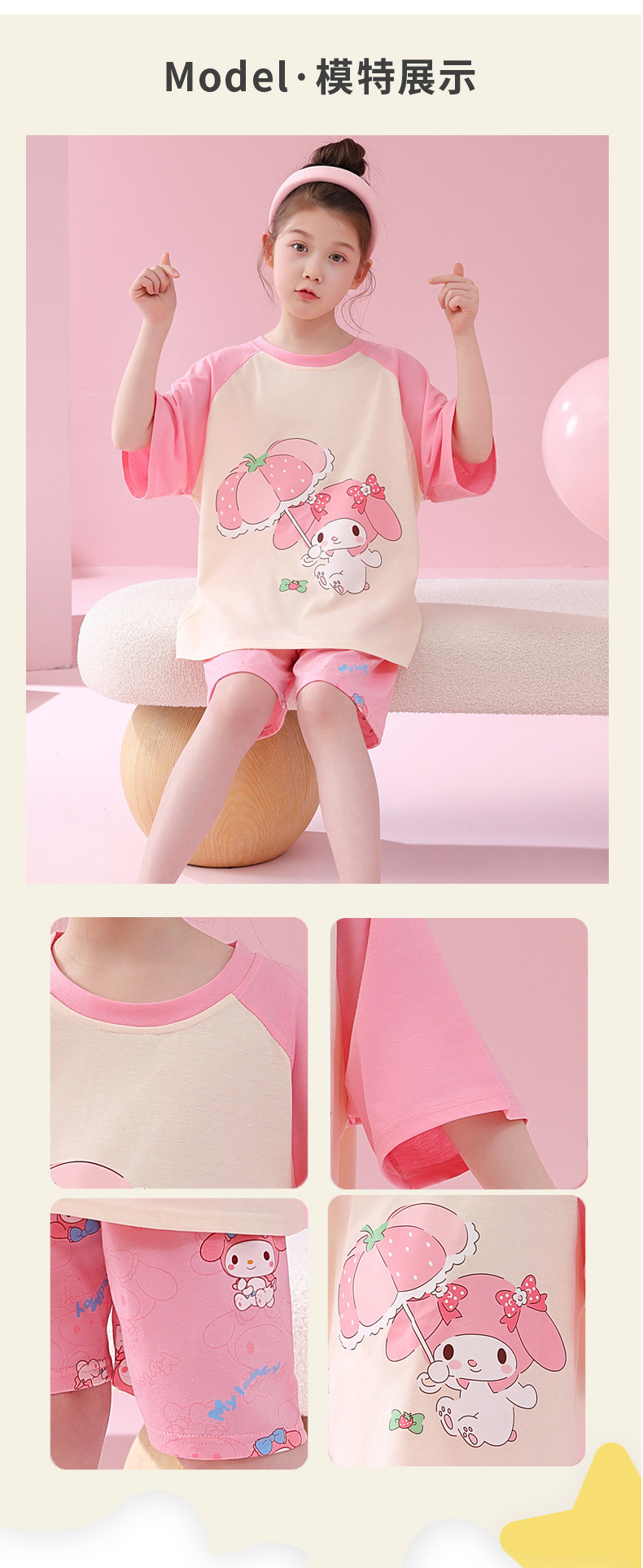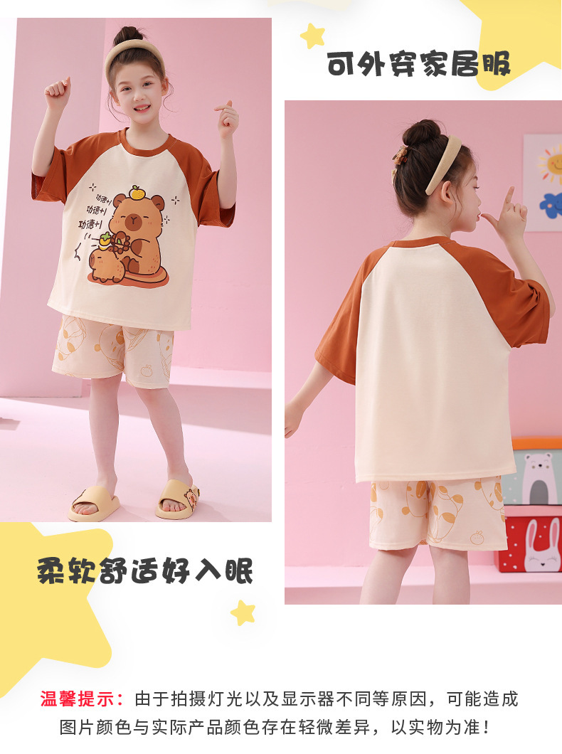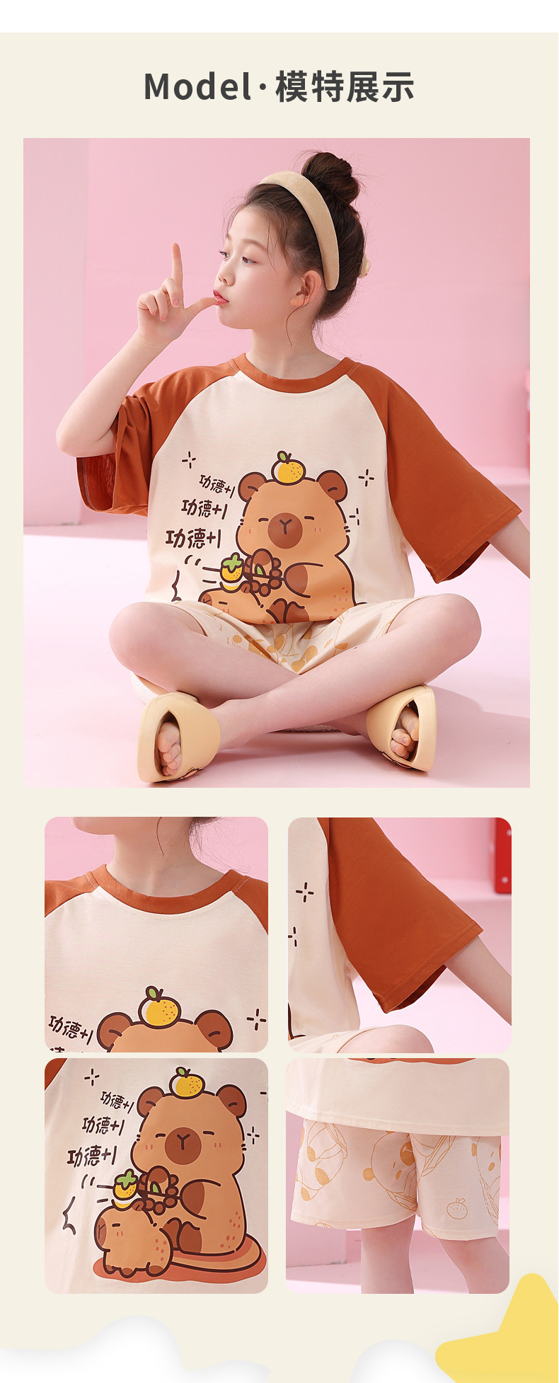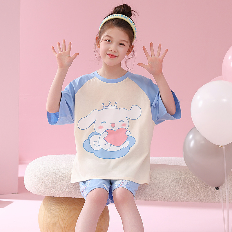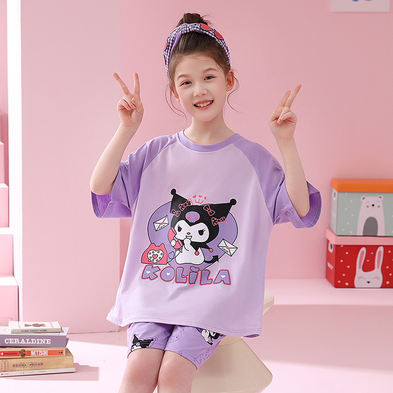 아동용 반바지, 여아용 잠옷, 가정복 세트, 빗질면 반팔, 야외에서 착용 가능, 만화 아기 여름 풀오버 세트