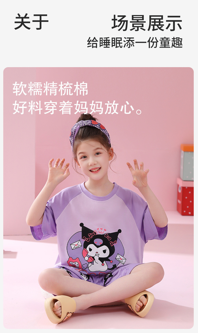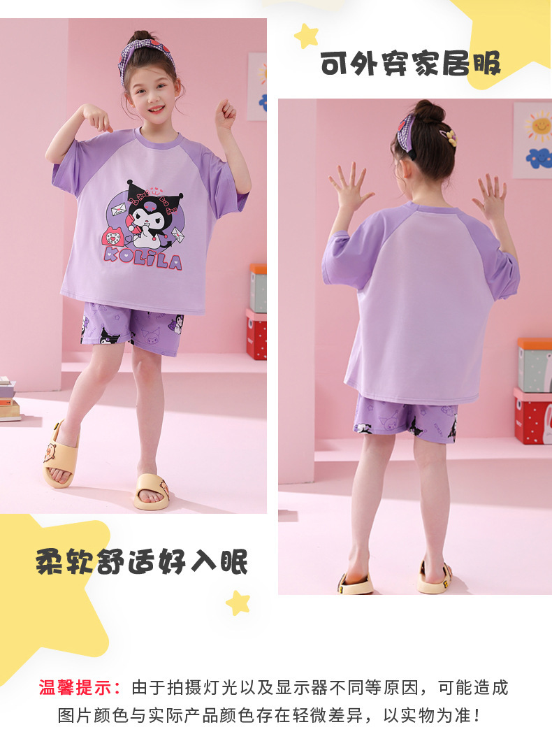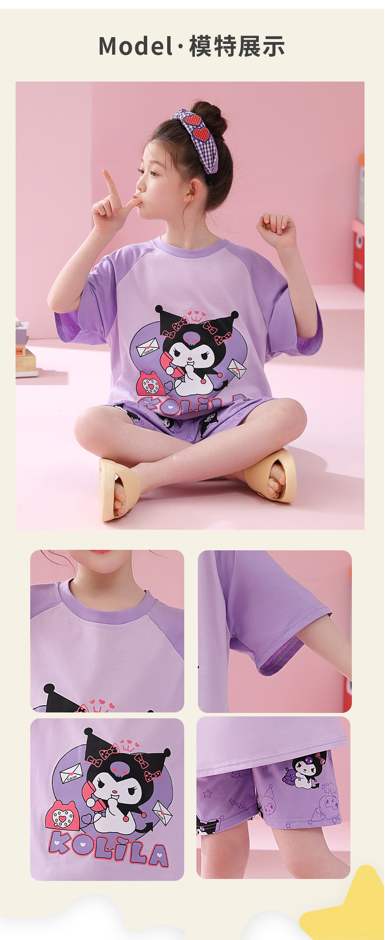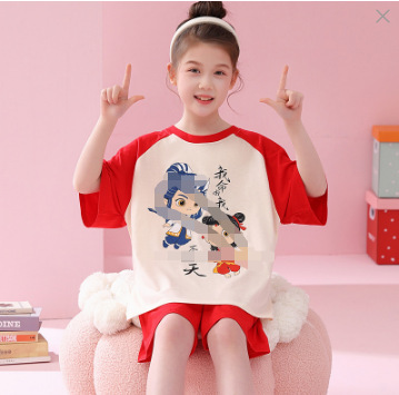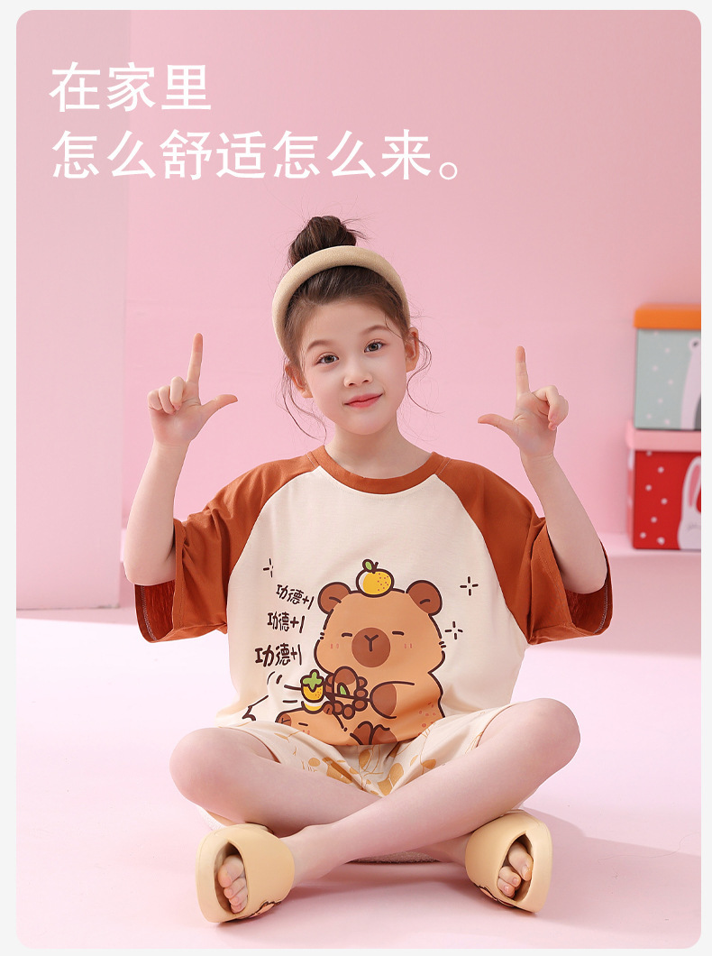 아동용 반바지, 여아용 잠옷, 가정복 세트, 빗질면 반팔, 야외에서 착용 가능, 만화 아기 여름 풀오버 세트