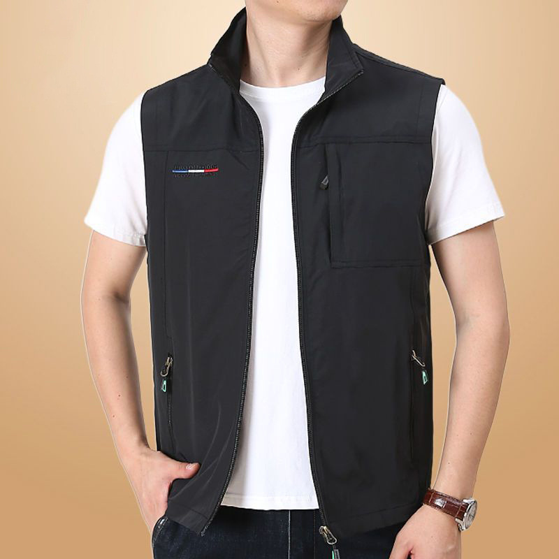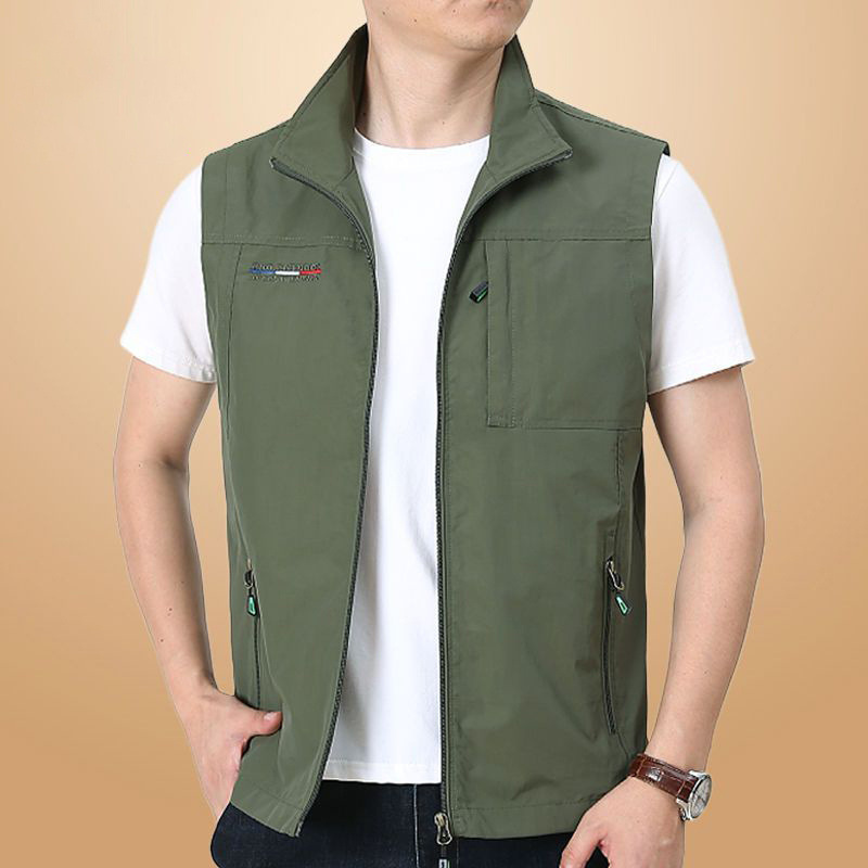 도파민 봄과 가을 조끼 남자 캐주얼 플러스 사이즈 멀티 포켓 외부 조끼 착용 빠른 건조 얇은 민소매 스포츠 도자기