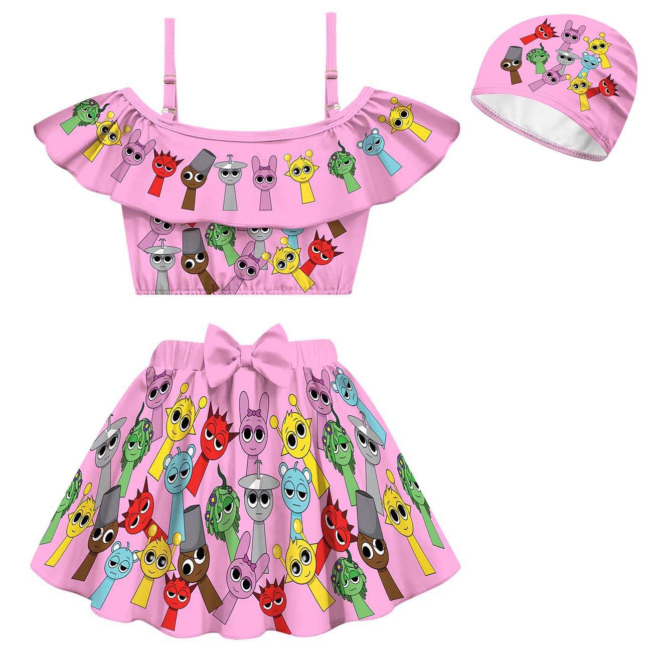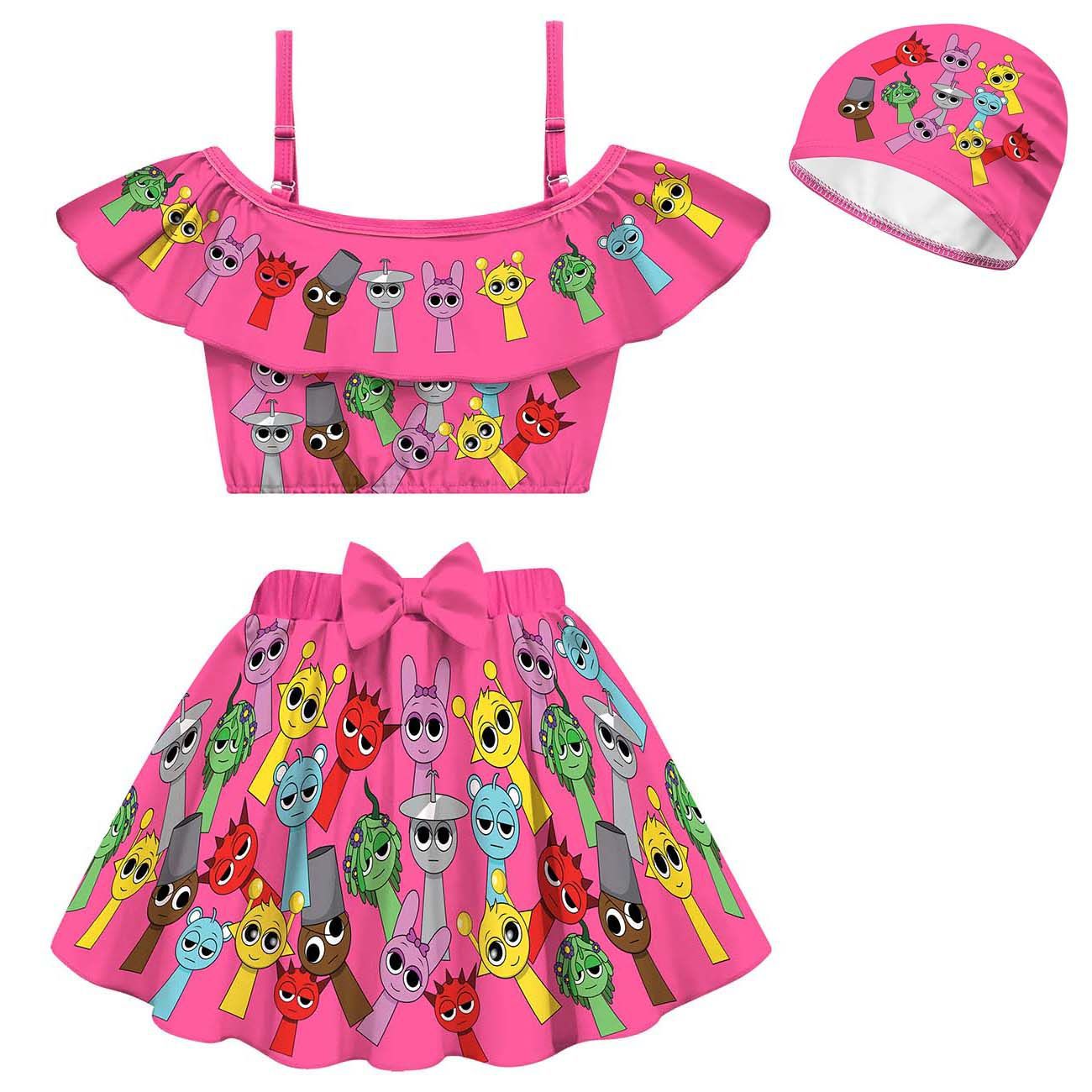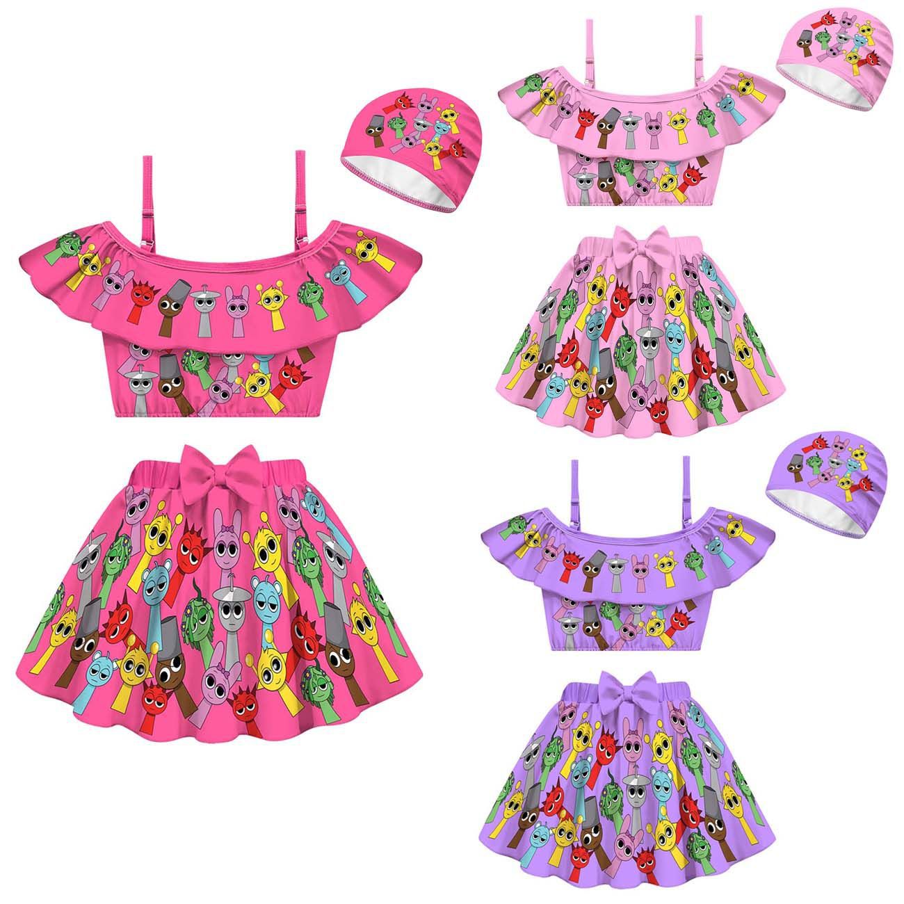 코스프레 리듬 박스 스프 룬키 봉제 소녀 스트랩 어깨 수영복 수영 모자 세트 20582
