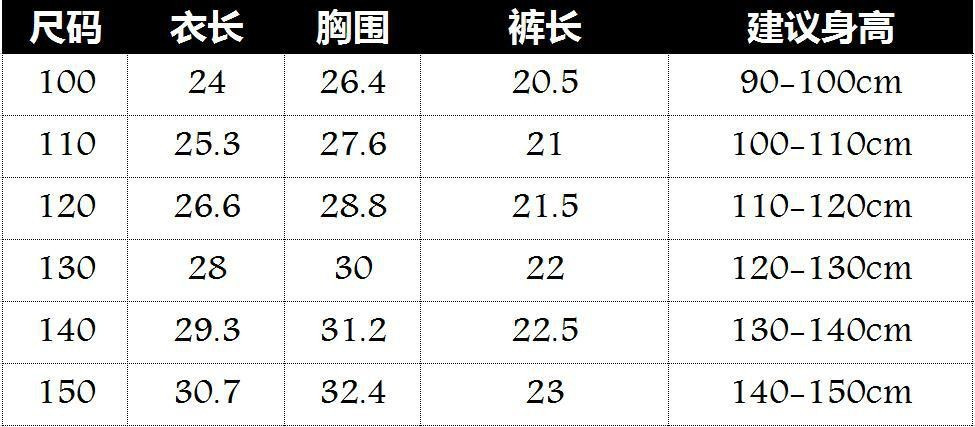 6个码:100 110 120 130 140 150