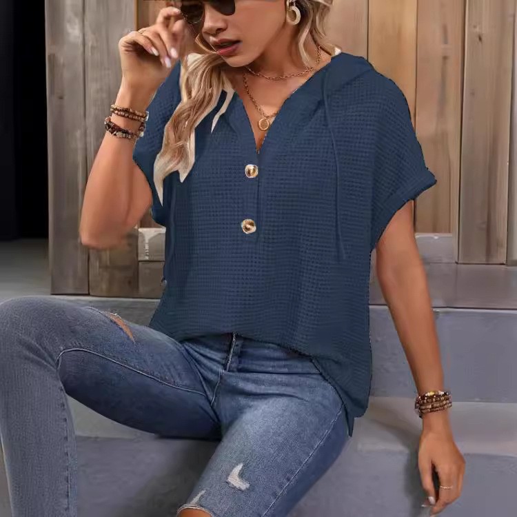국경 2024 봄과 여름 대외 무역 새로운 여성 의류 아마존은 유럽과 미국의 재킷 단색 버튼 패션 짧은 소매 여성을 기원합니다스토어 가기