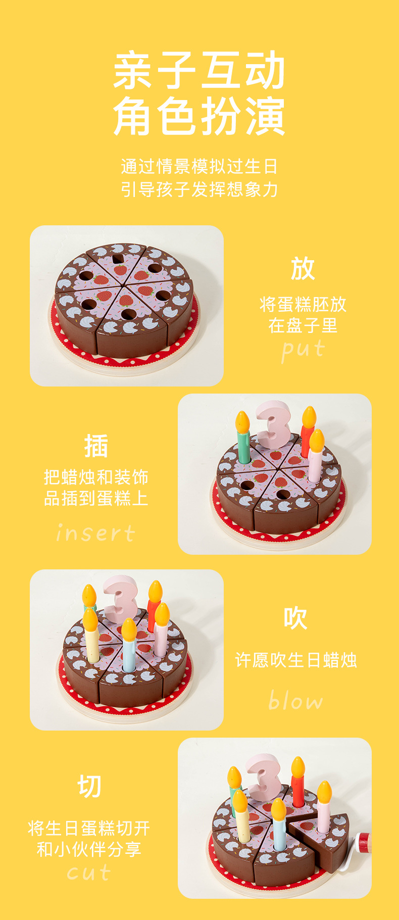 어린이 나무 시뮬레이션 놀이 집 부모-자식 대화 형 디저트 생일 케이크 커팅 세트 조합 교육 장난감스토어 가기