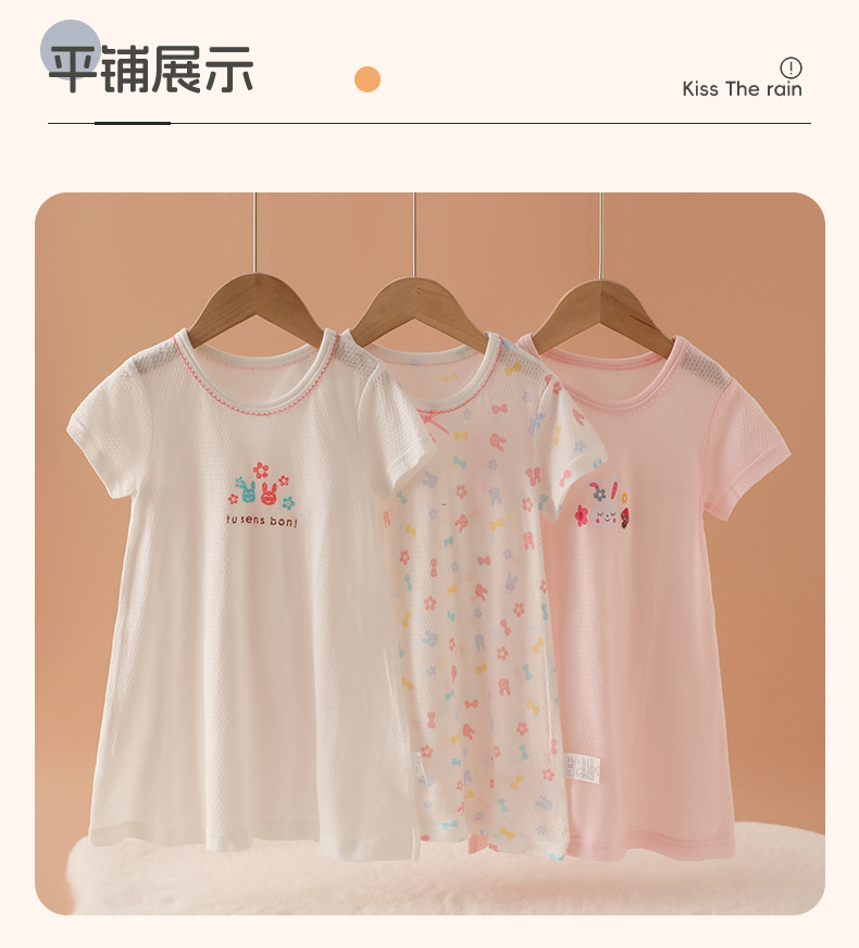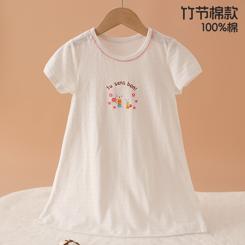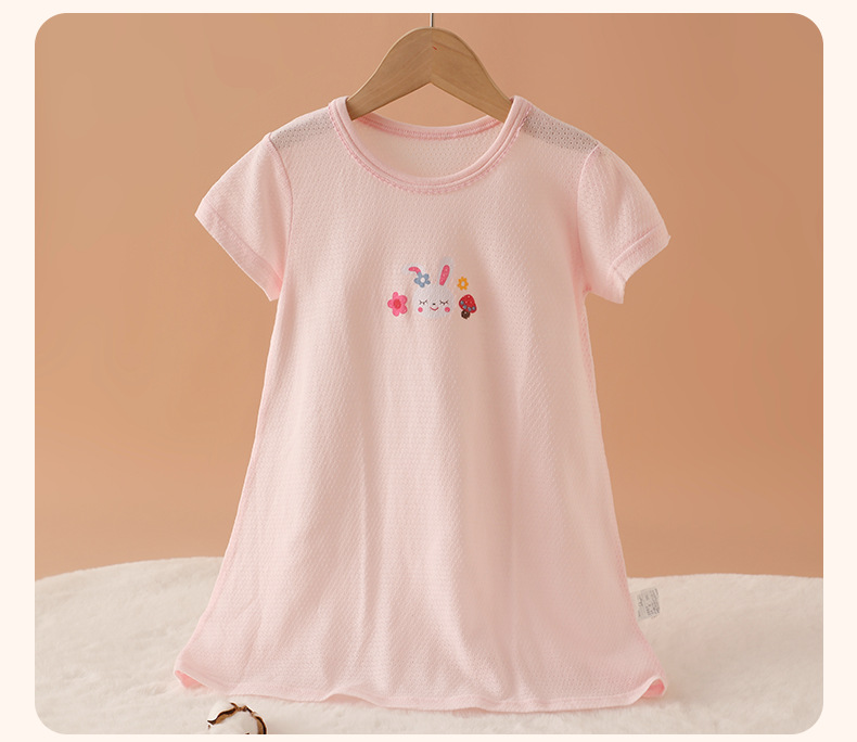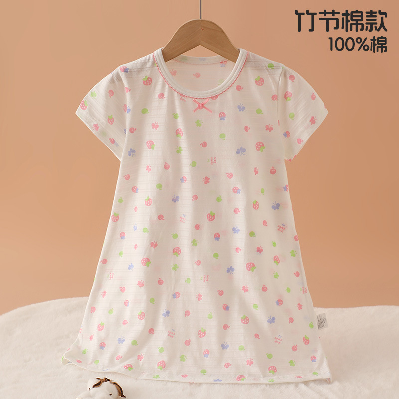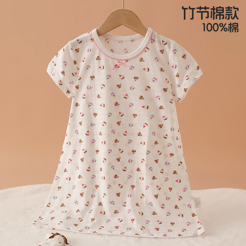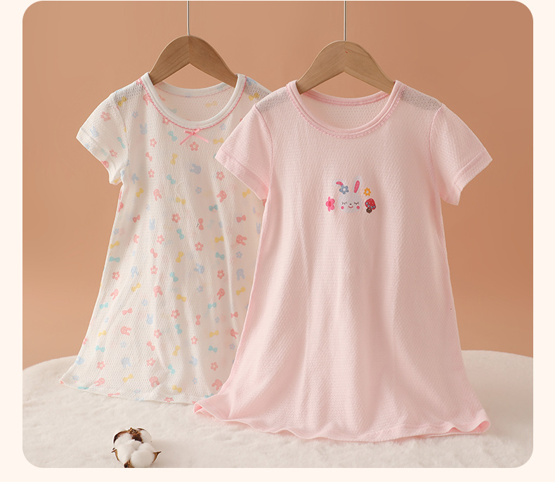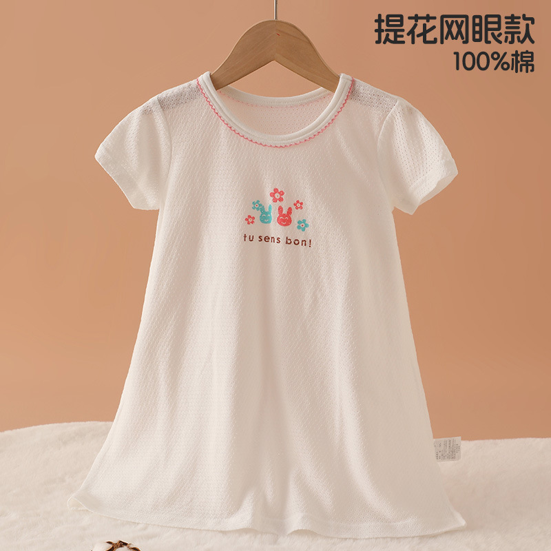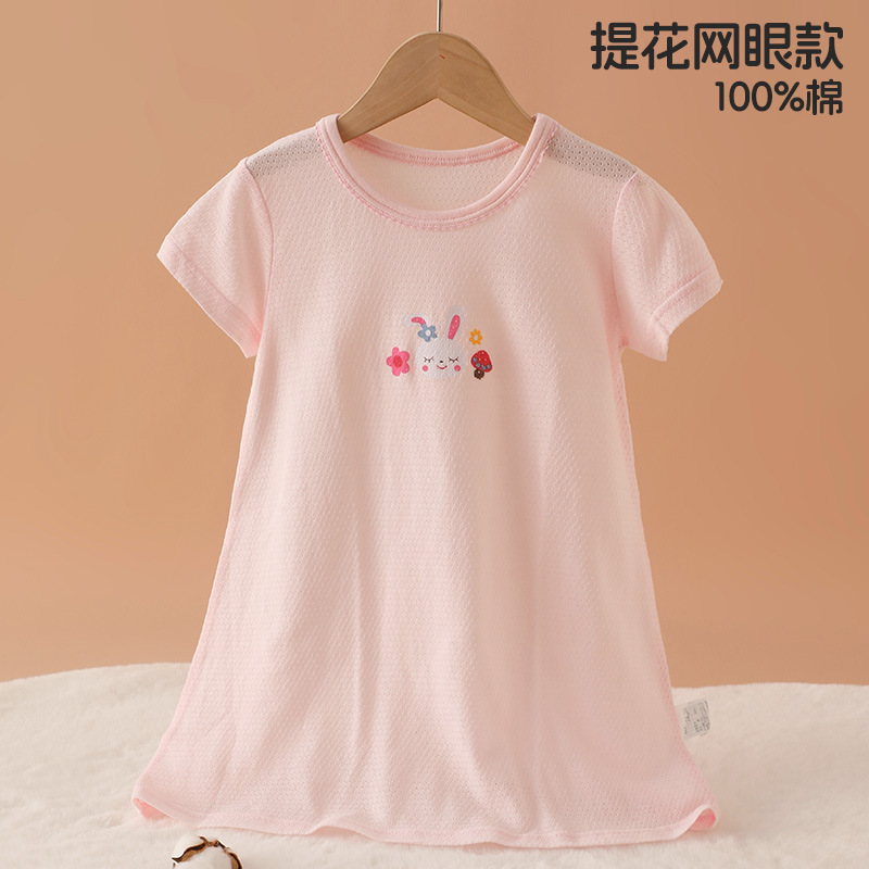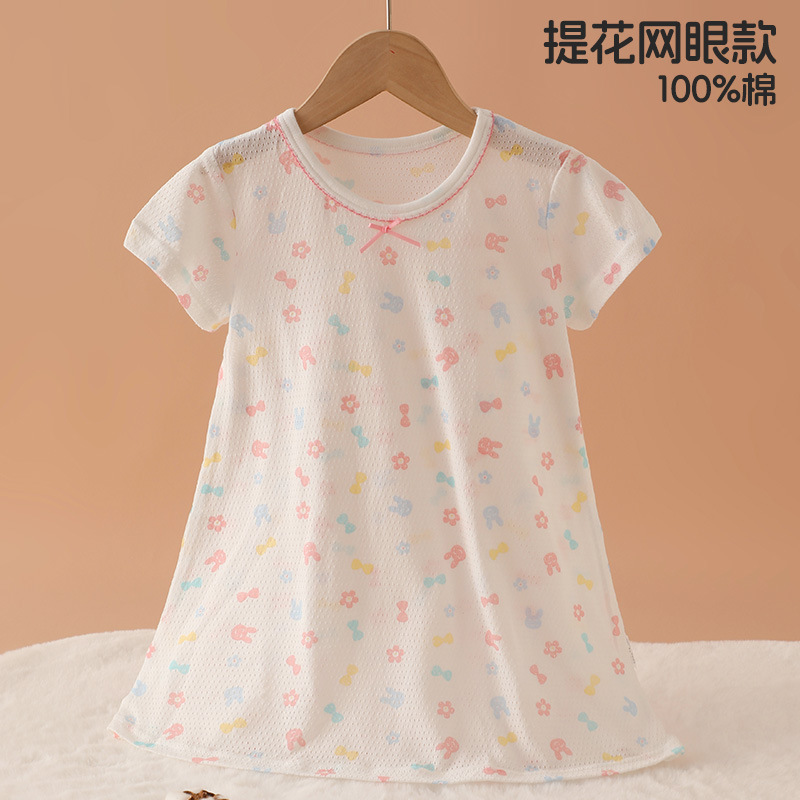 여름 퓨어 코튼 걸스 반팔 나이트 가운 메쉬 통기성 홈 원피스 어린이 원피스 아기 잠옷 얇은스토어 가기