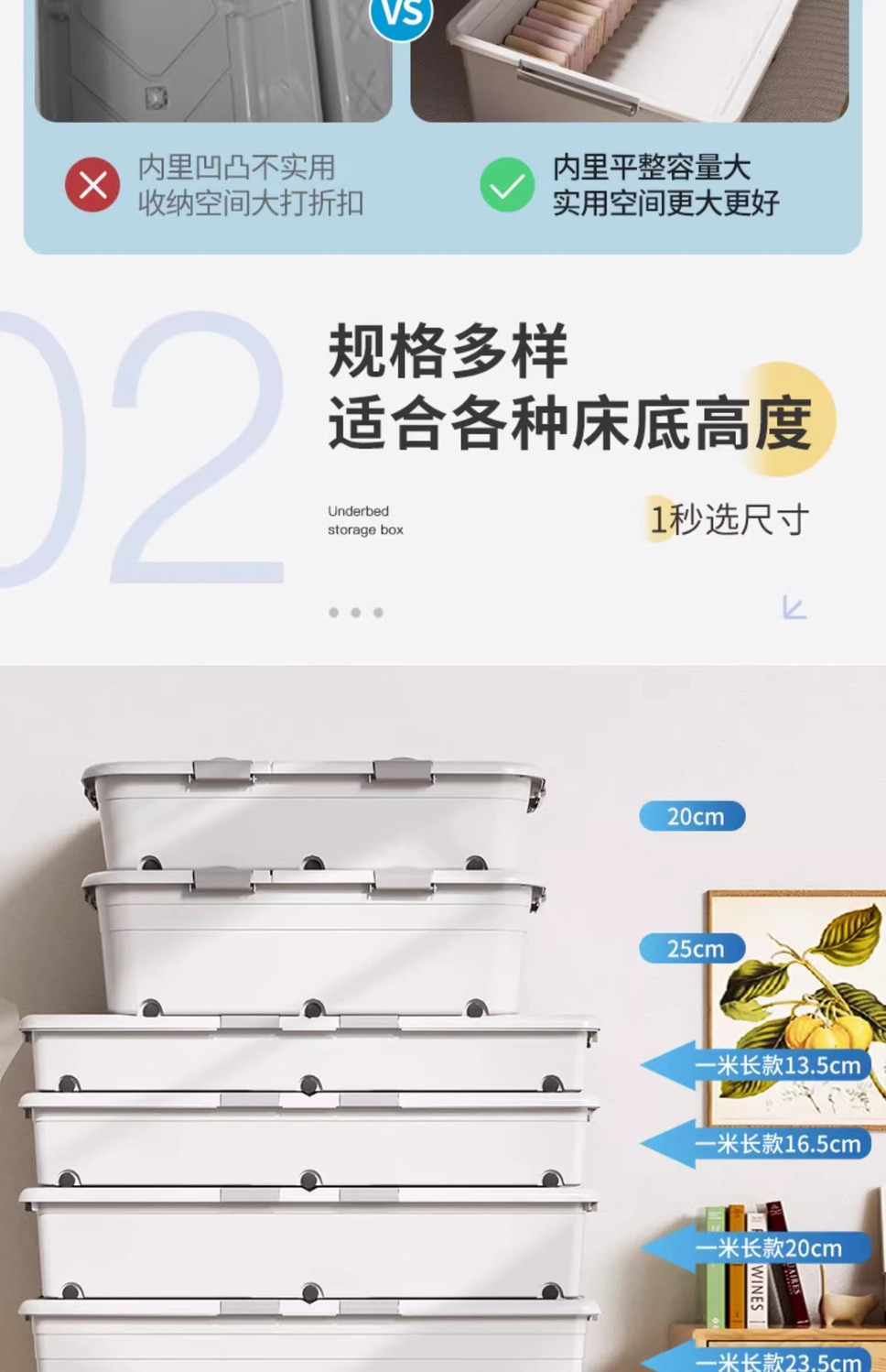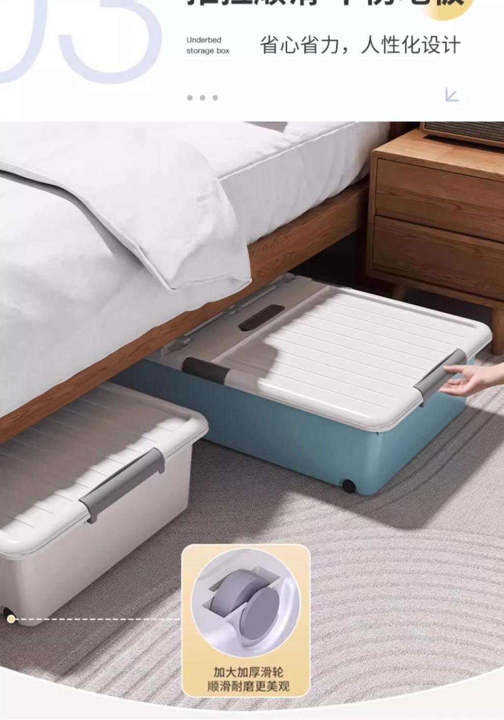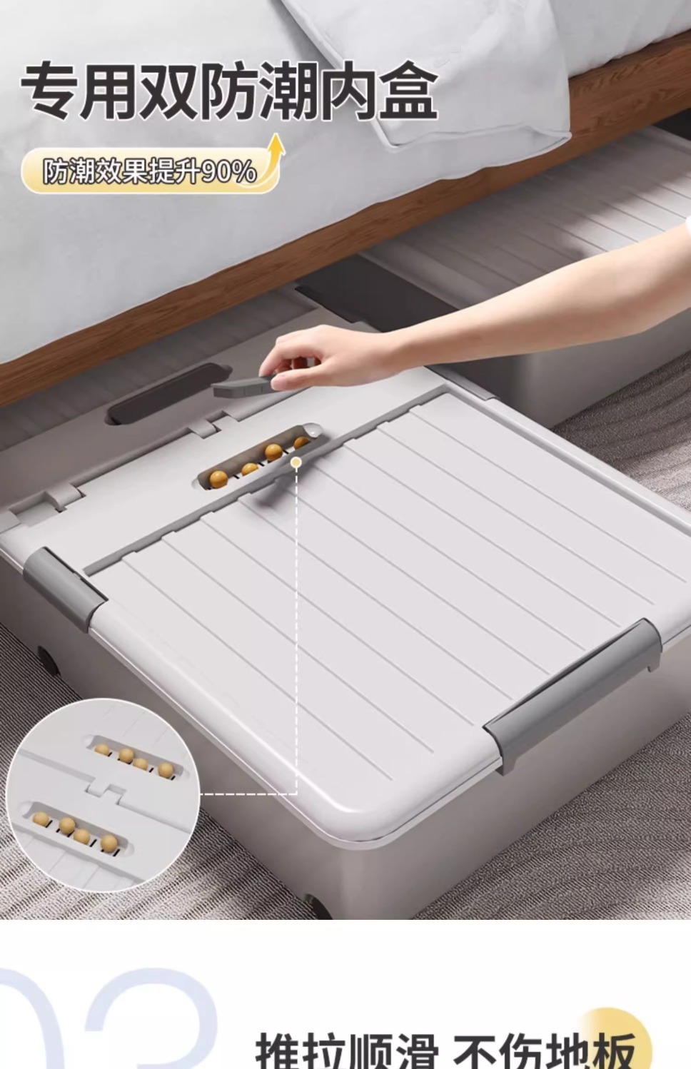 침대 밑에 바퀴가 달린 편평한 서랍이 달린 침대 밑바닥 보관 상자 편평한 옷 이불 보관 인공물 가구 충실 상자스토어 가기