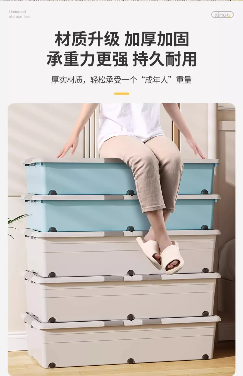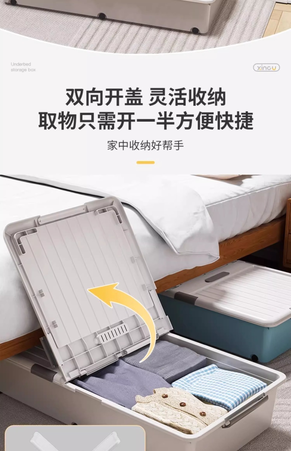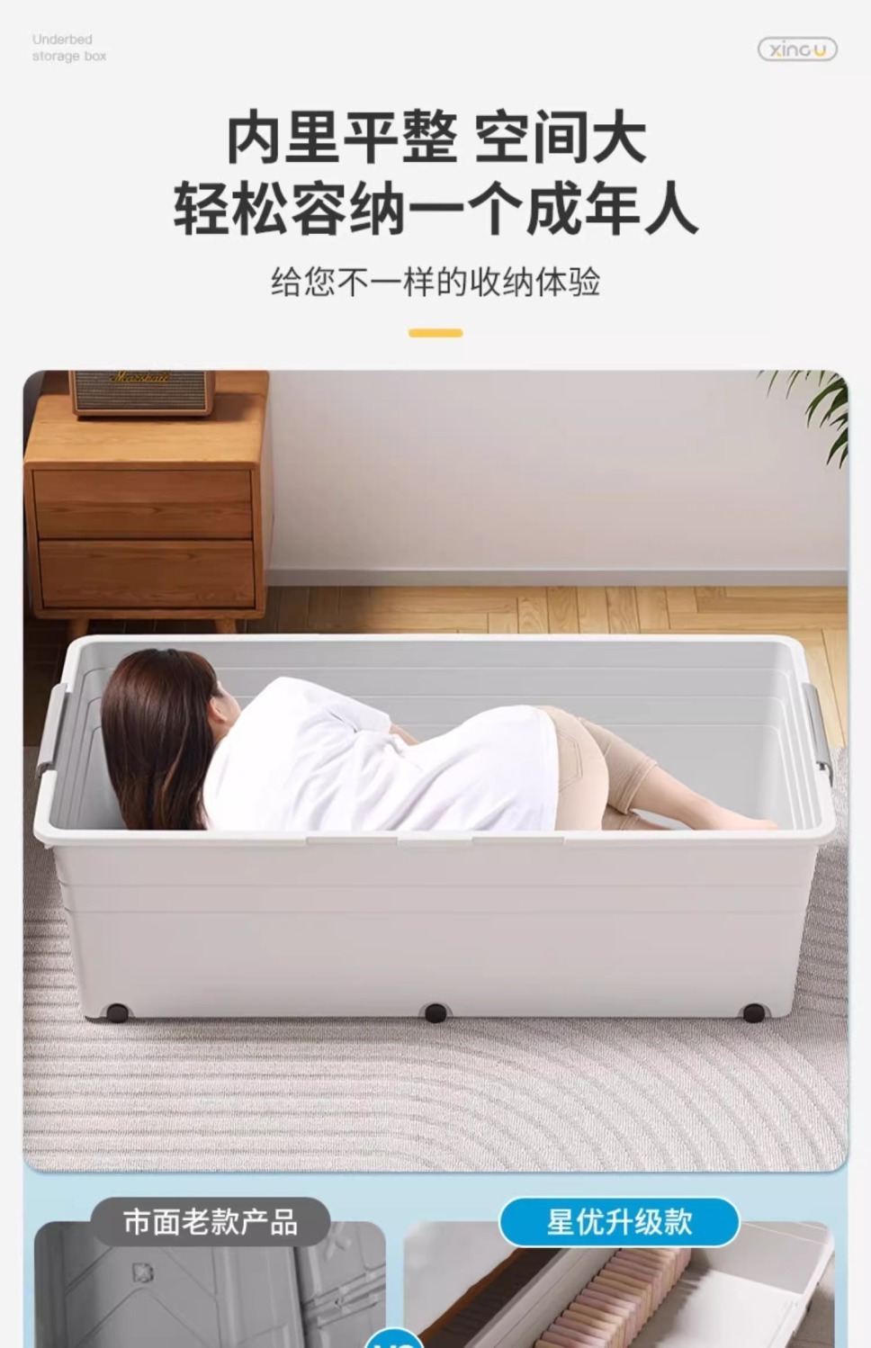 침대 밑에 바퀴가 달린 편평한 서랍이 달린 침대 밑바닥 보관 상자 편평한 옷 이불 보관 인공물 가구 충실 상자스토어 가기