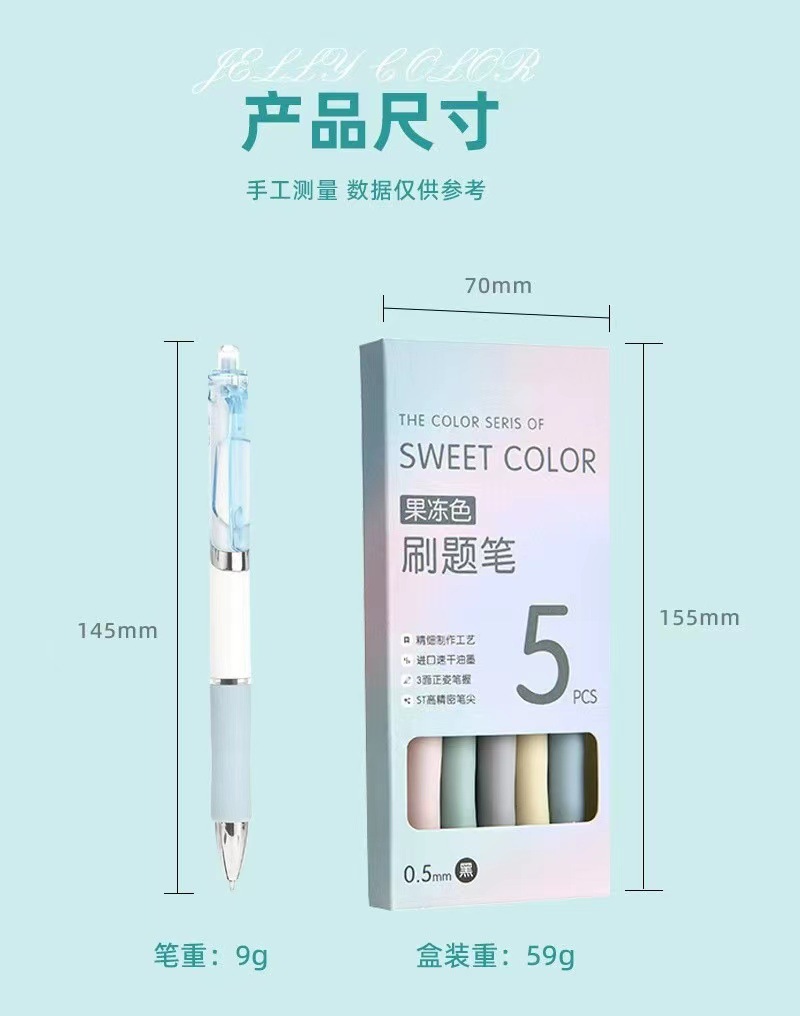 젤리 모란 디 박스 젤 펜 높은 컬러 값 프레스 마카롱 사인 펜 빠른 건조 학생 시험 브러시 펜