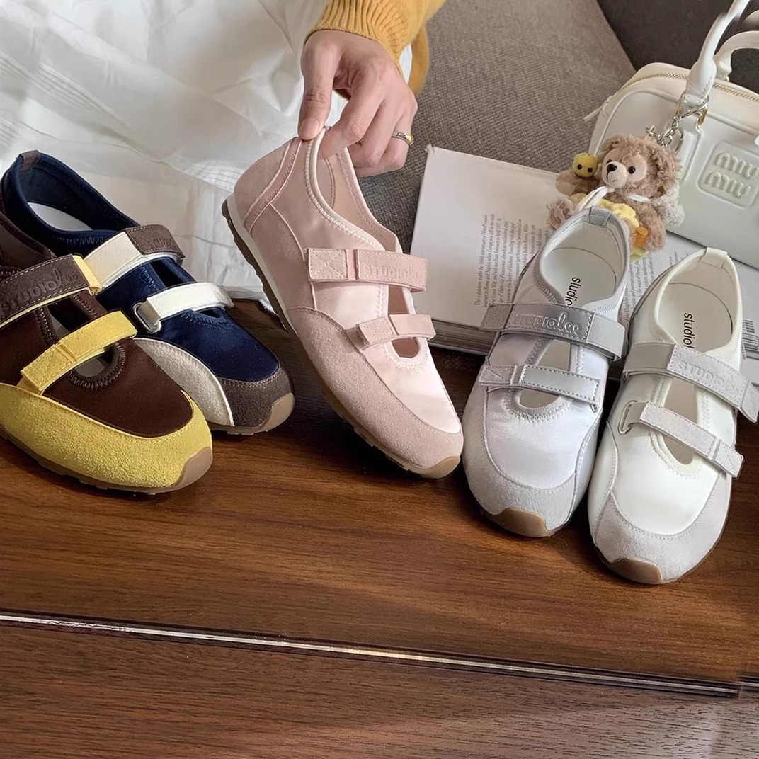 워터 드롭 중공 더블 벨크로 컬러 블록 발레 캐주얼 신발 가죽 소프트 솔 피곤하지 않은 발 얇은 둥근 발가락 플랫 싱글 레이어 신발
