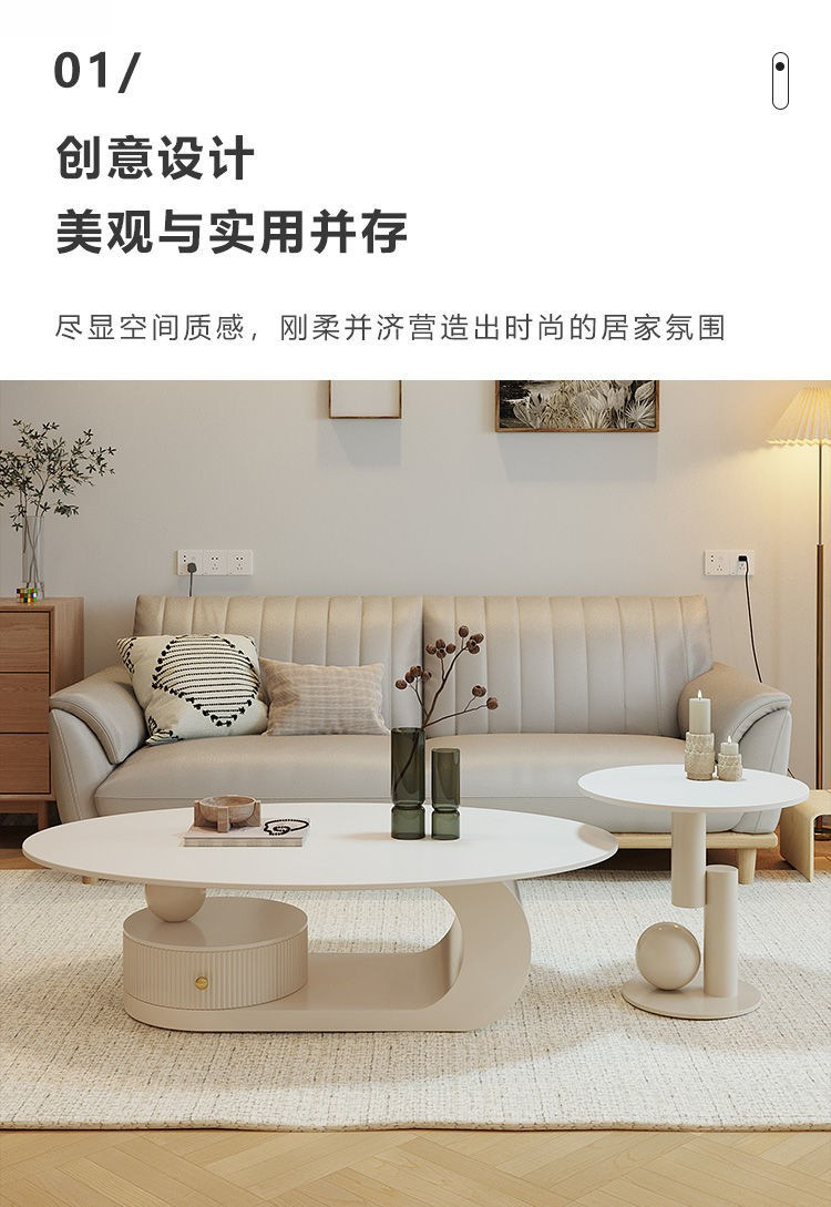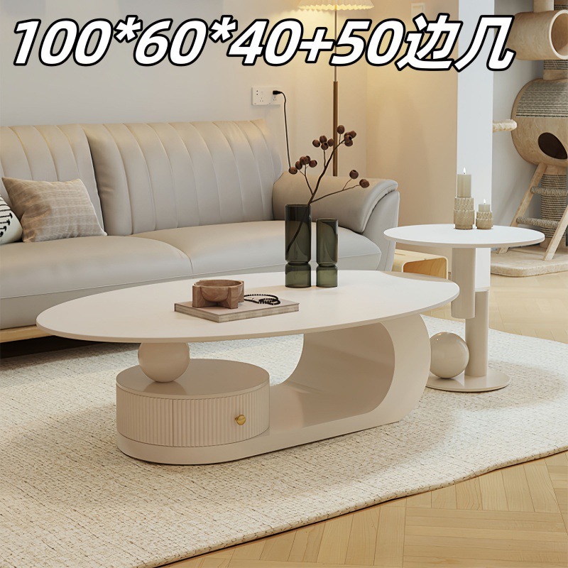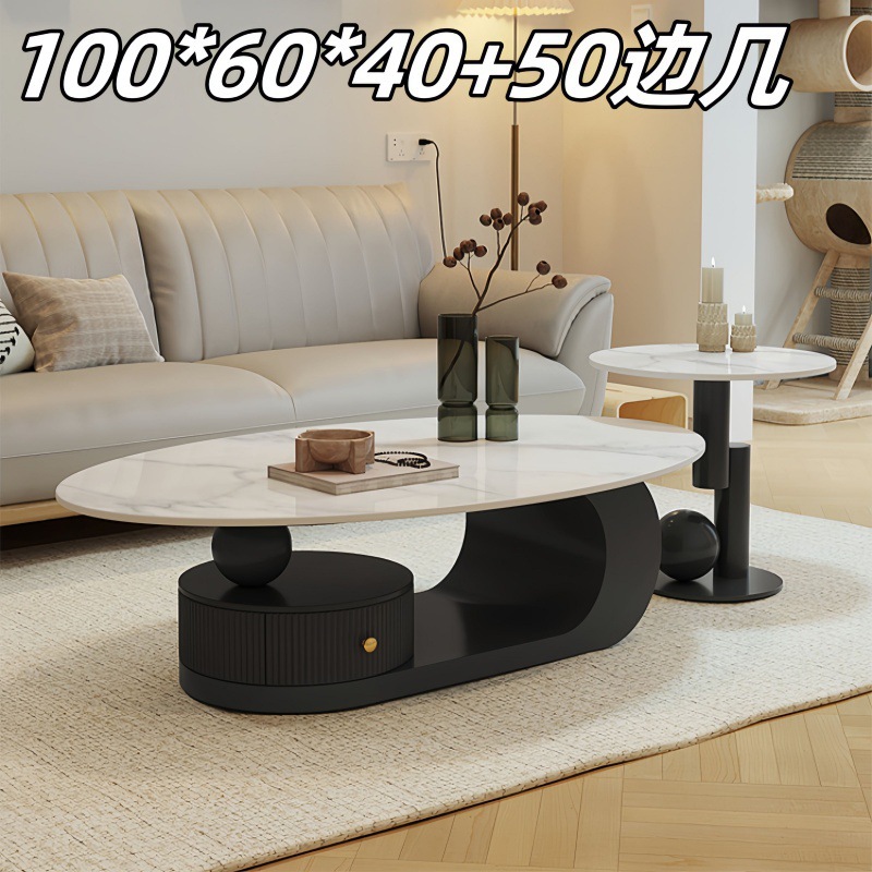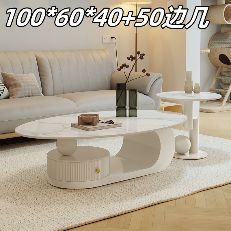 Ins 스타일 크림 거실 커피 테이블 록 보드 커피 테이블 새로운 특수 모양의 커피 테이블 작은 아파트 간단한 록 보드 커피 테이블 테이블