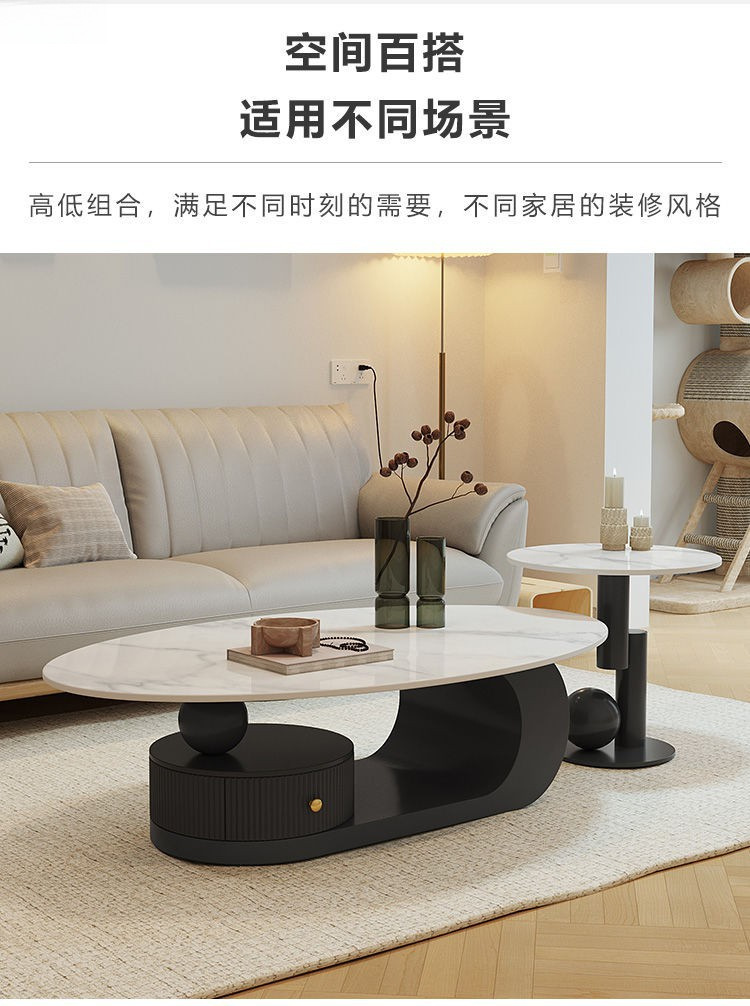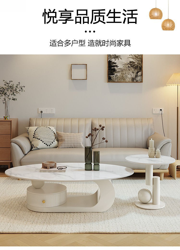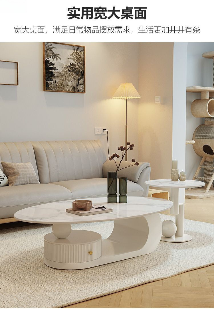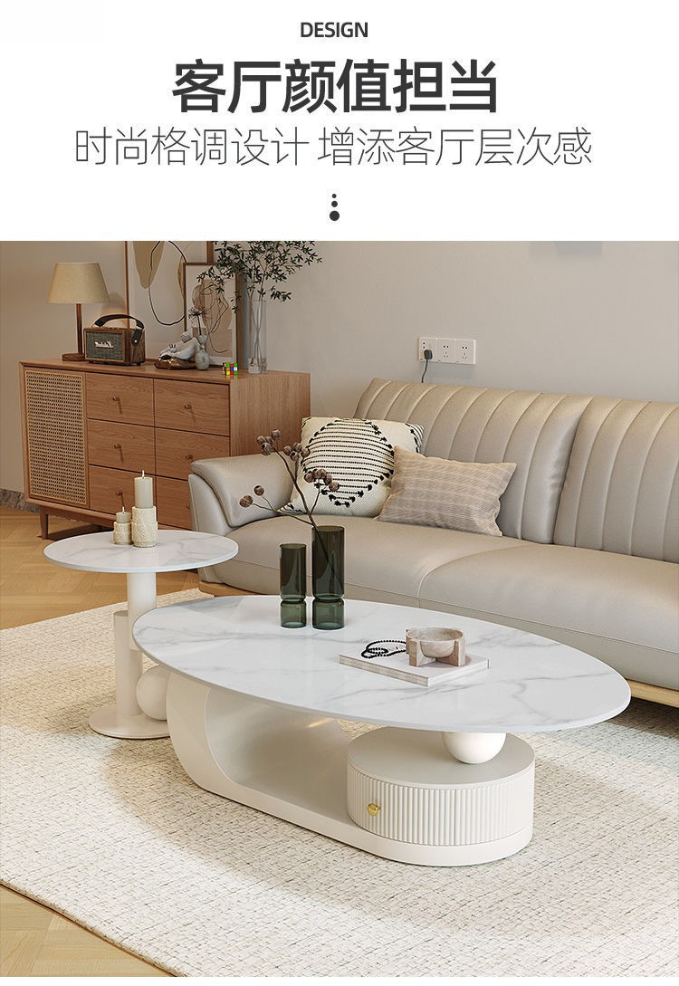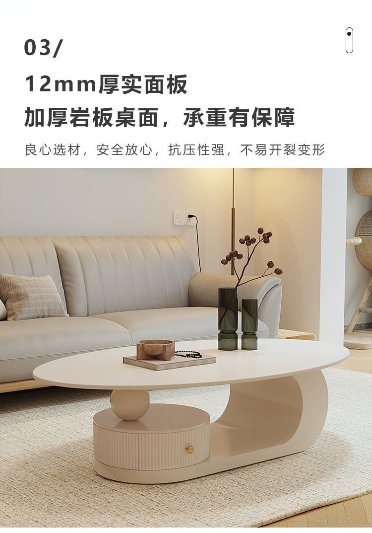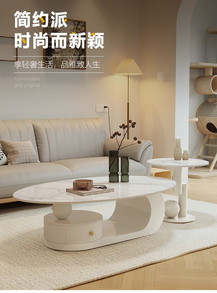 Ins 스타일 크림 거실 커피 테이블 록 보드 커피 테이블 새로운 특수 모양의 커피 테이블 작은 아파트 간단한 록 보드 커피 테이블 테이블스토어 가기