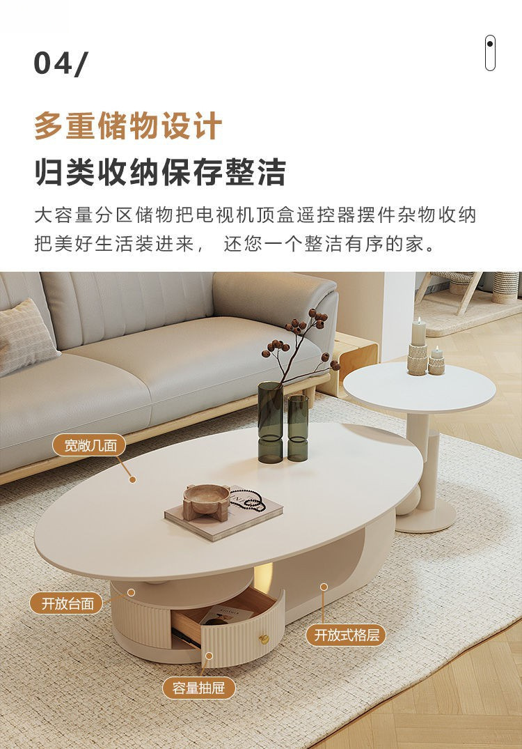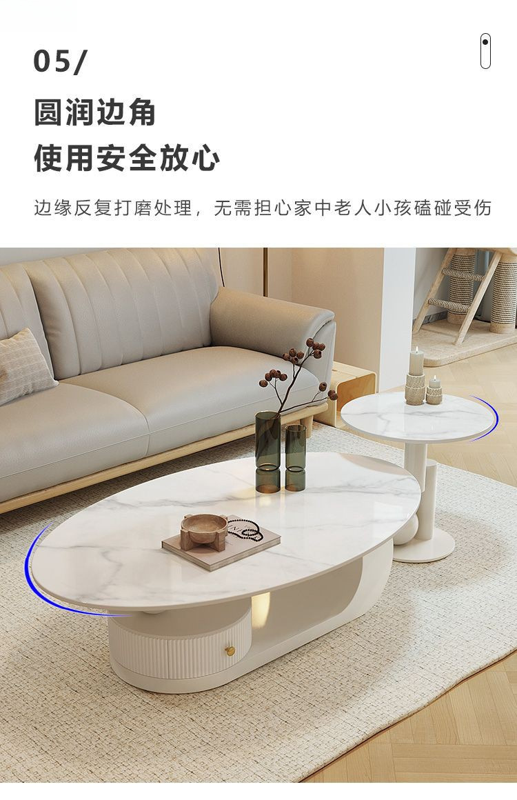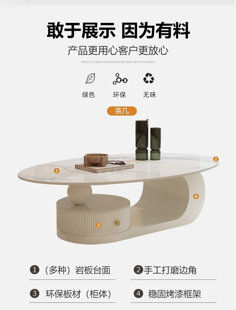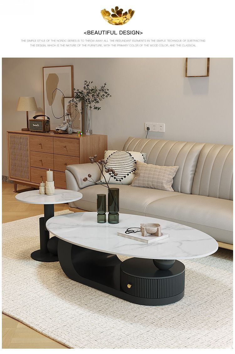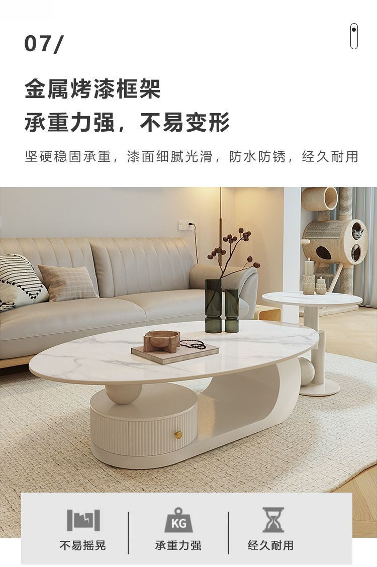 Ins 스타일 크림 거실 커피 테이블 록 보드 커피 테이블 새로운 특수 모양의 커피 테이블 작은 아파트 간단한 록 보드 커피 테이블 테이블스토어 가기