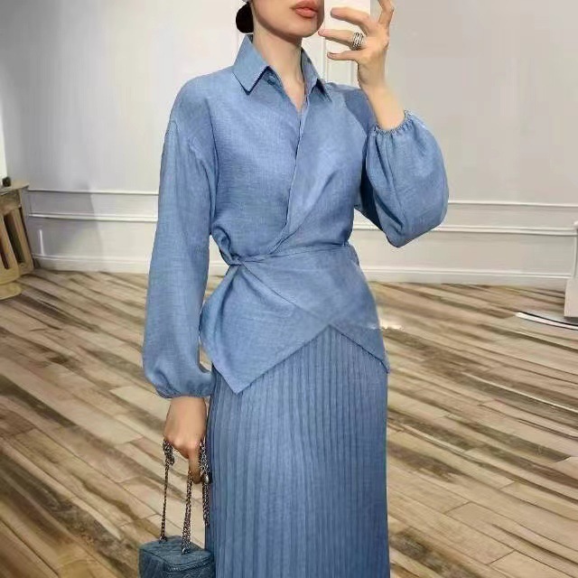재고 2024 새로운 여성 무슬림 스타일 우아한 패션 주름 치마 스트랩 탑 봄 원피스스토어 가기