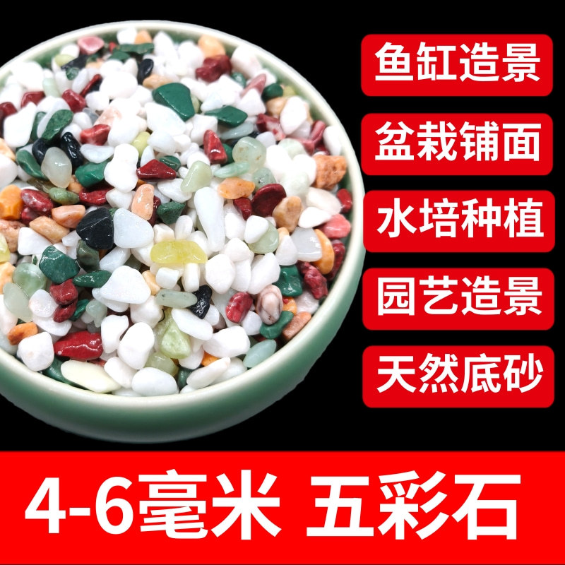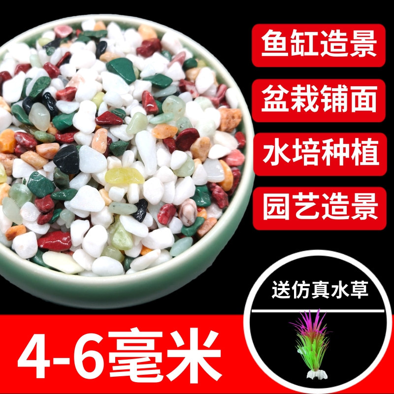 • 4-6mm 다채로운 돌 5kg 팩, 무료 4개의 모조 수생 식물