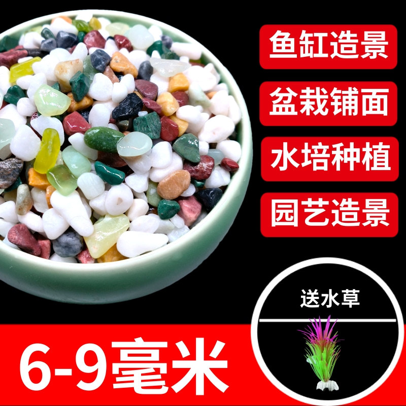 • 6-9mm 다채로운 돌 2.5kg 팩, 무료 2 인공 수생 식물 9