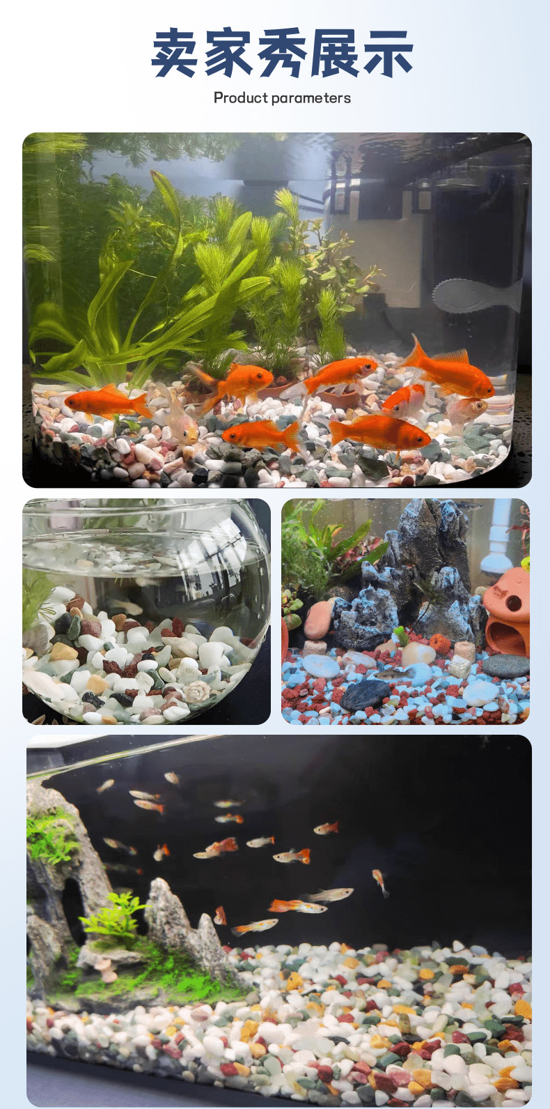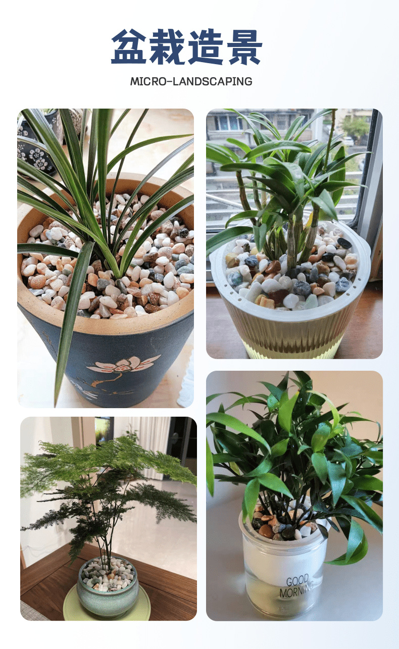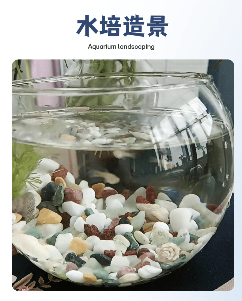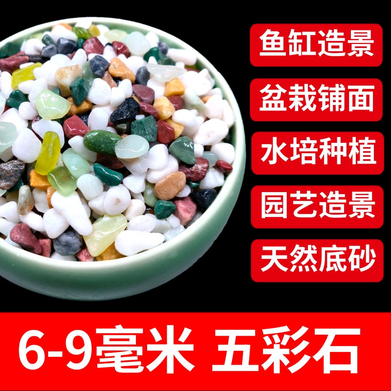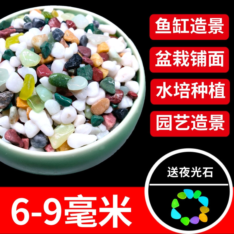 • 6-9mm 다채로운 돌 5kg 팩, 무료 4개의 모조 수생 식물