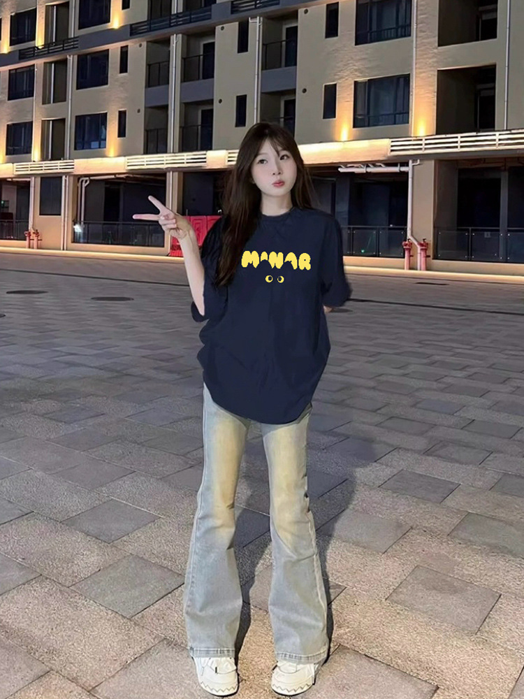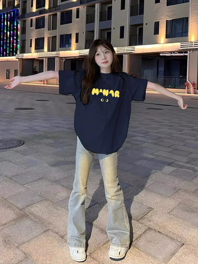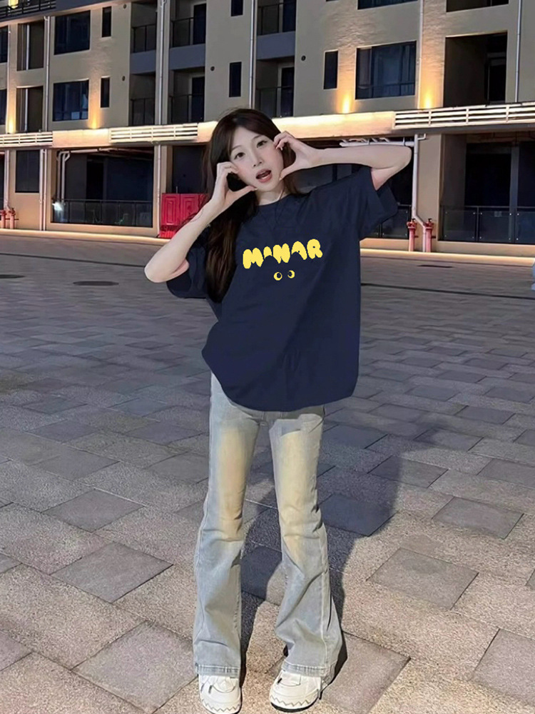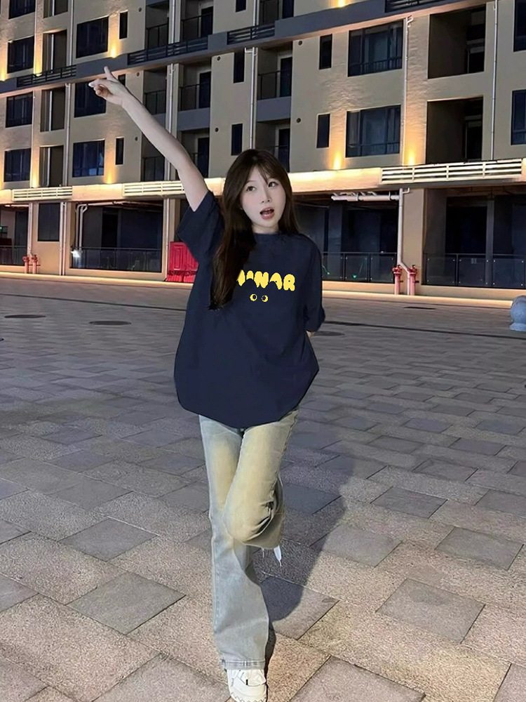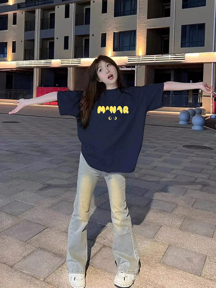 새로운 아메리칸 스타일 레트로 퓨어 코튼 중량형 반팔 티셔츠 여성 디자인 센스 인스 타 그램 전국 패션 브랜드 틈새 반팔 탑스토어 가기