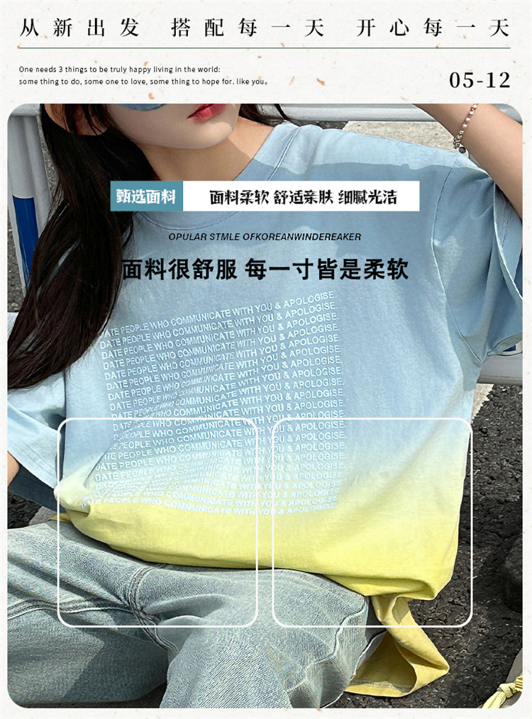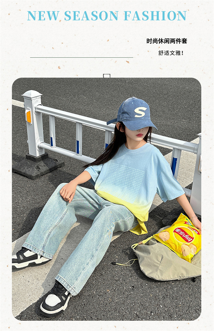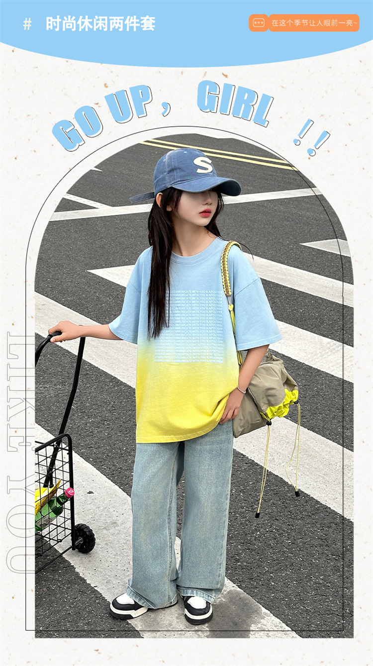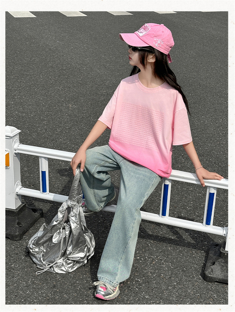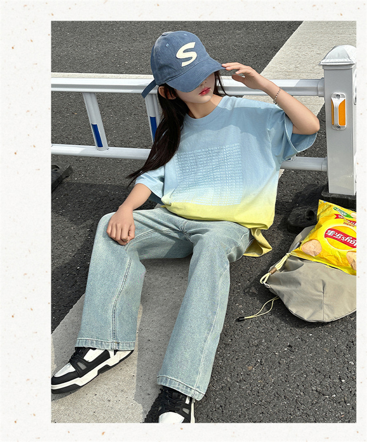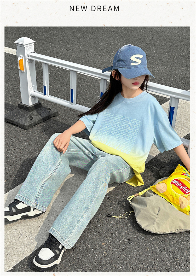 소녀 교수형 염료 그라디언트 티셔츠 2025 여름 새로운 세련된 큰 어린이 패셔너블 반팔 트렌디 탑스토어 가기