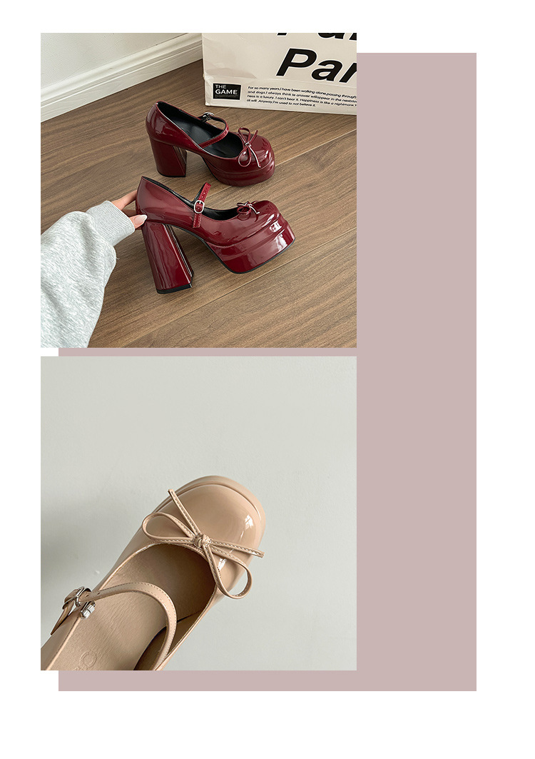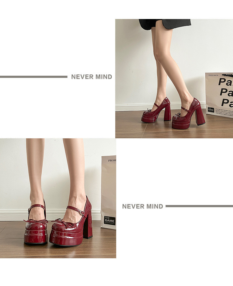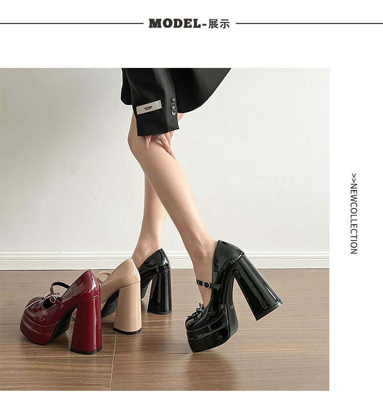 두꺼운 밑창 높은 높이 신발 여성 봄과 여름 새로운 패션 방수 플랫폼 가죽 신발 틈새 단색 두툼한 발 하이힐스토어 가기