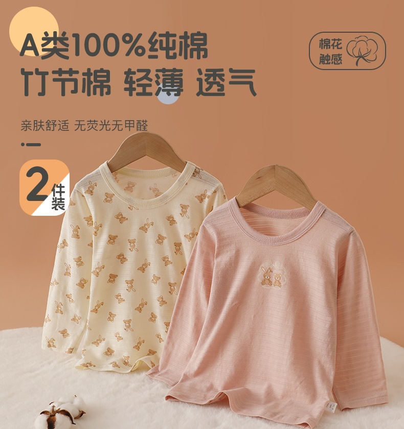 여름 얇은 여아 티셔츠 순면 아기 소녀 홈 잠옷 긴팔 바닥 셔츠 땀 흡수 통기성 에어컨 의류 카테고리 A스토어 가기