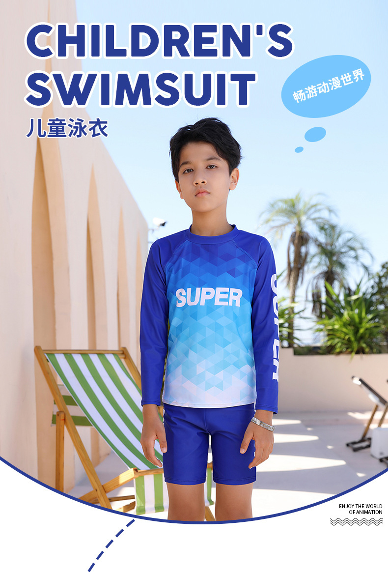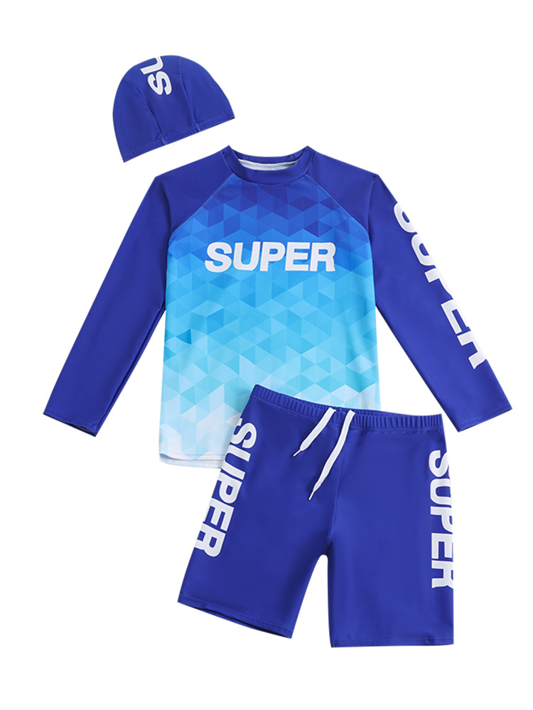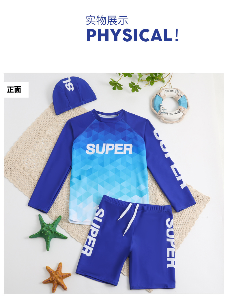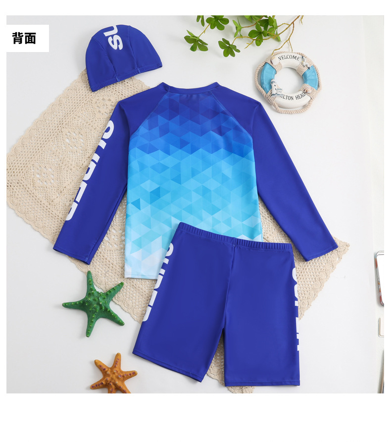 2025 새로운 학생 남성 수영복 스플릿 스포츠 스타일 수영 모자 세트 청소년 큰 소년 수영복 1