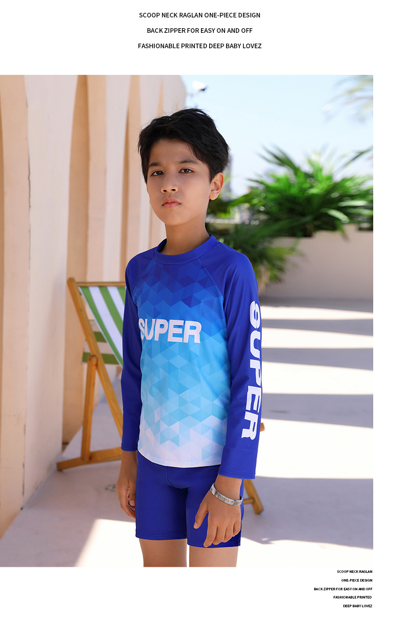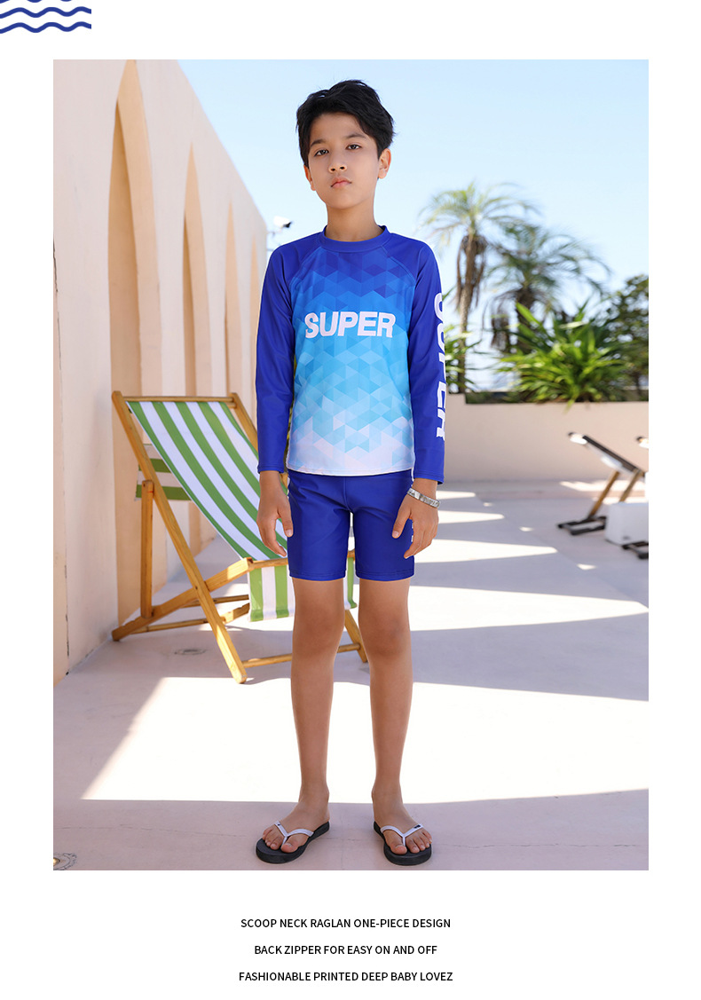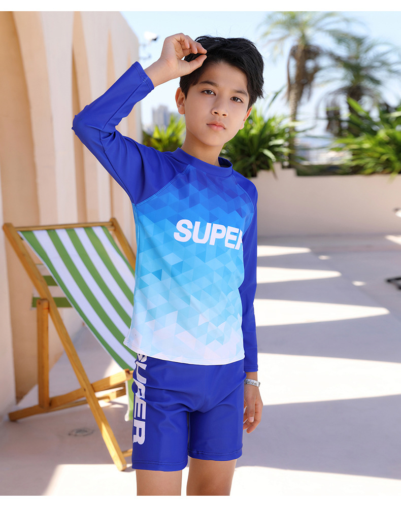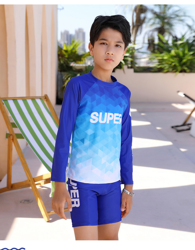 2025 새로운 학생 남성 수영복 스플릿 스포츠 스타일 수영 모자 세트 청소년 큰 소년 수영복 1