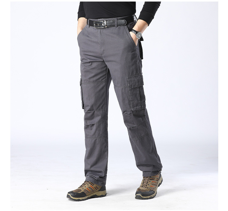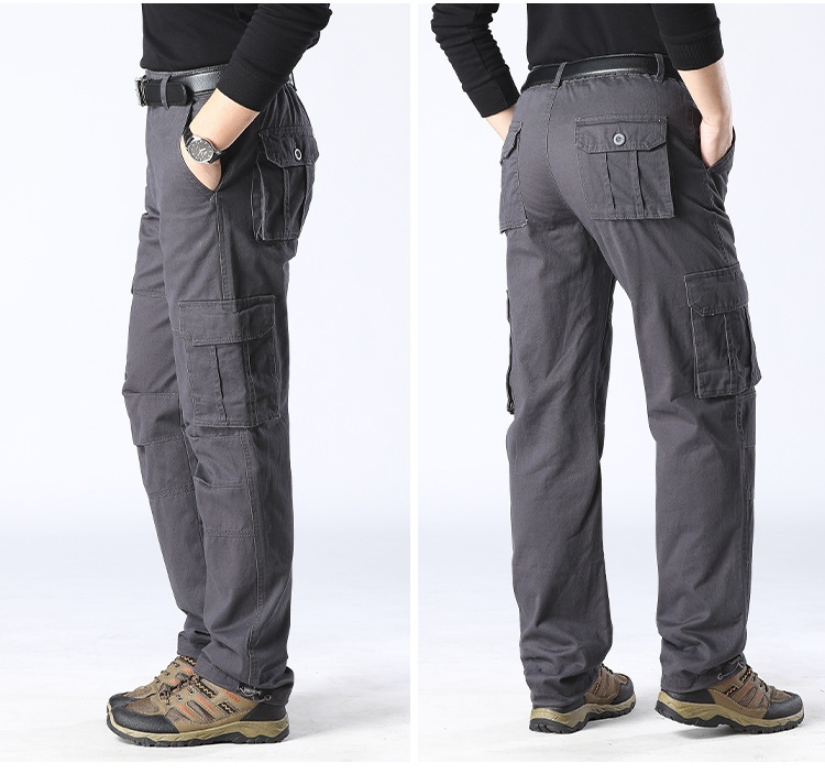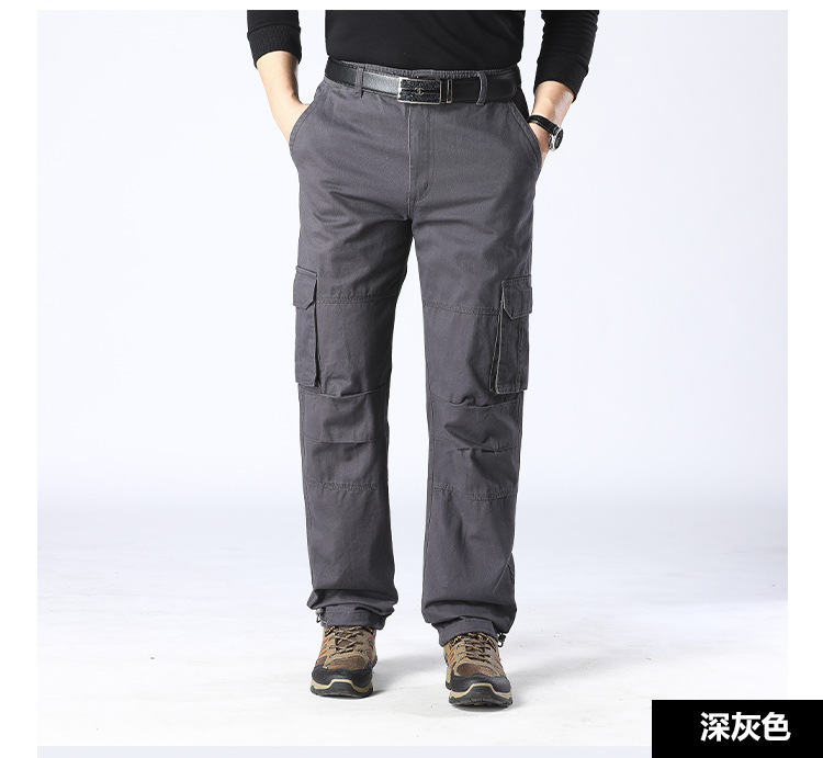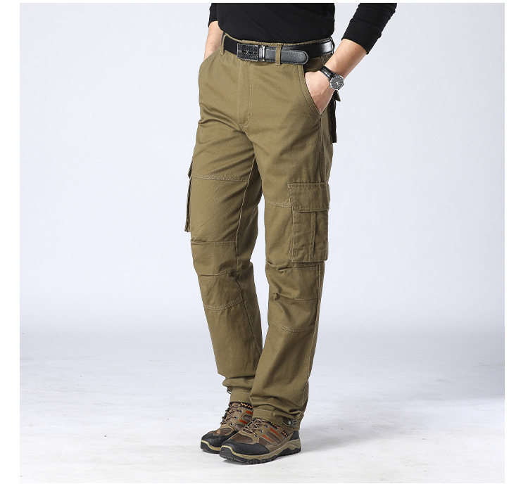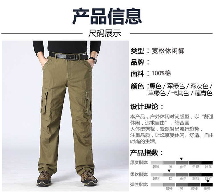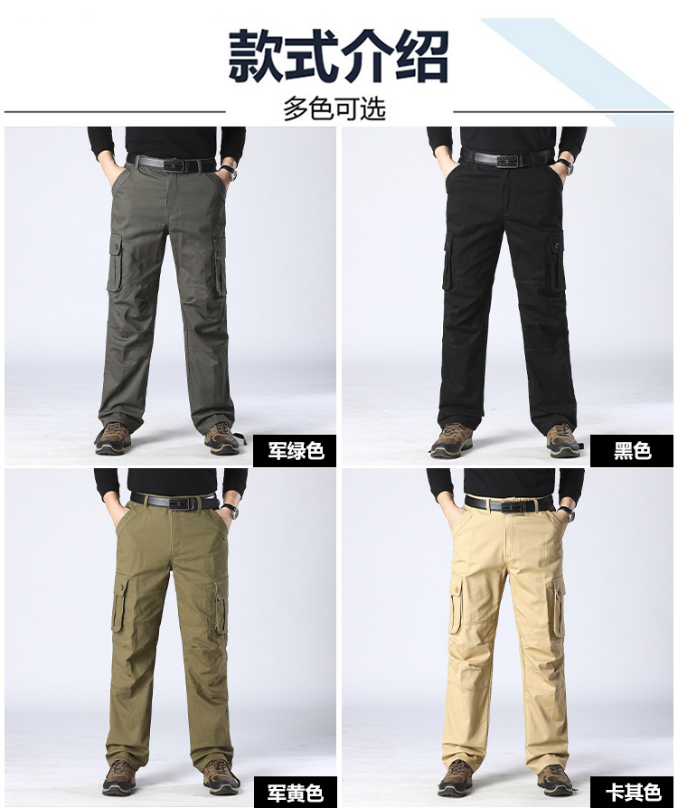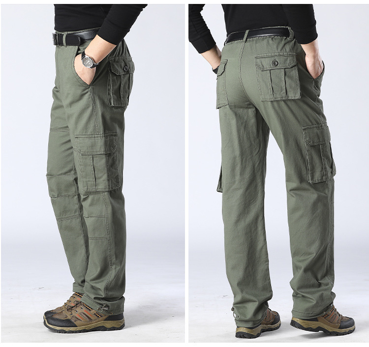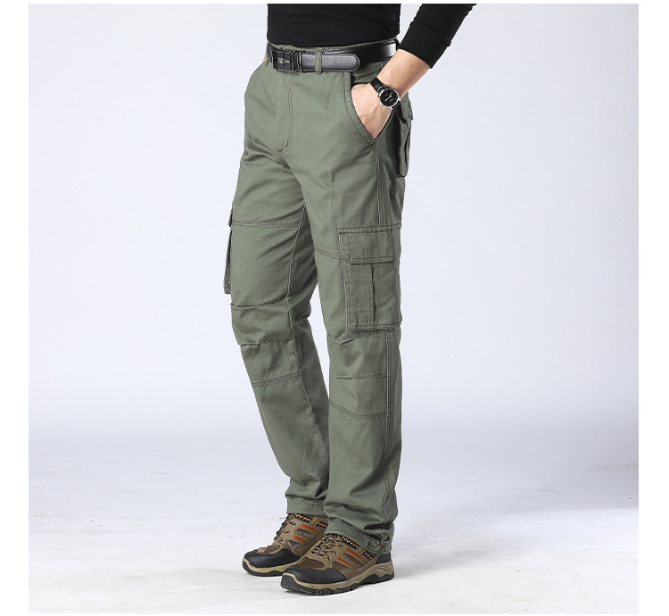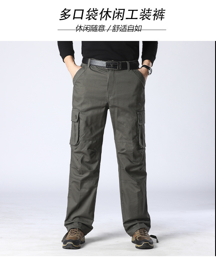 AliExpress 도매 봄과 가을 야외 작업복 남성 순수 코튼 스트레이트 루즈 하이킹 캐주얼 바지 멀티 포켓 충전 롱