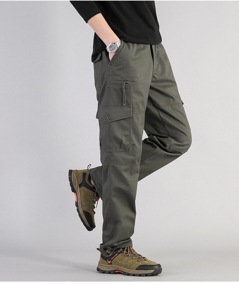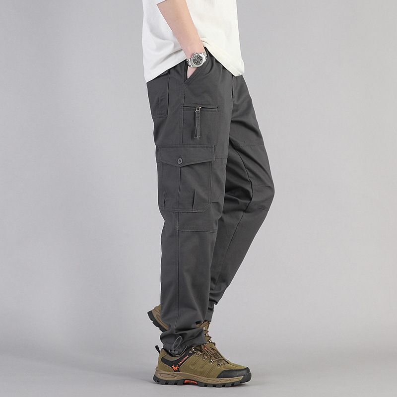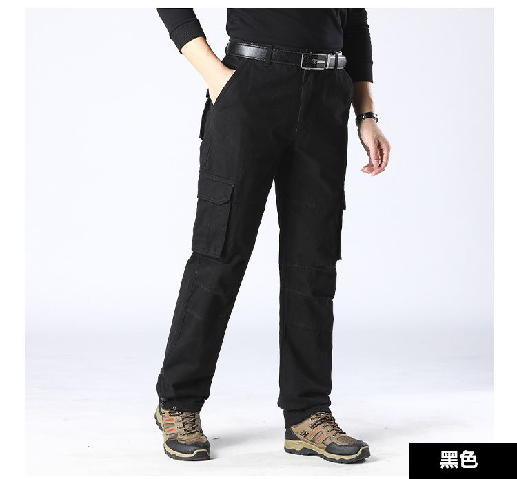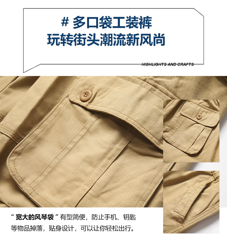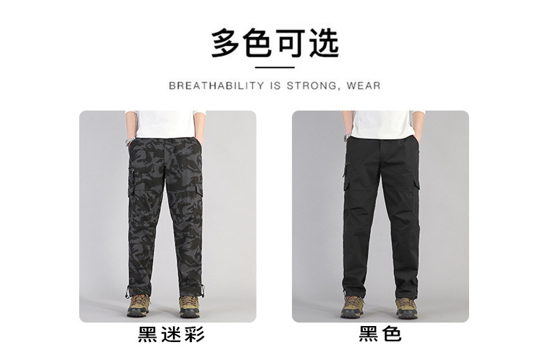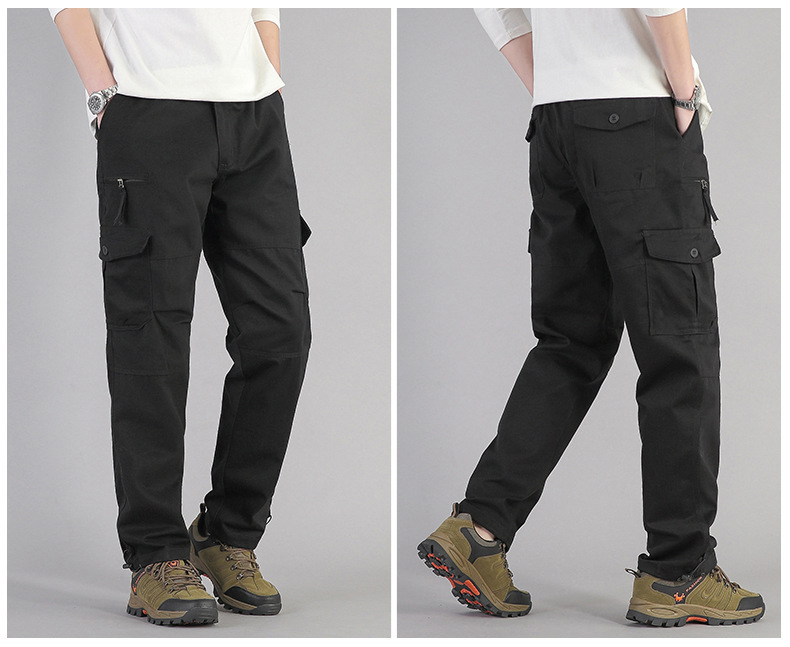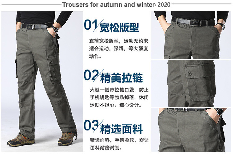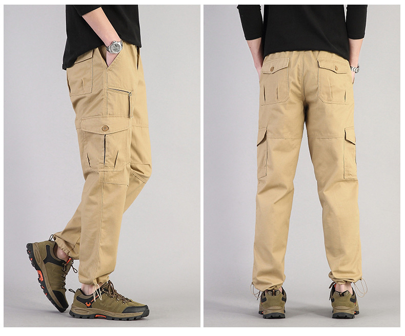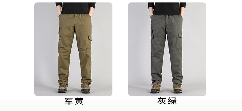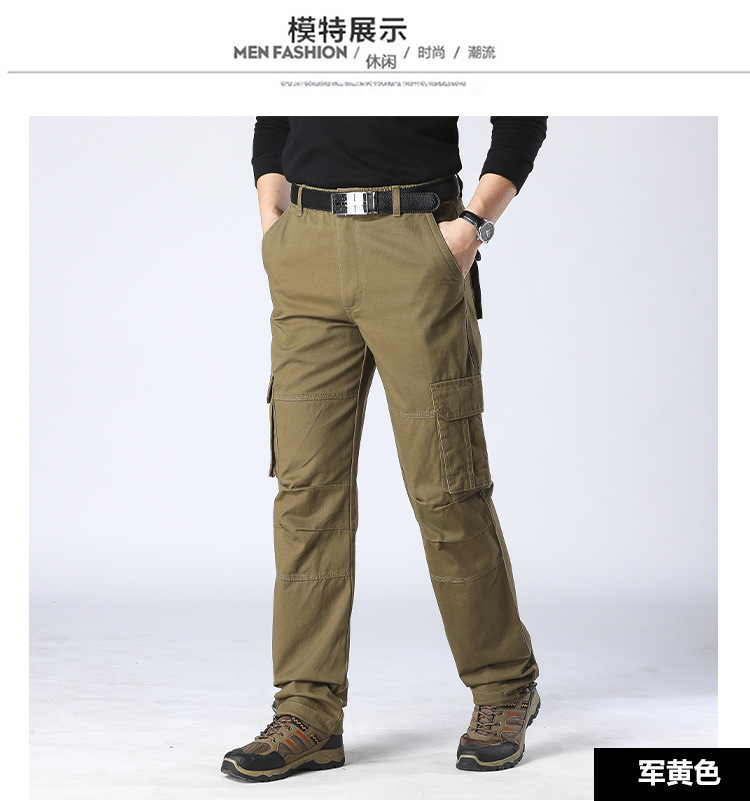 AliExpress 도매 봄과 가을 야외 작업복 남성 순수 코튼 스트레이트 루즈 하이킹 캐주얼 바지 멀티 포켓 충전 롱