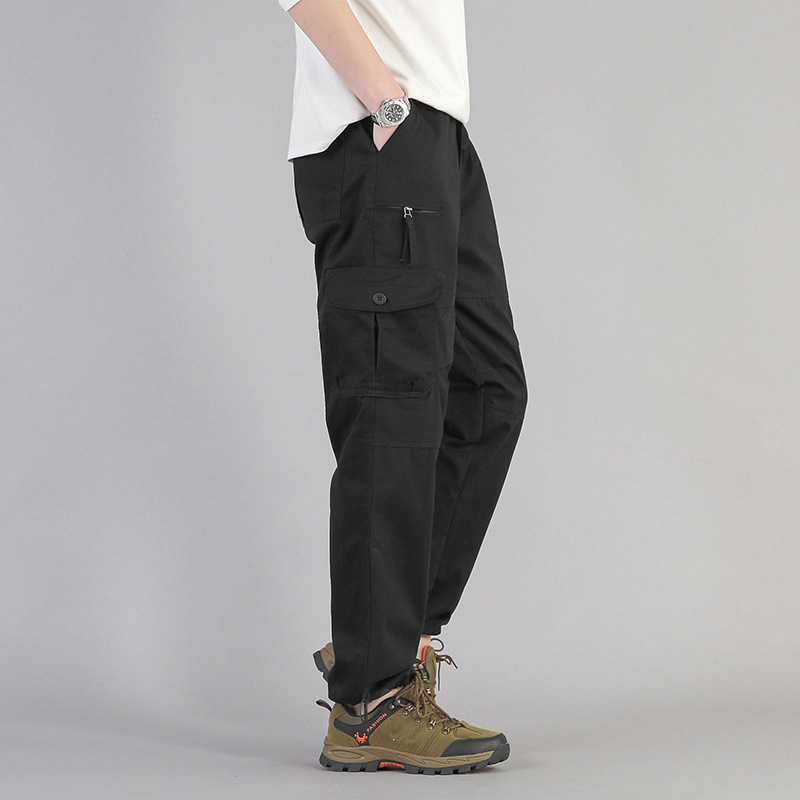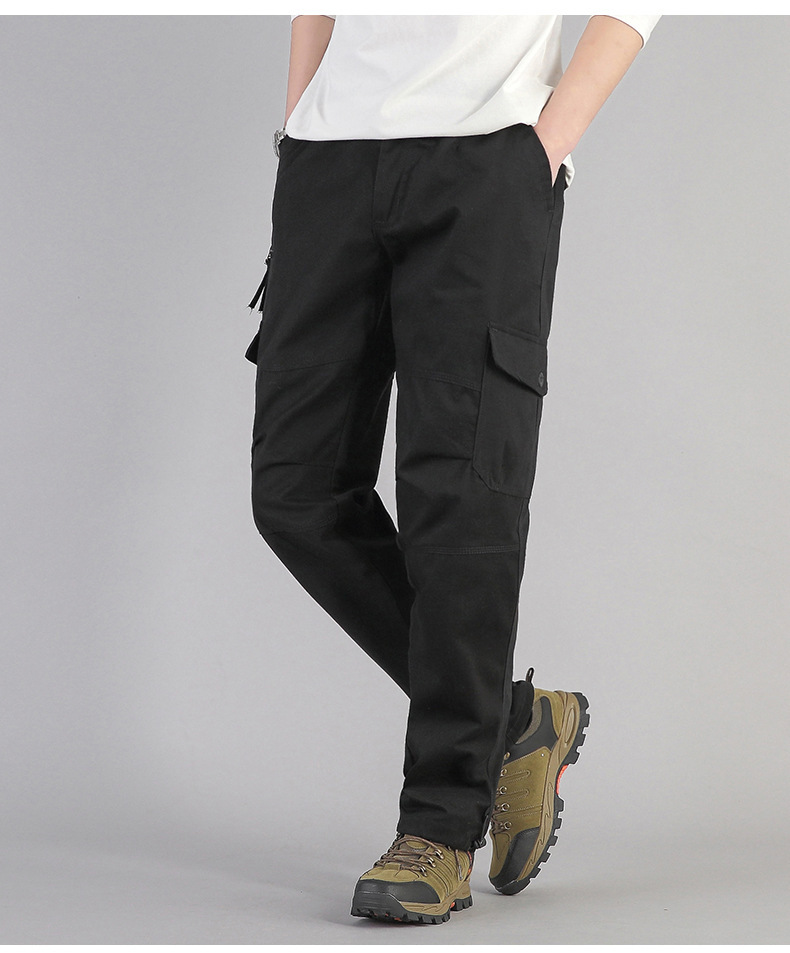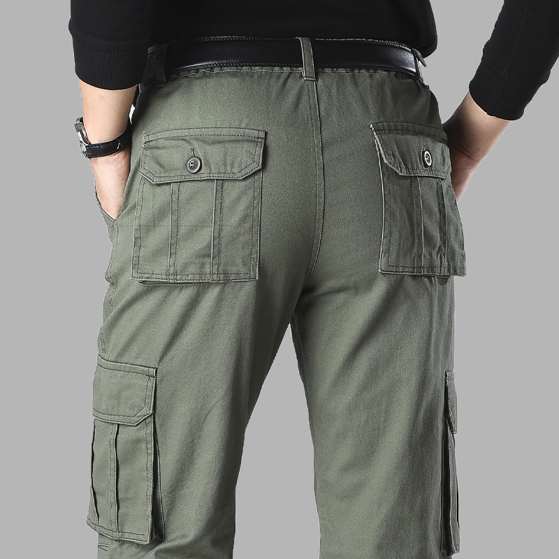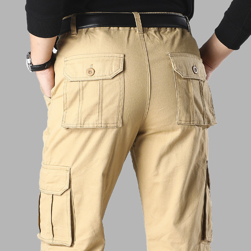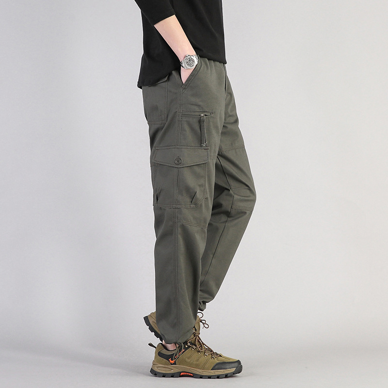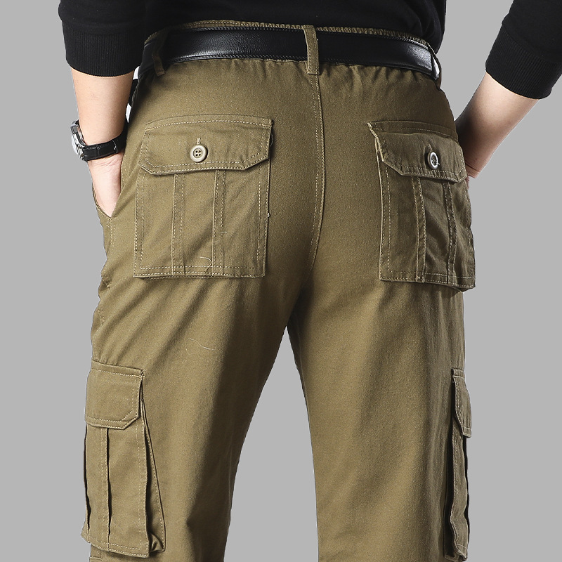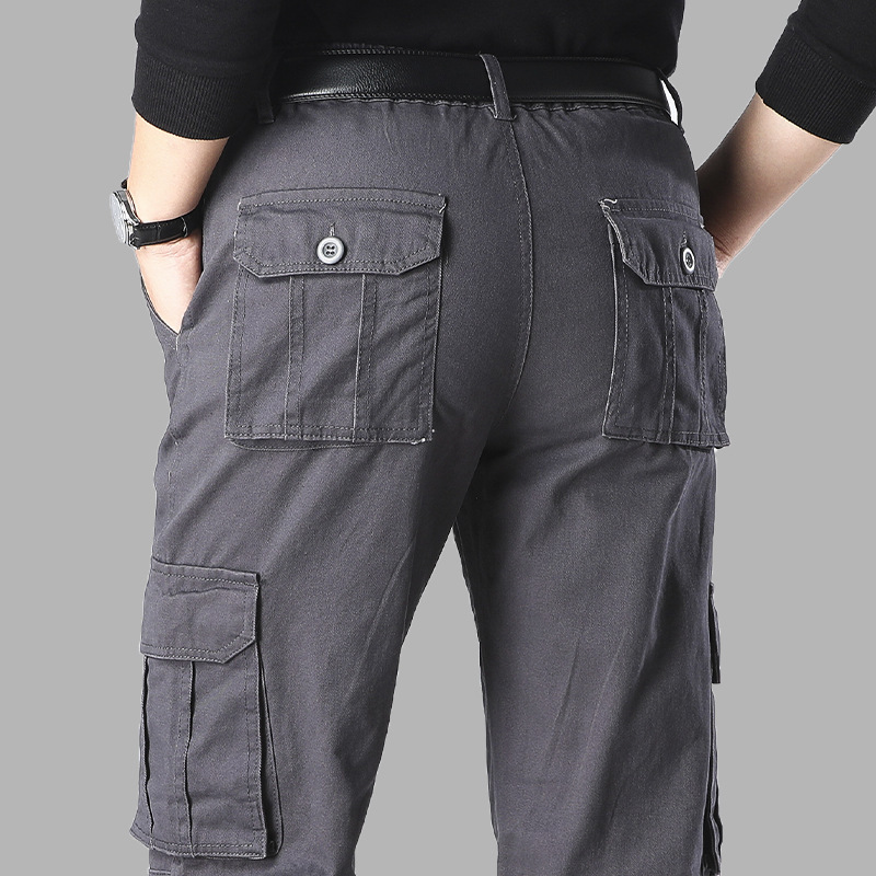 AliExpress 도매 봄과 가을 야외 작업복 남성 순수 코튼 스트레이트 루즈 하이킹 캐주얼 바지 멀티 포켓 충전 롱