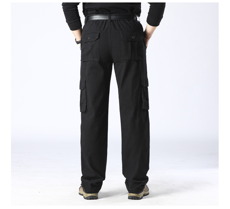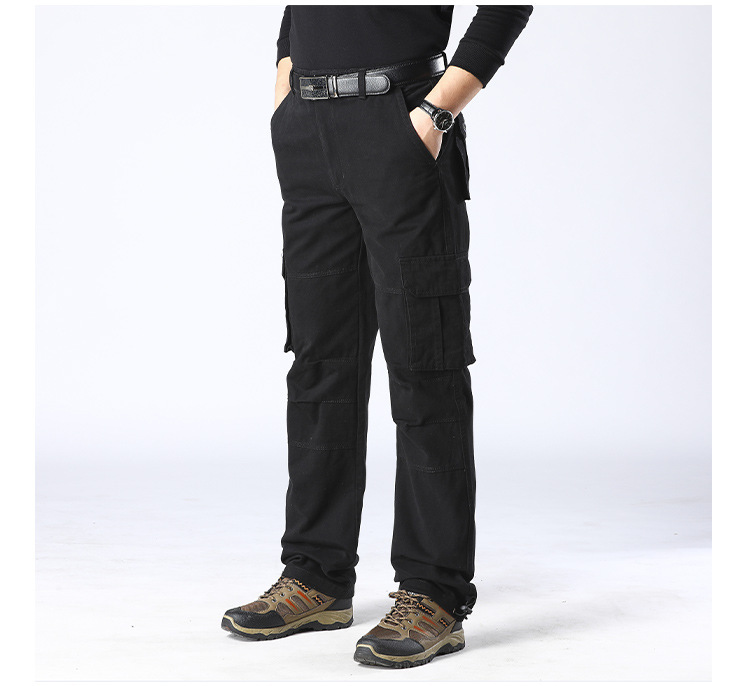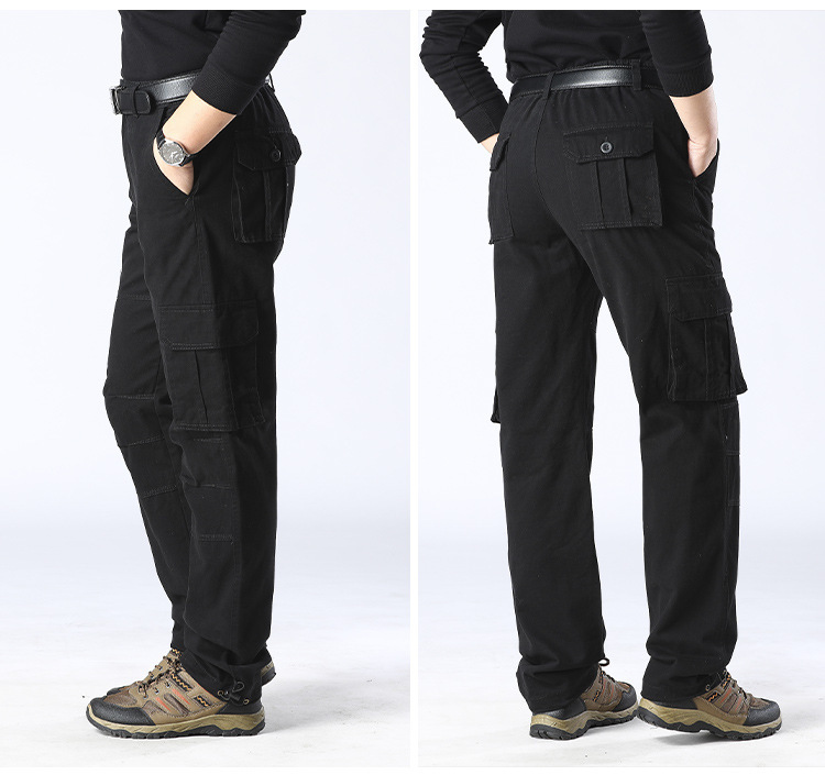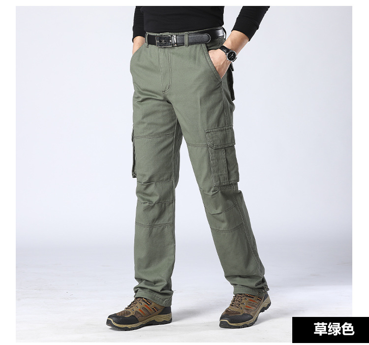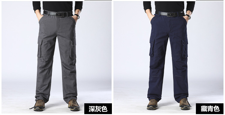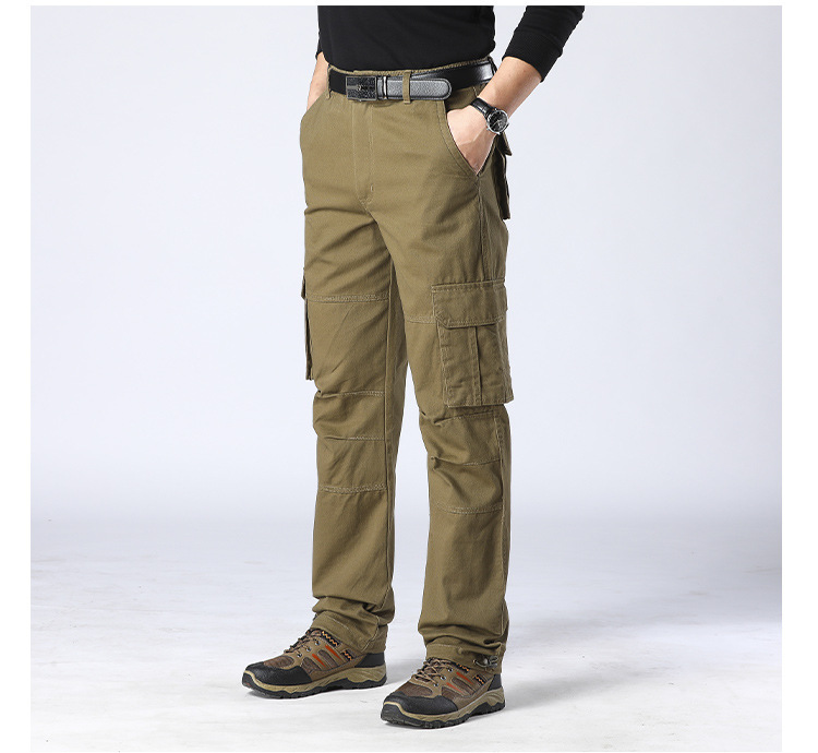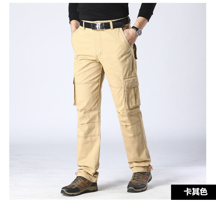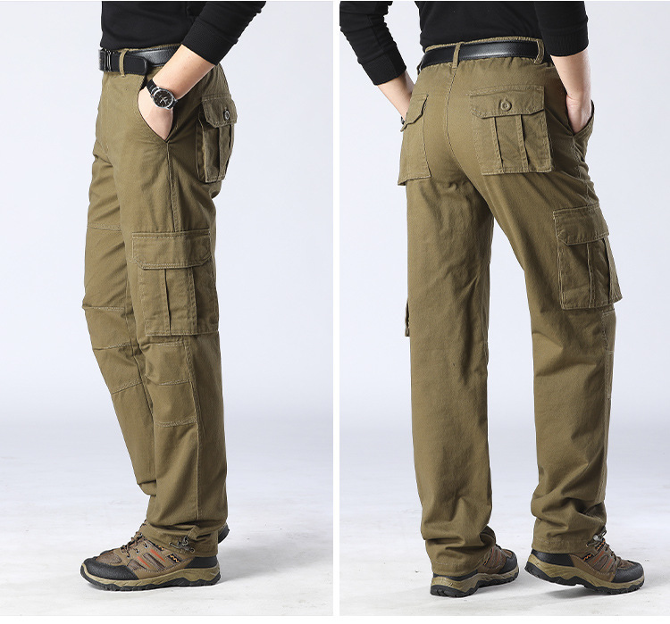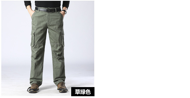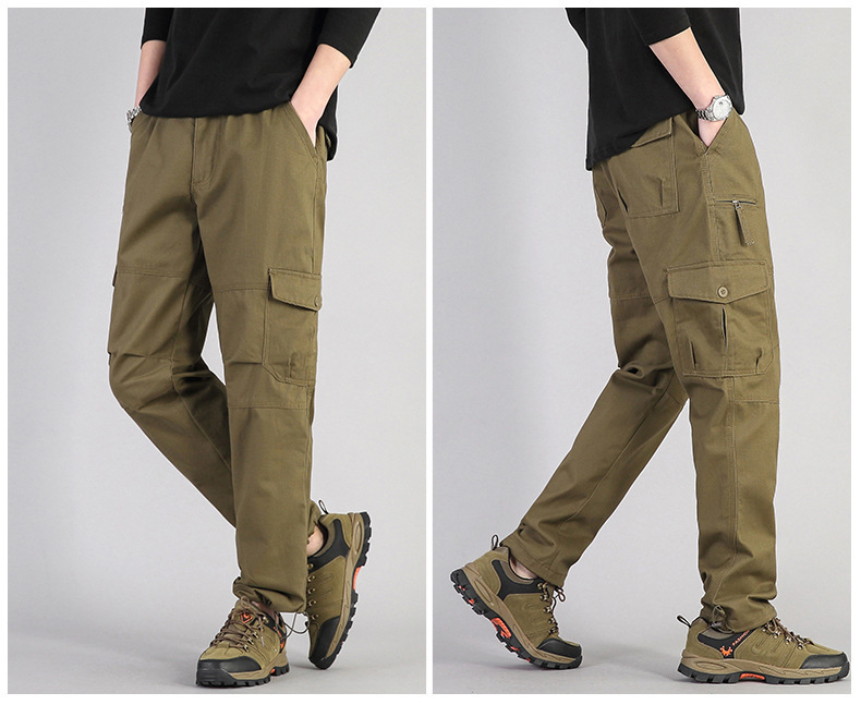 AliExpress 도매 봄과 가을 야외 작업복 남성 순수 코튼 스트레이트 루즈 하이킹 캐주얼 바지 멀티 포켓 충전 롱스토어 가기