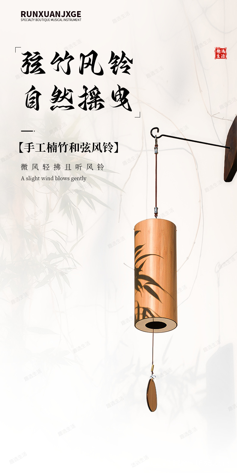 현악기 풍경 일본식 수동식 풍경 복고풍 대나무 명상 소리 치유 대나무 풍경 국경 간 도매